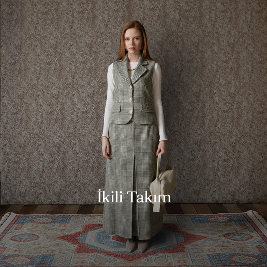 Kazayağı Yelek Etek Takım Sütlü Kahve