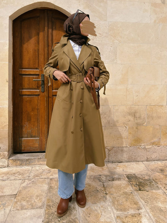 Oversize Atkılı Haki Kaşmir Kaban
