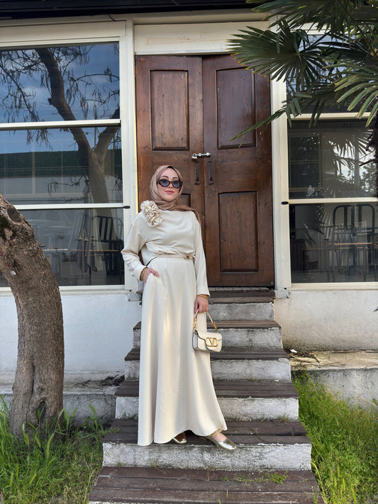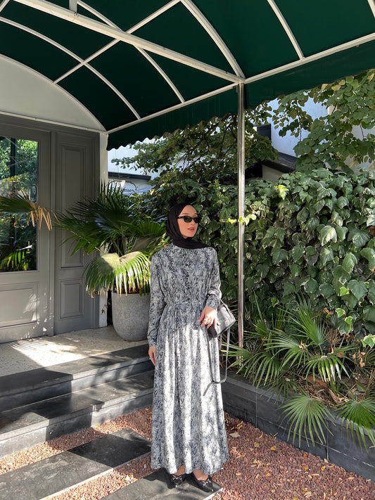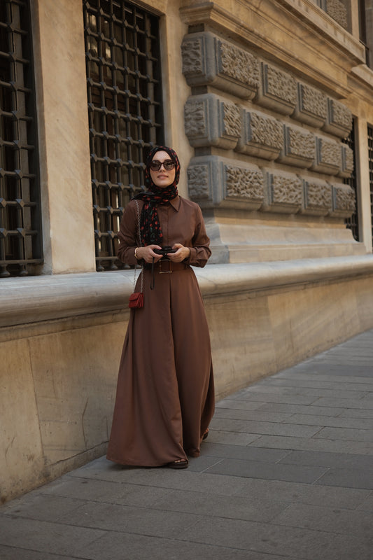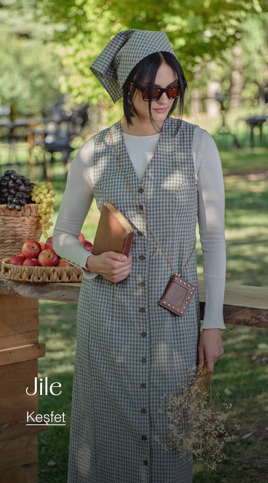 Bel Büzgülü Müslin Haki Ferace Elbise - Fatma Atasoy