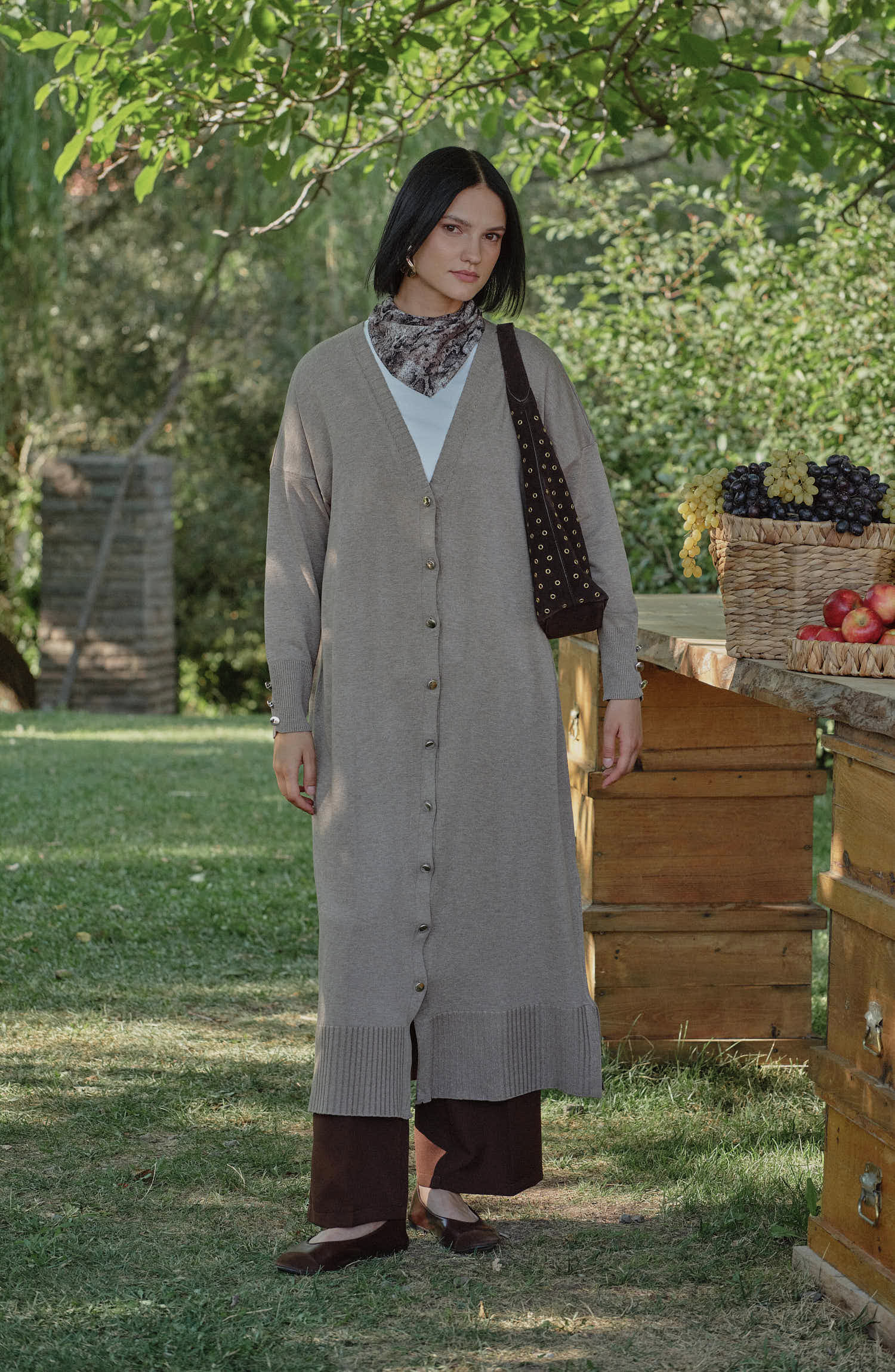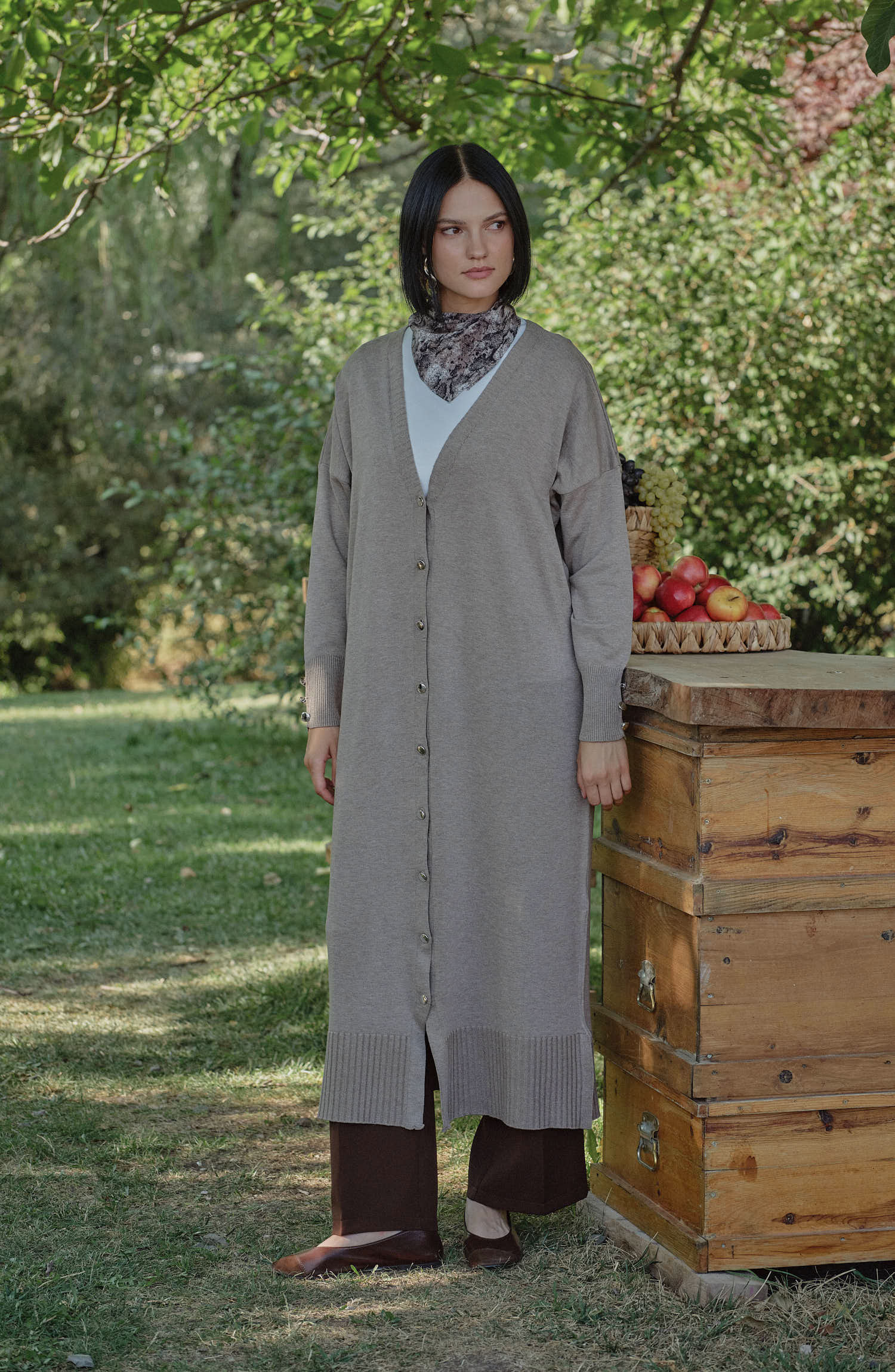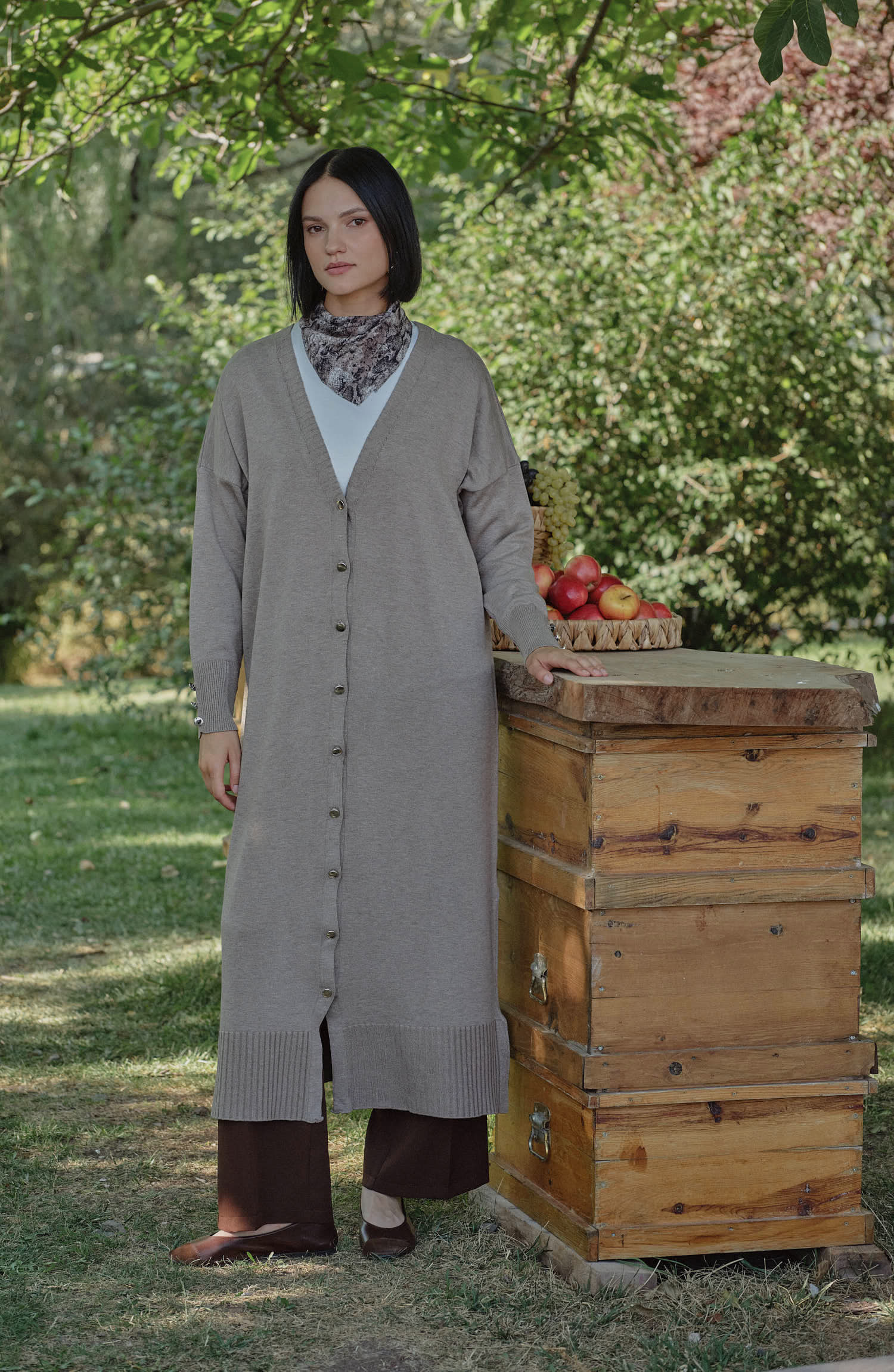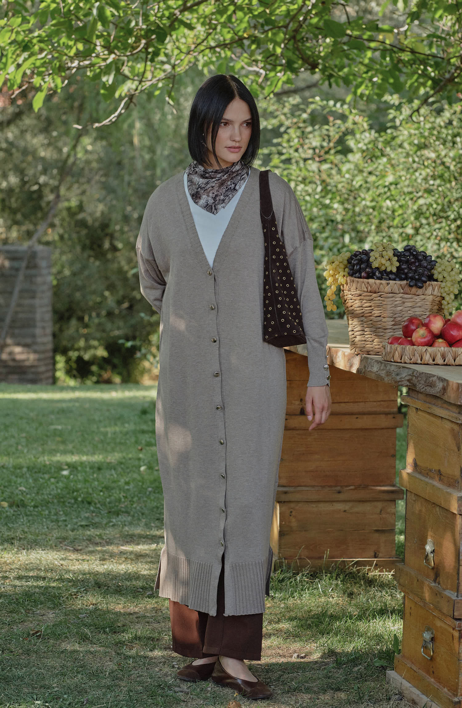 Basic Maksi Sütlü Kahve Merserize Triko Hırka