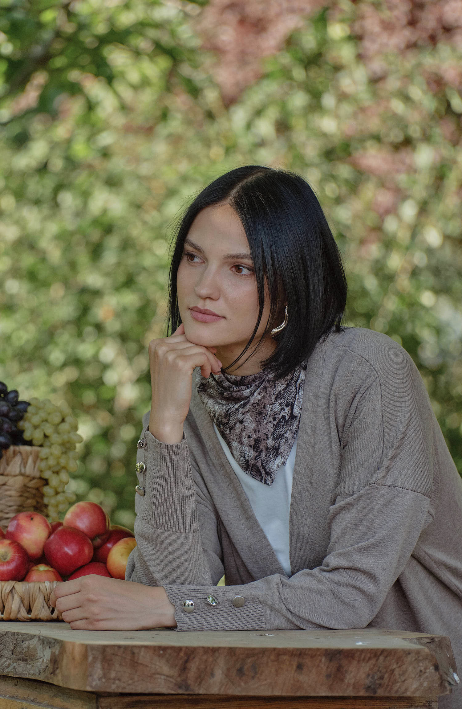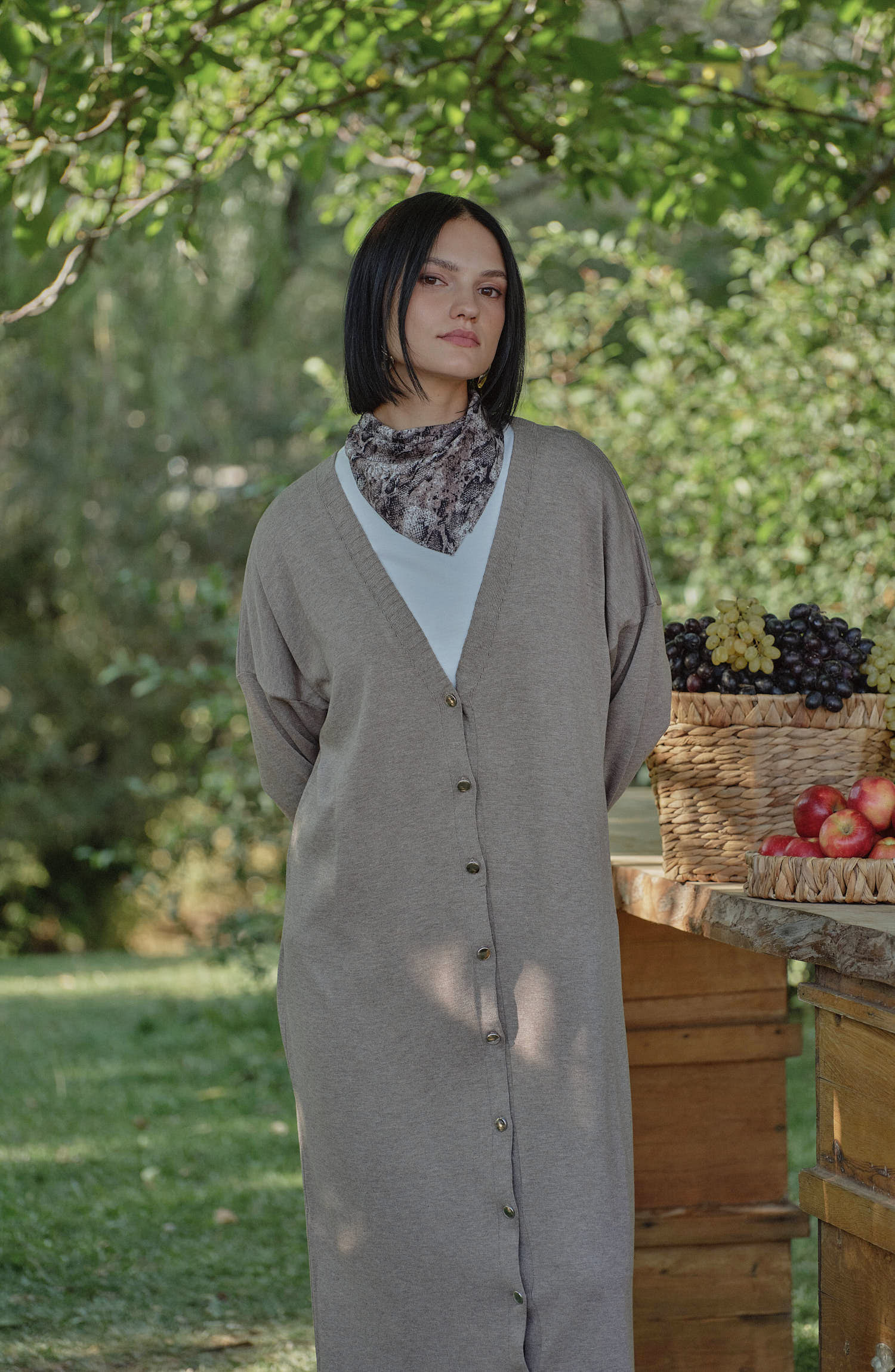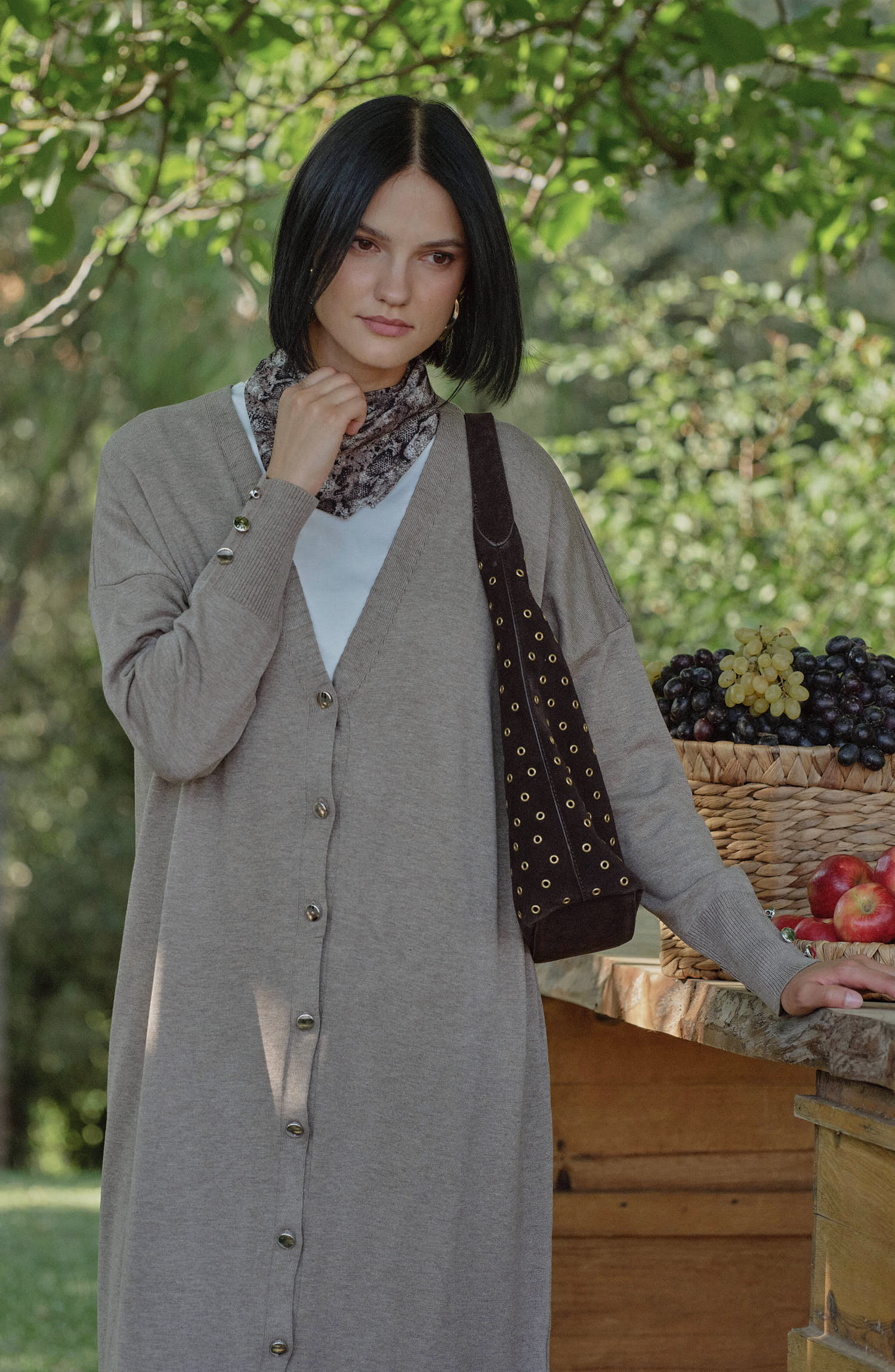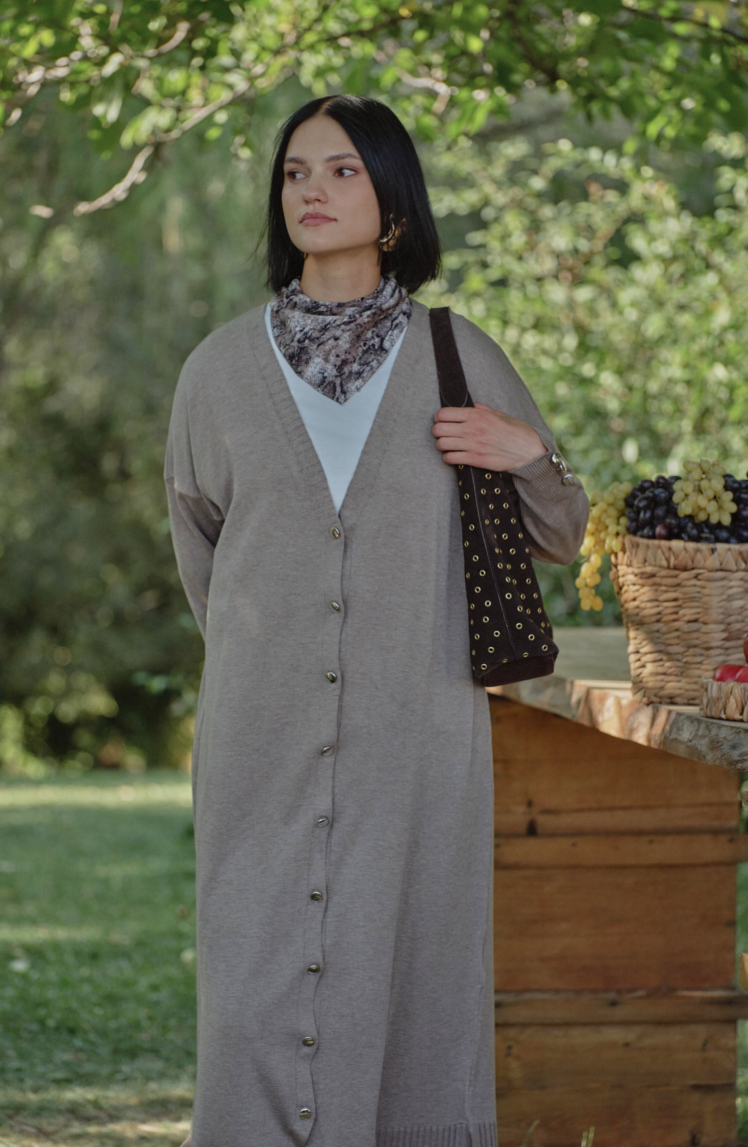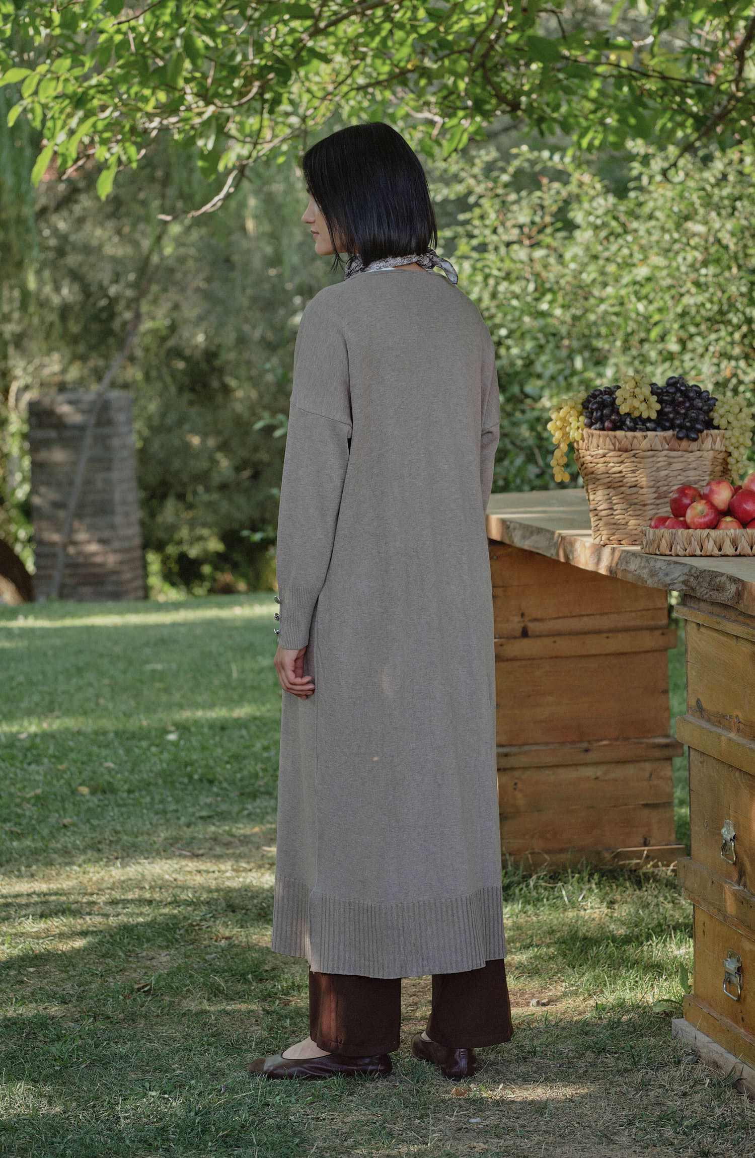Basic Maksi Sütlü Kahve Merserize Triko Hırka