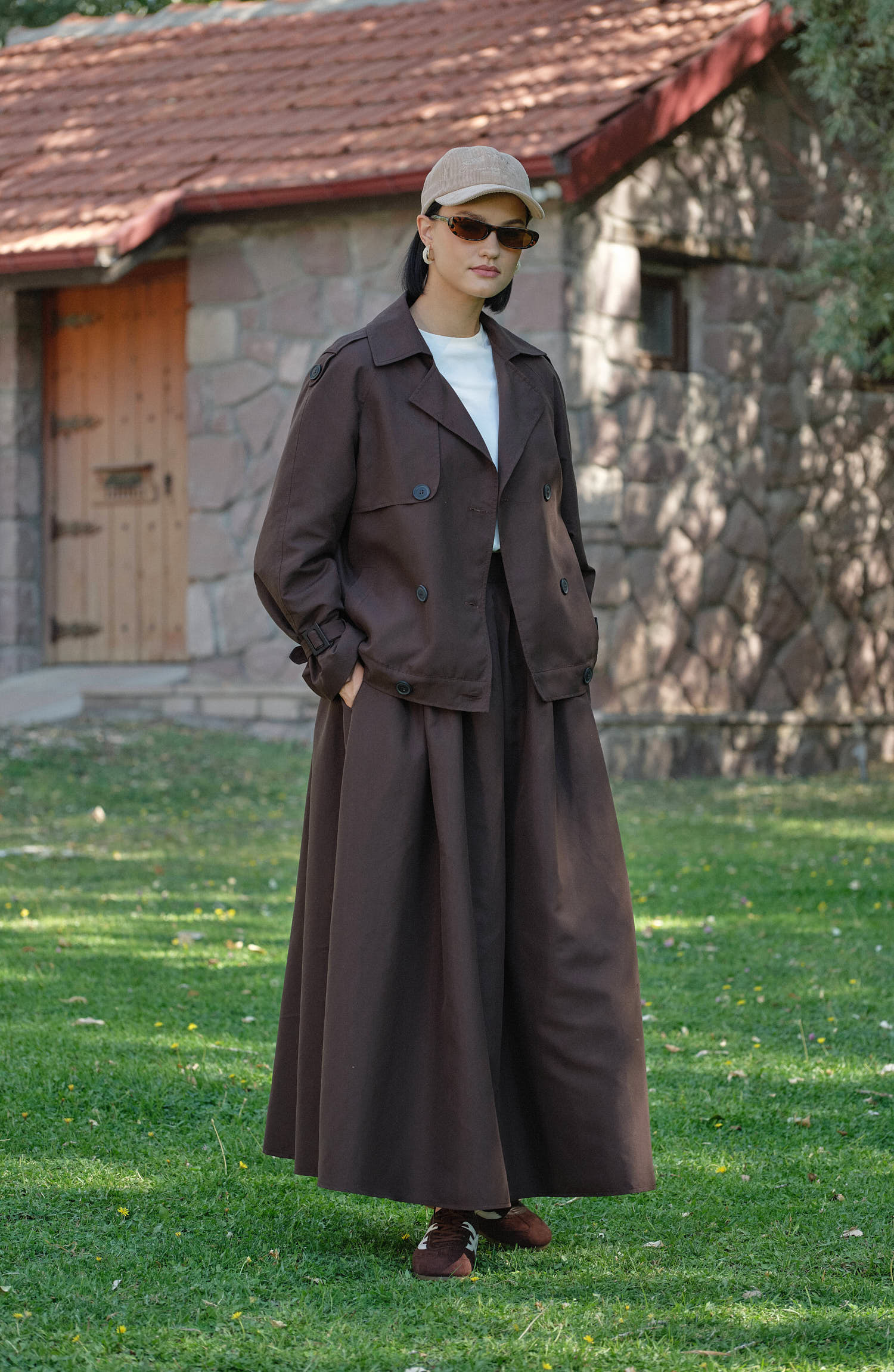 Sık Pileli Trenç Etek, şıklığı ve rahatlığı bir arada sunan tasarımıyla dolabınızın kurtarıcı parçalarından biri olmaya aday. Önü kemerli ve köprü detaylı tasarımıyla bel hattına zarif bir vurgu yaparken, arkası lastikli formu gün boyu konfor sağlar. Sık pileli ve rahat açılımlı eteği, hareket özgürlüğü sunarken feminen ve modern bir siluet oluşturur.