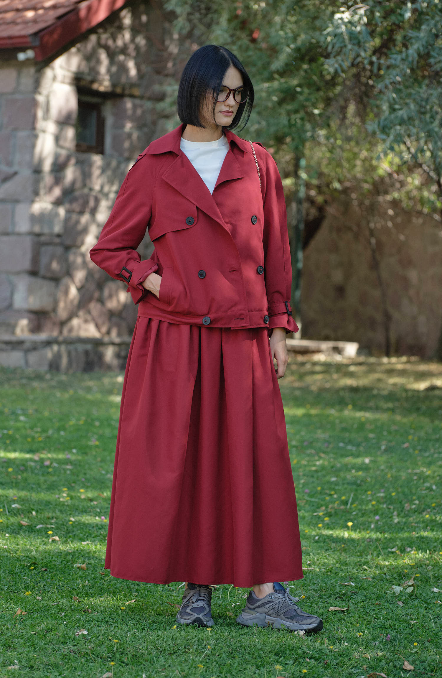 Sık Pileli Bordo Trenç Etek - Fatma Atasoy