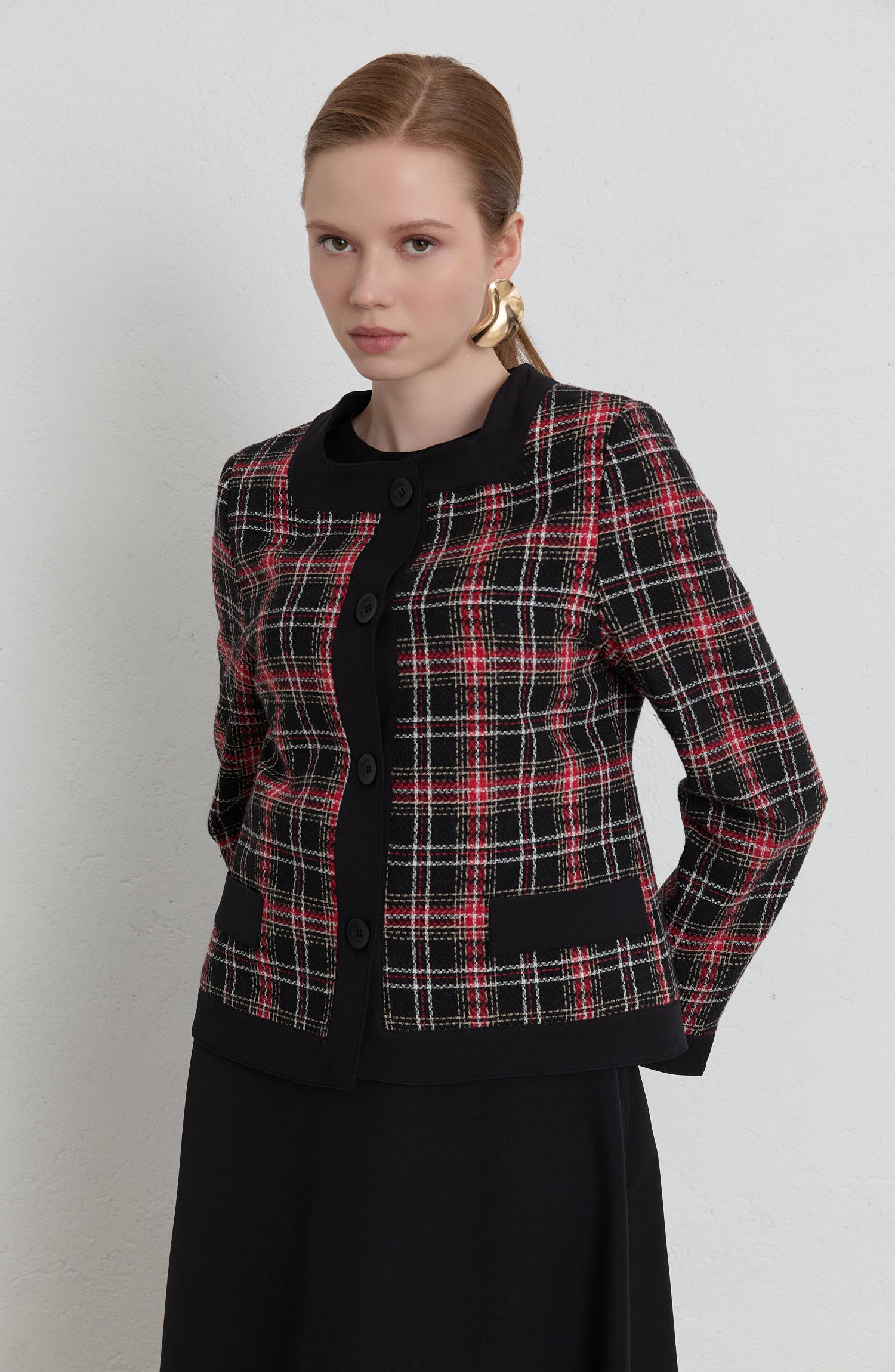 Garnili Ekose Kırmızı Tüvit Ceket - Fatma Atasoy
