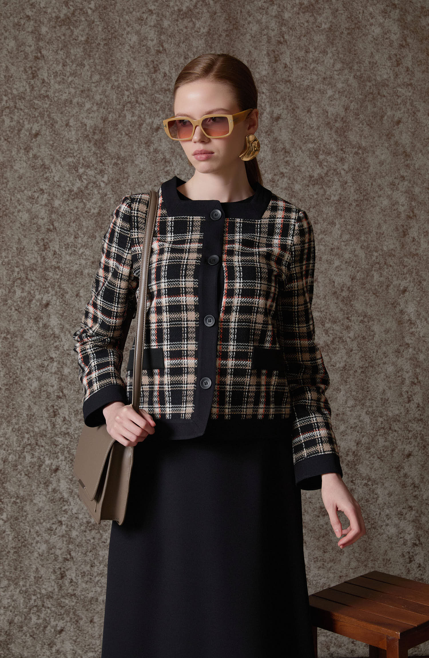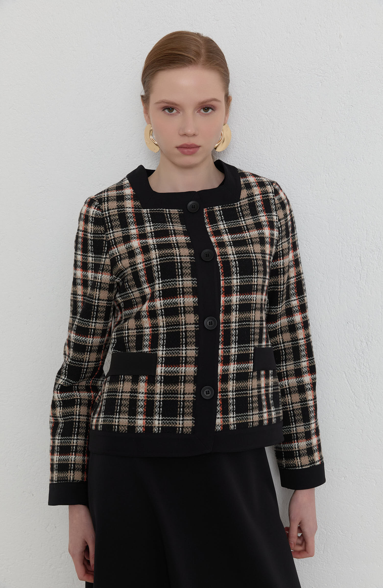 Garnili Ekose Sütlü Kahve Tüvit Ceket