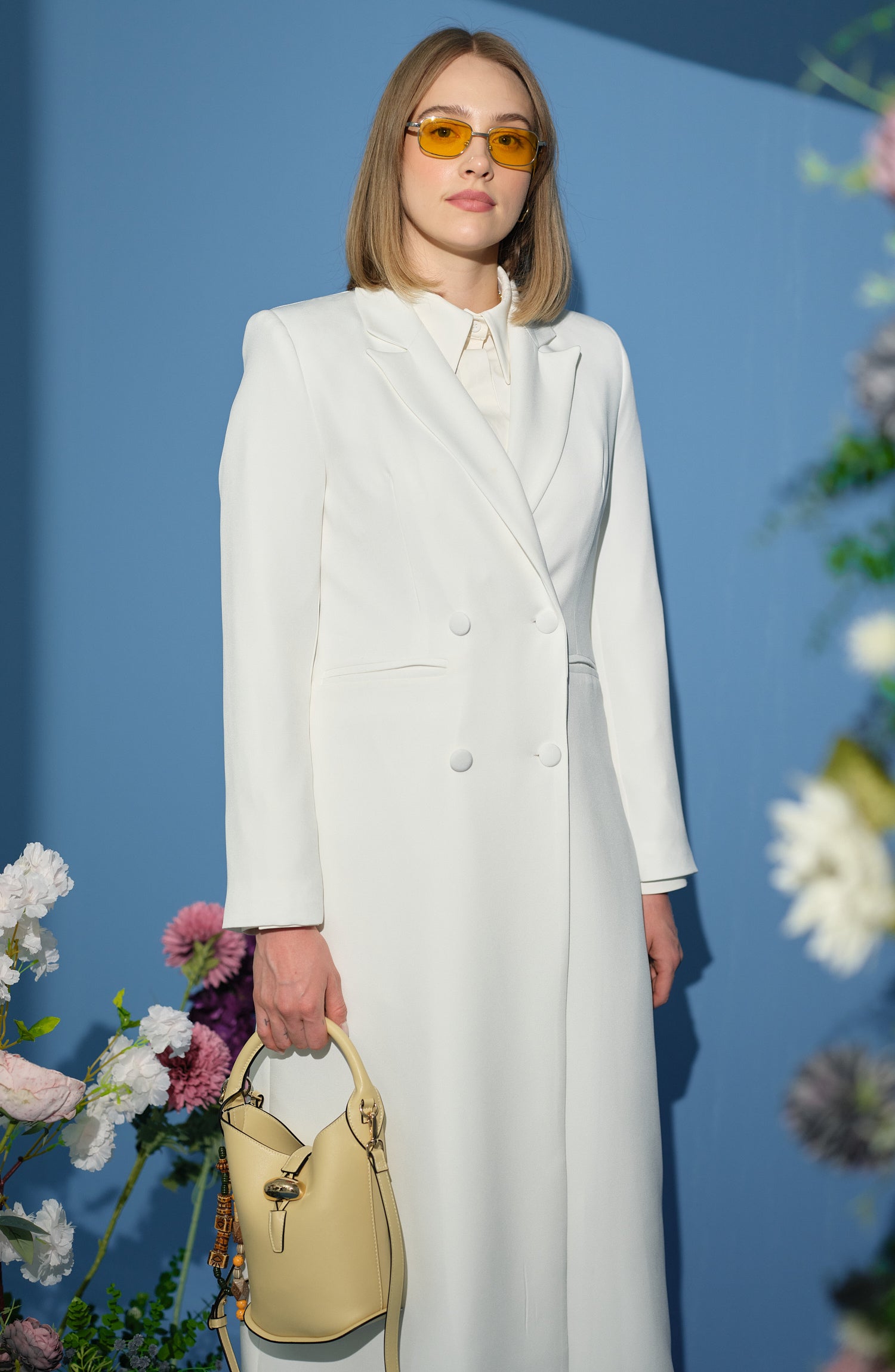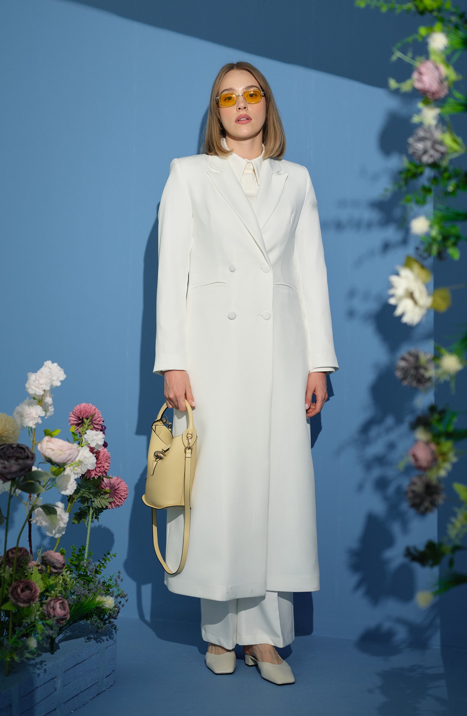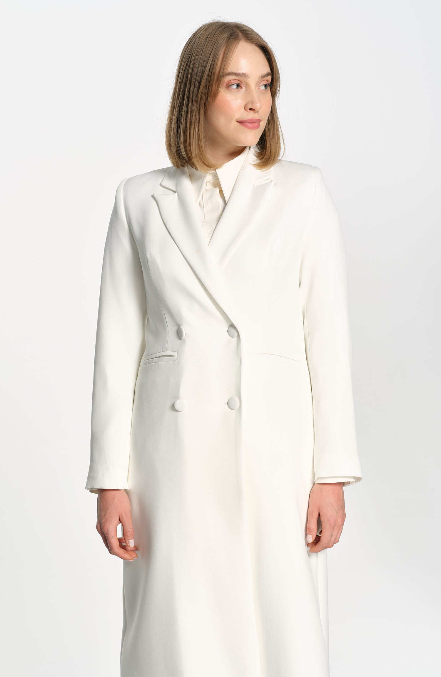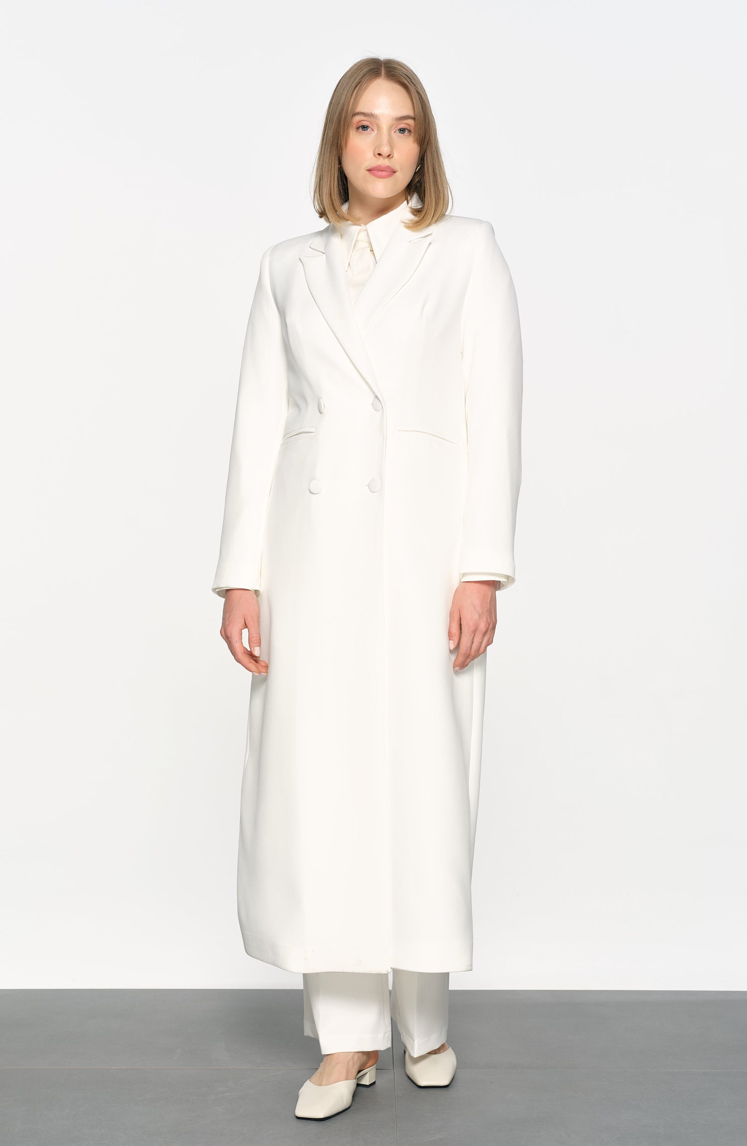 Tam Boy Maksi Ceket Ekru