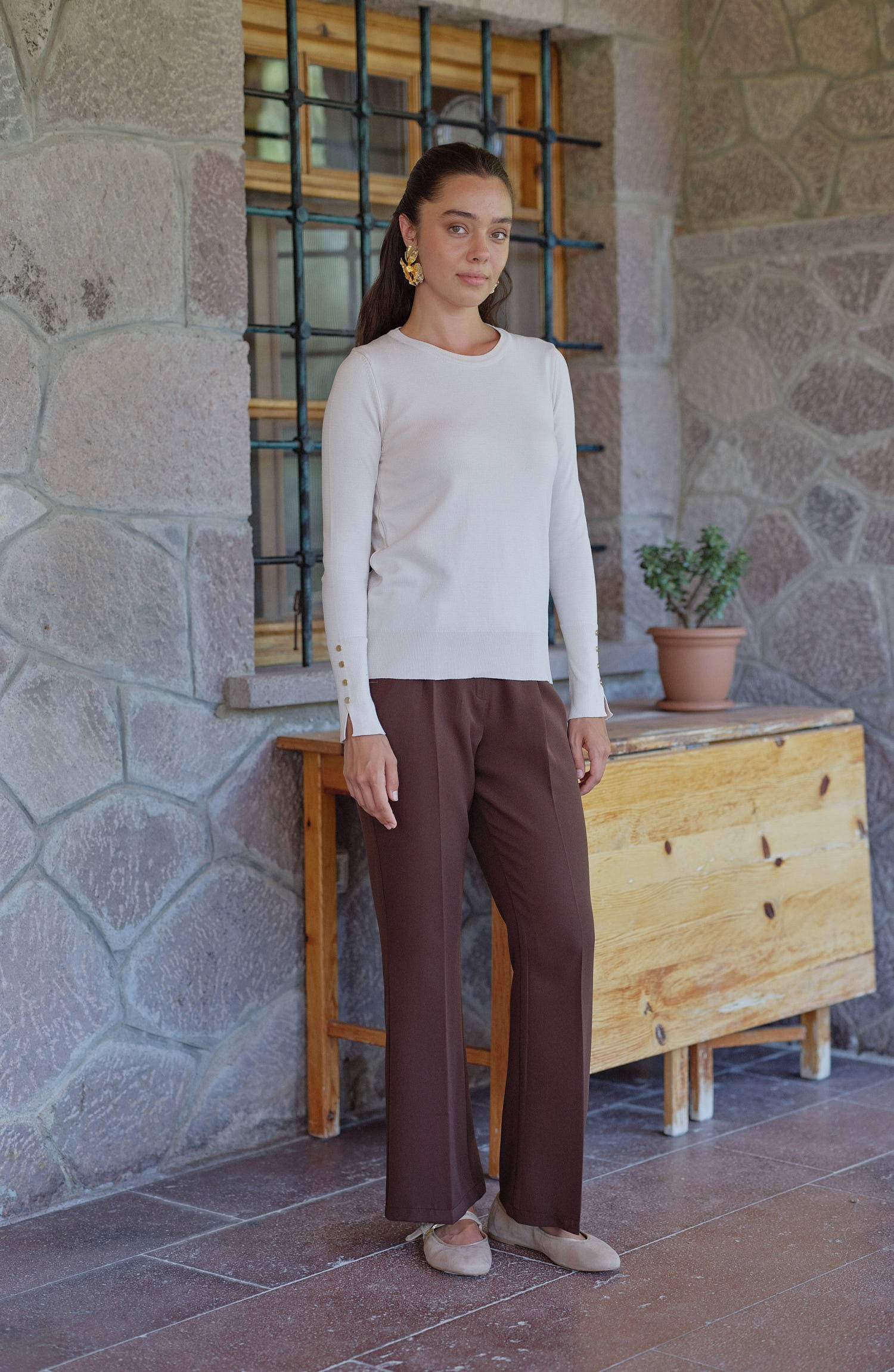 İspanyol Paça Pantolon Acı Kahve