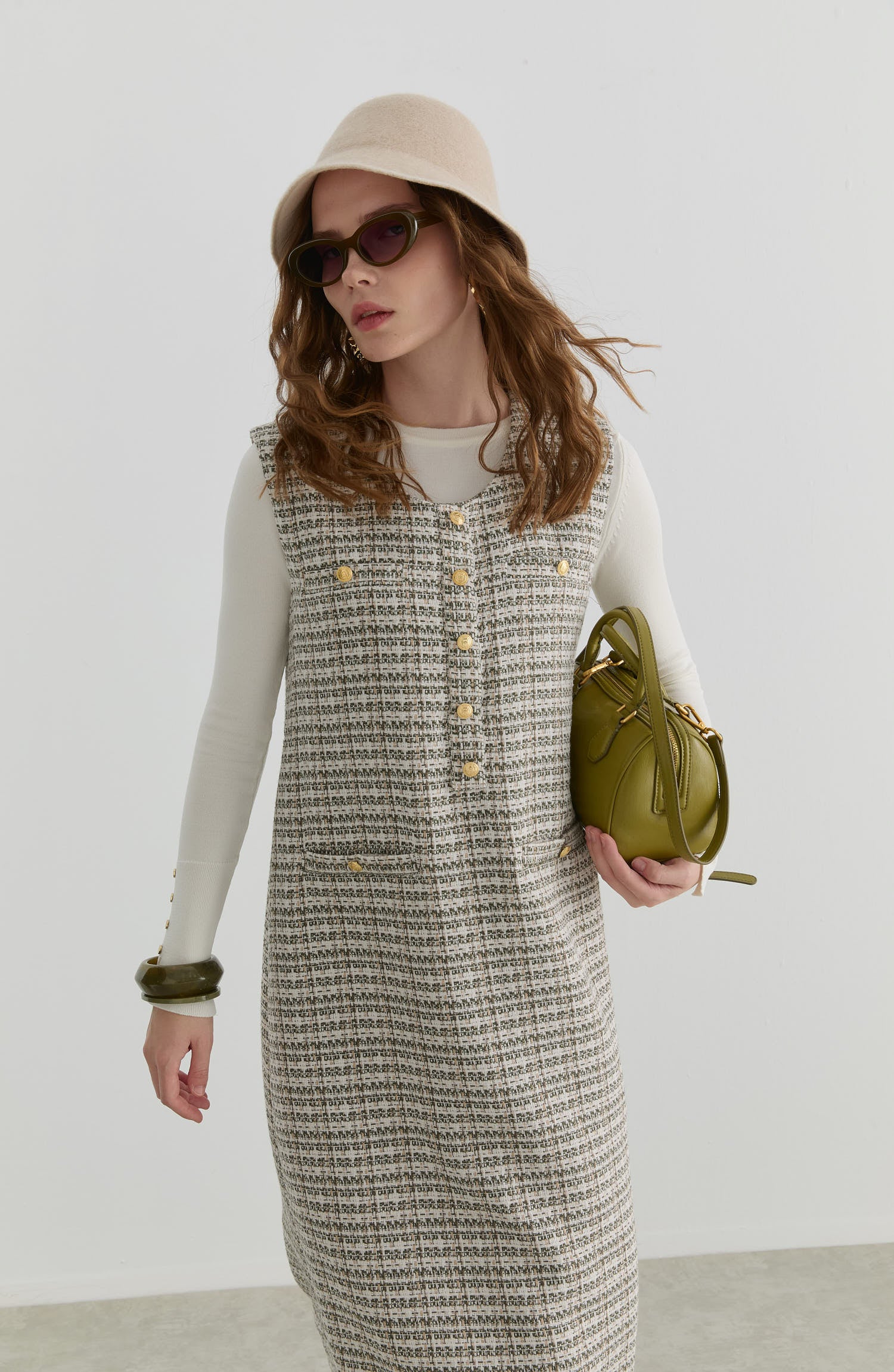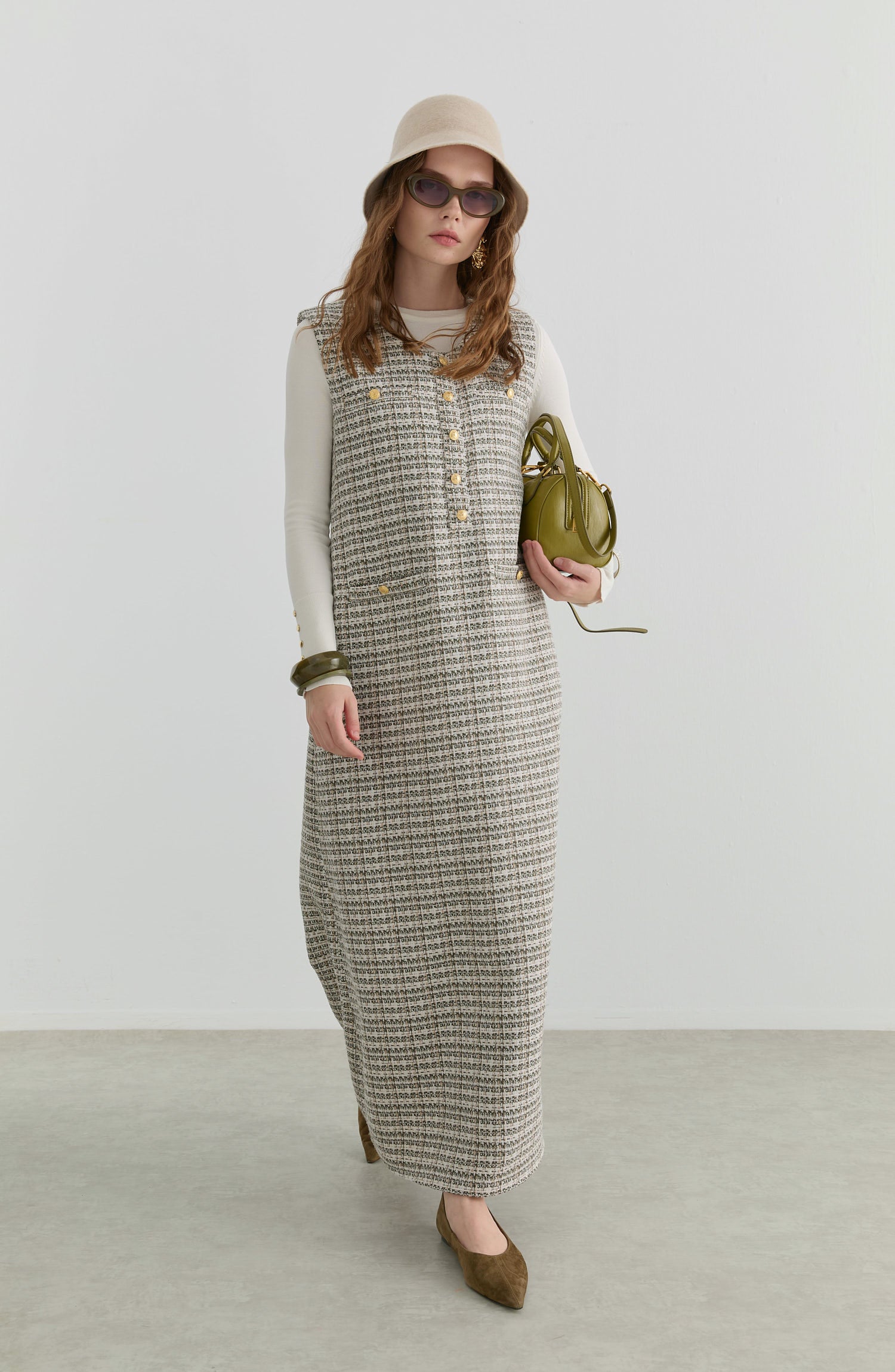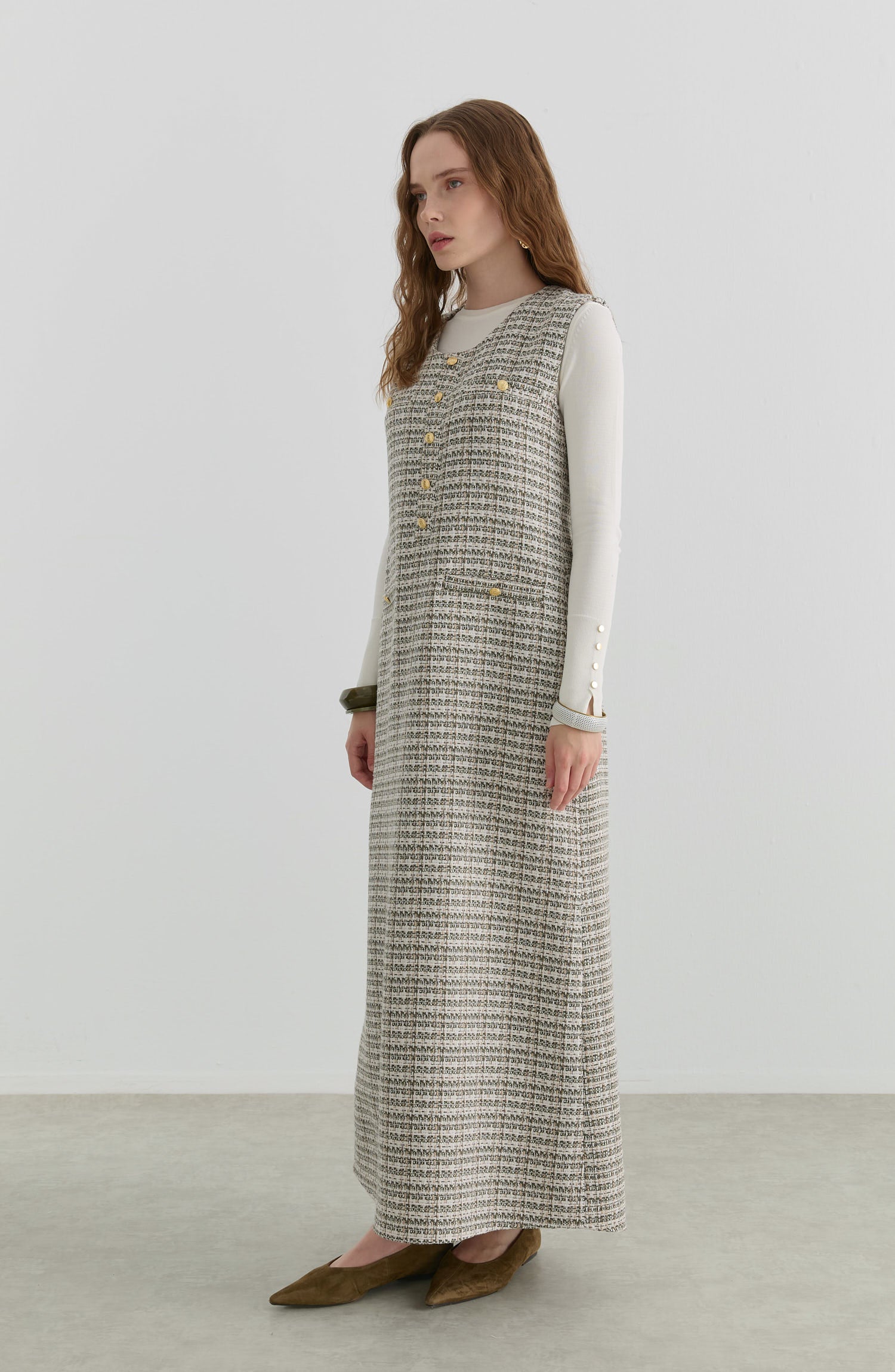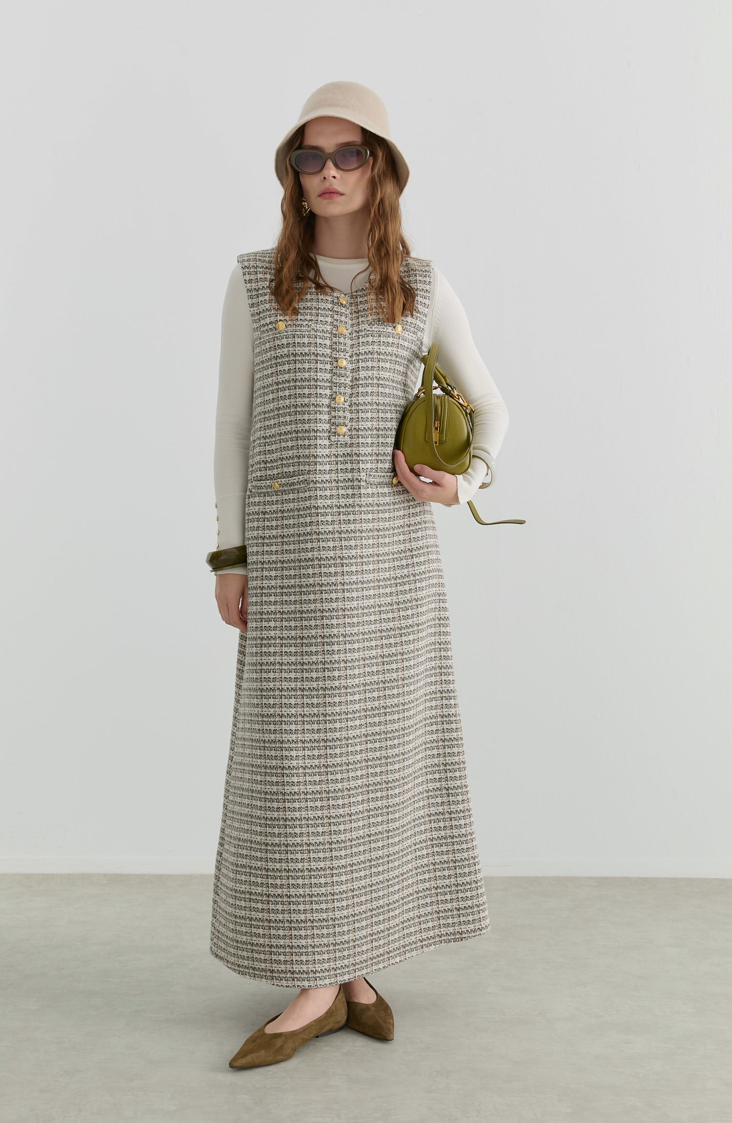 Zamansız şıklığıyla öne çıkan Blazer Tüvit Jile, klasik blazer detaylarını feminen bir siluetle buluşturuyor. Metal blazer düğmeleri ve tüvit dokusuyla sofistike bir duruş sunarken, yarım patlı formu ve zarif cep detaylarıyla görünümünü güçlendiriyor.