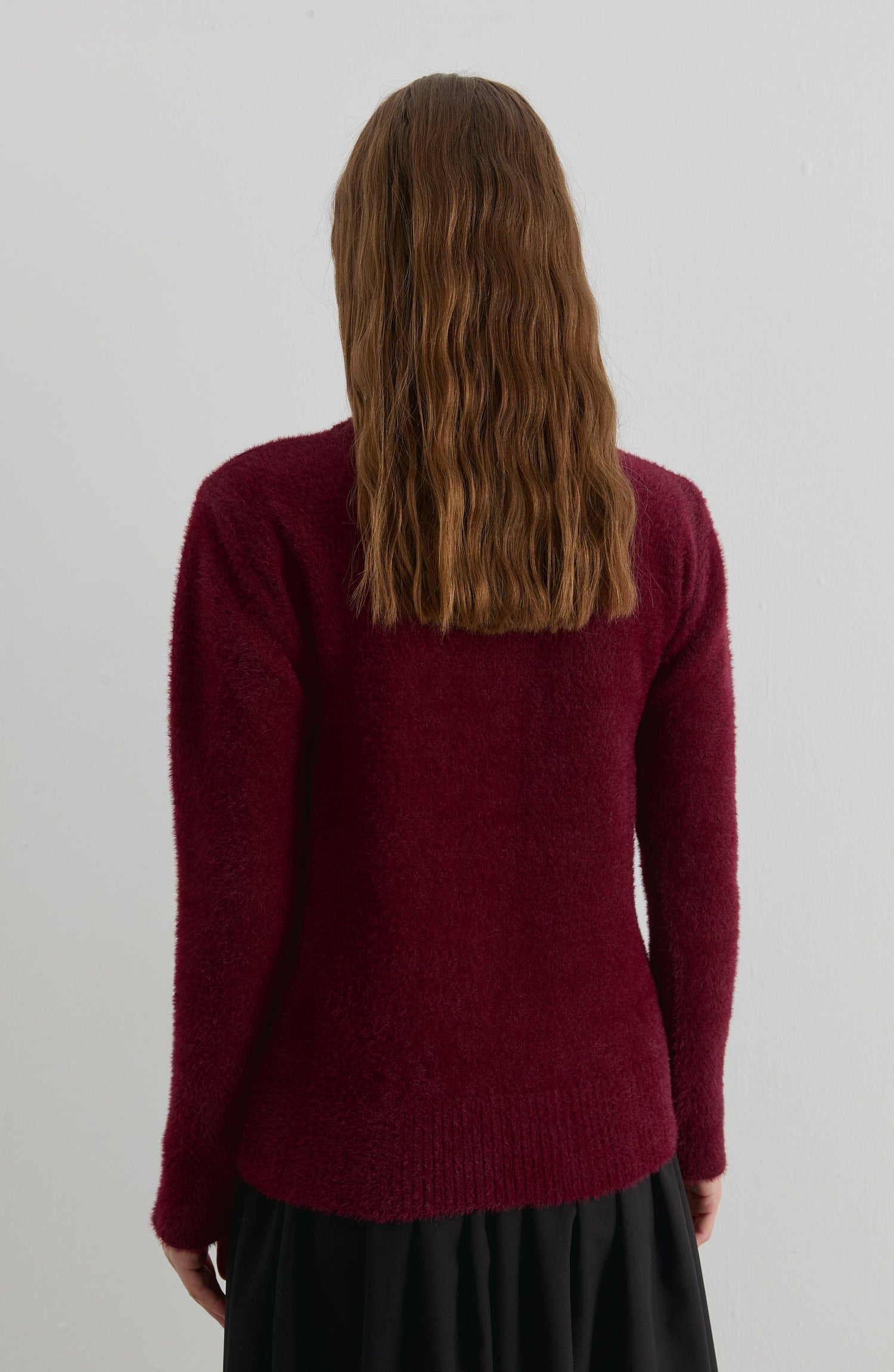 Gold Düğmeli Bordo Kısa Basic Yumoş Triko Kazak - Fatma Atasoy