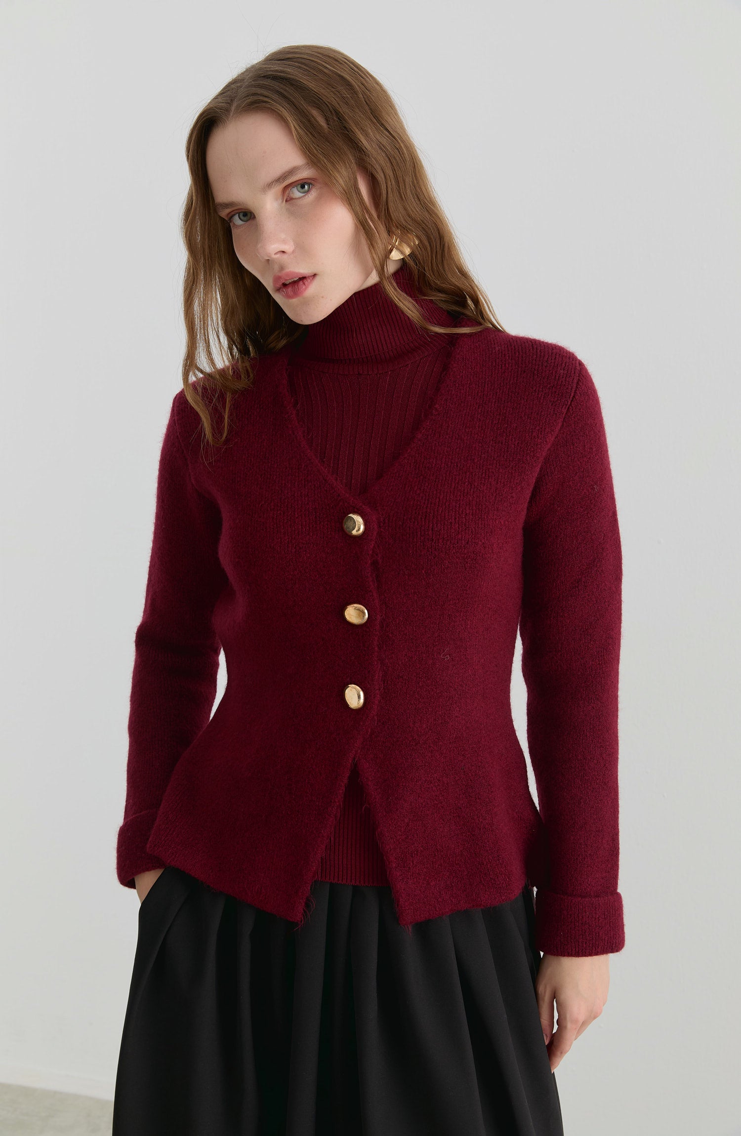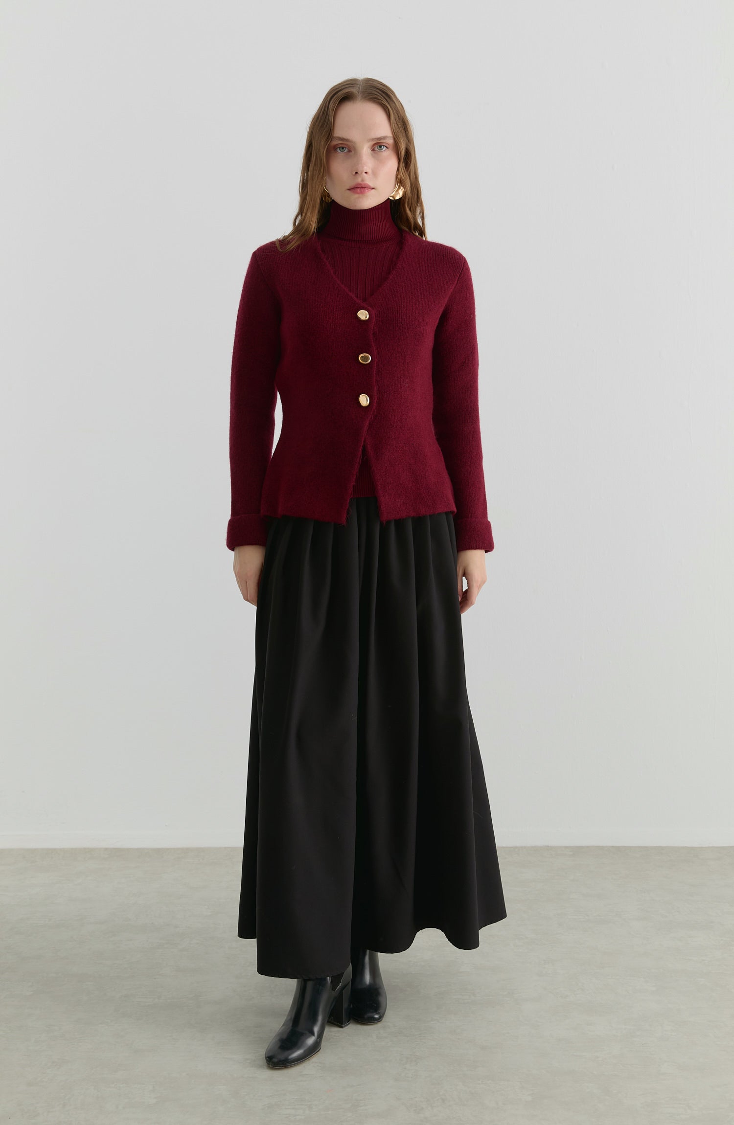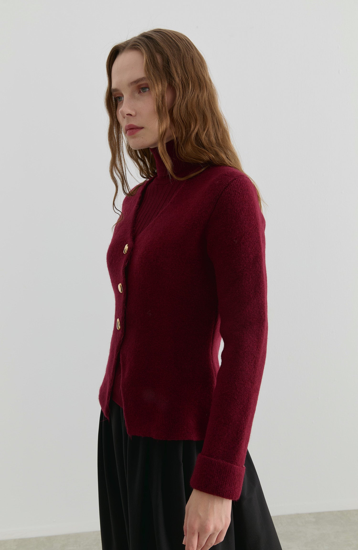Gold Düğmeli Bordo Yumoş Triko Hırka - Fatma Atasoy