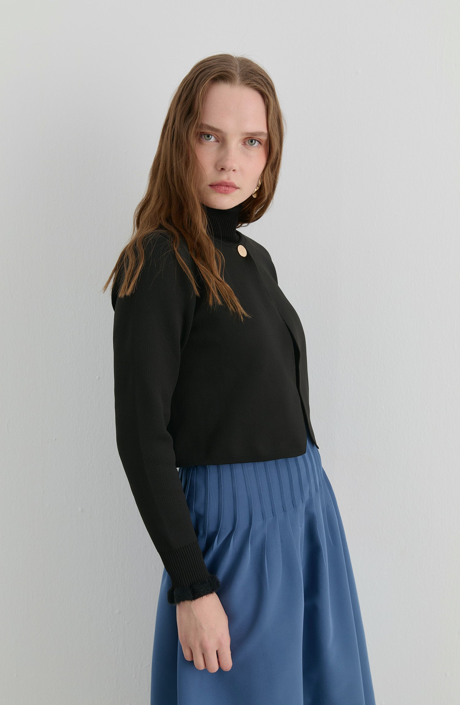 Gold Düğmeli Siyah Kısa Triko Ceket Hırka - Fatma Atasoy