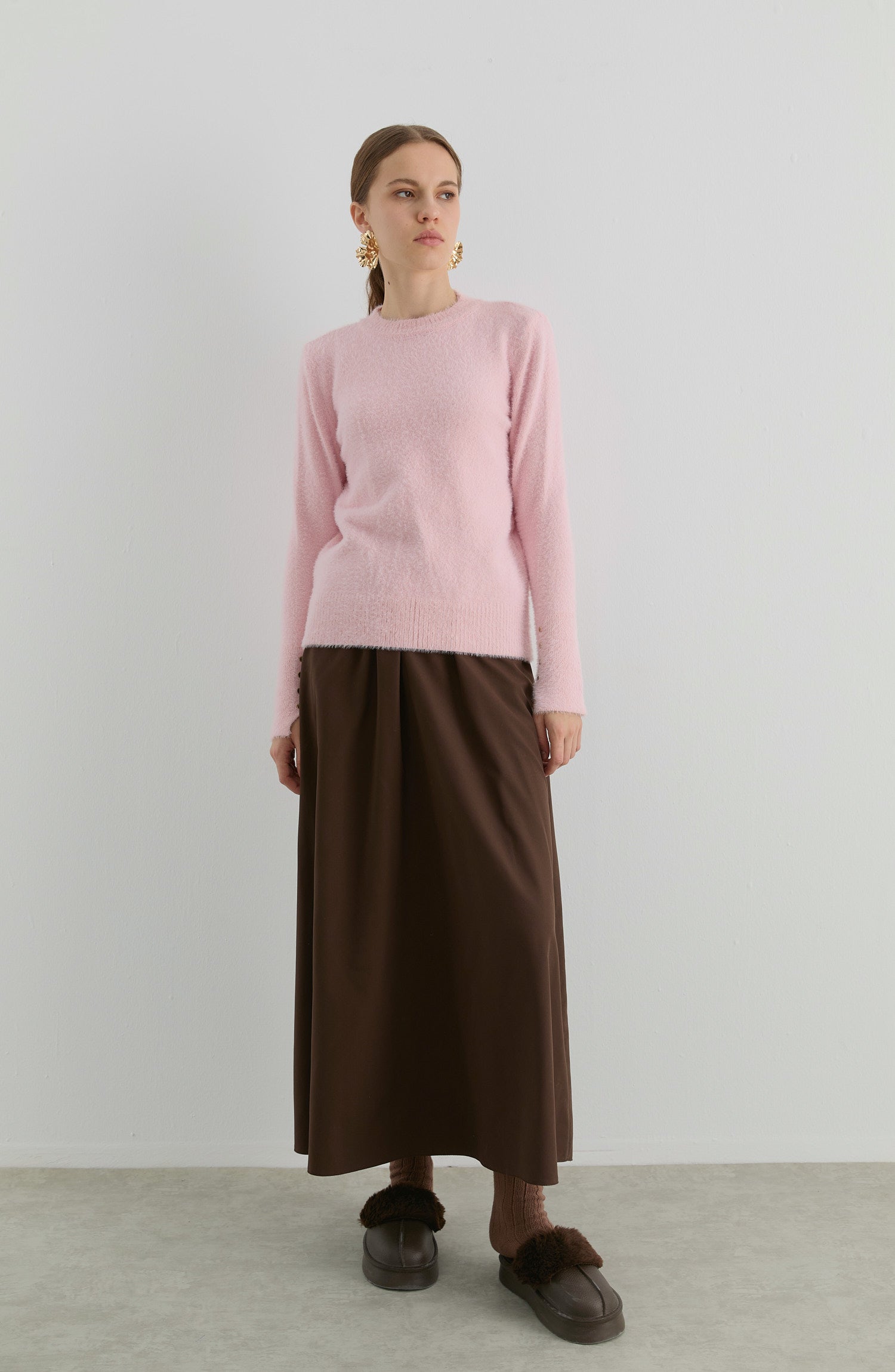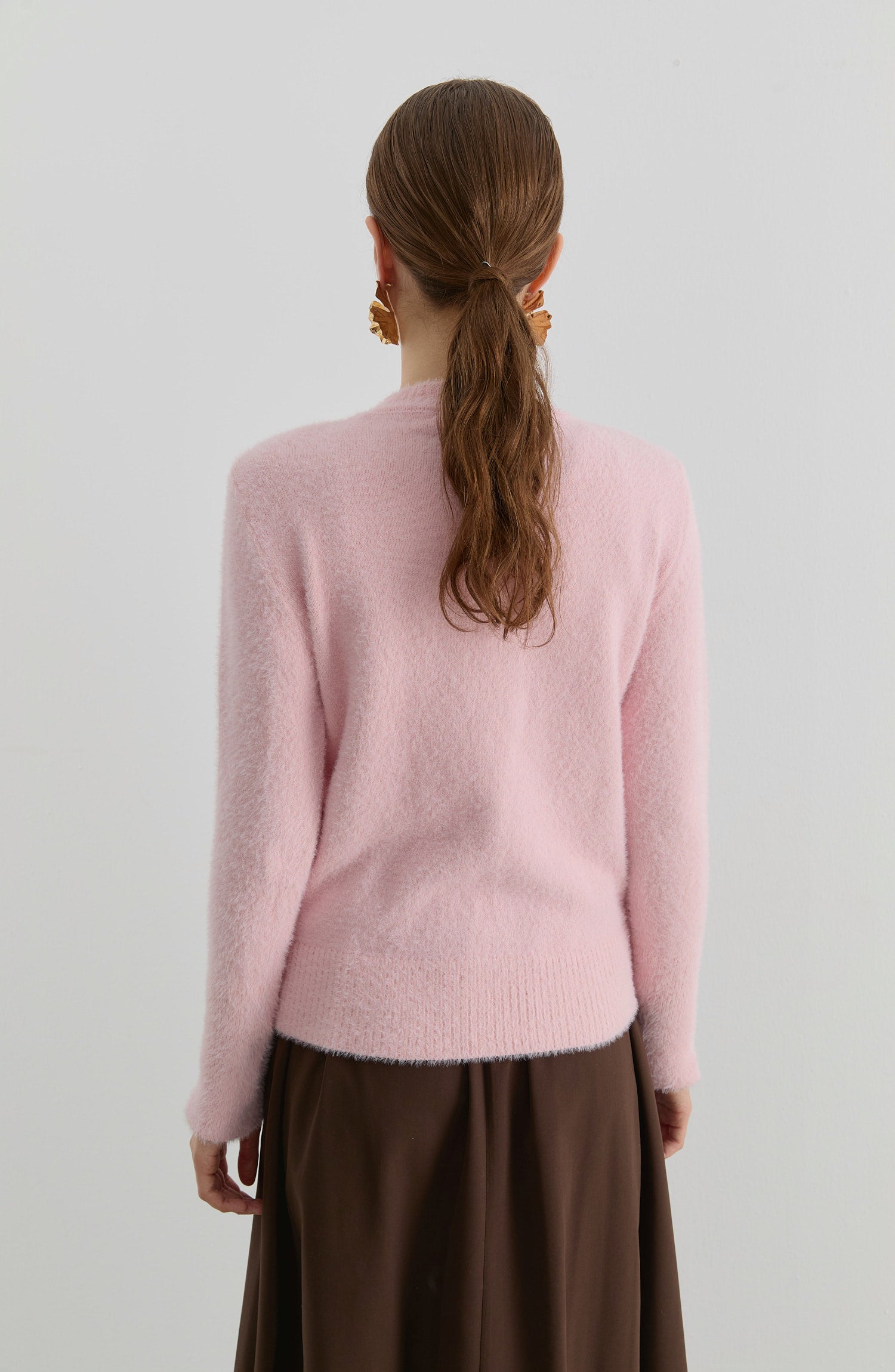 Gold Düğmeli Soft Pembe Kısa Basic Yumoş Triko Kazak - Fatma Atasoy