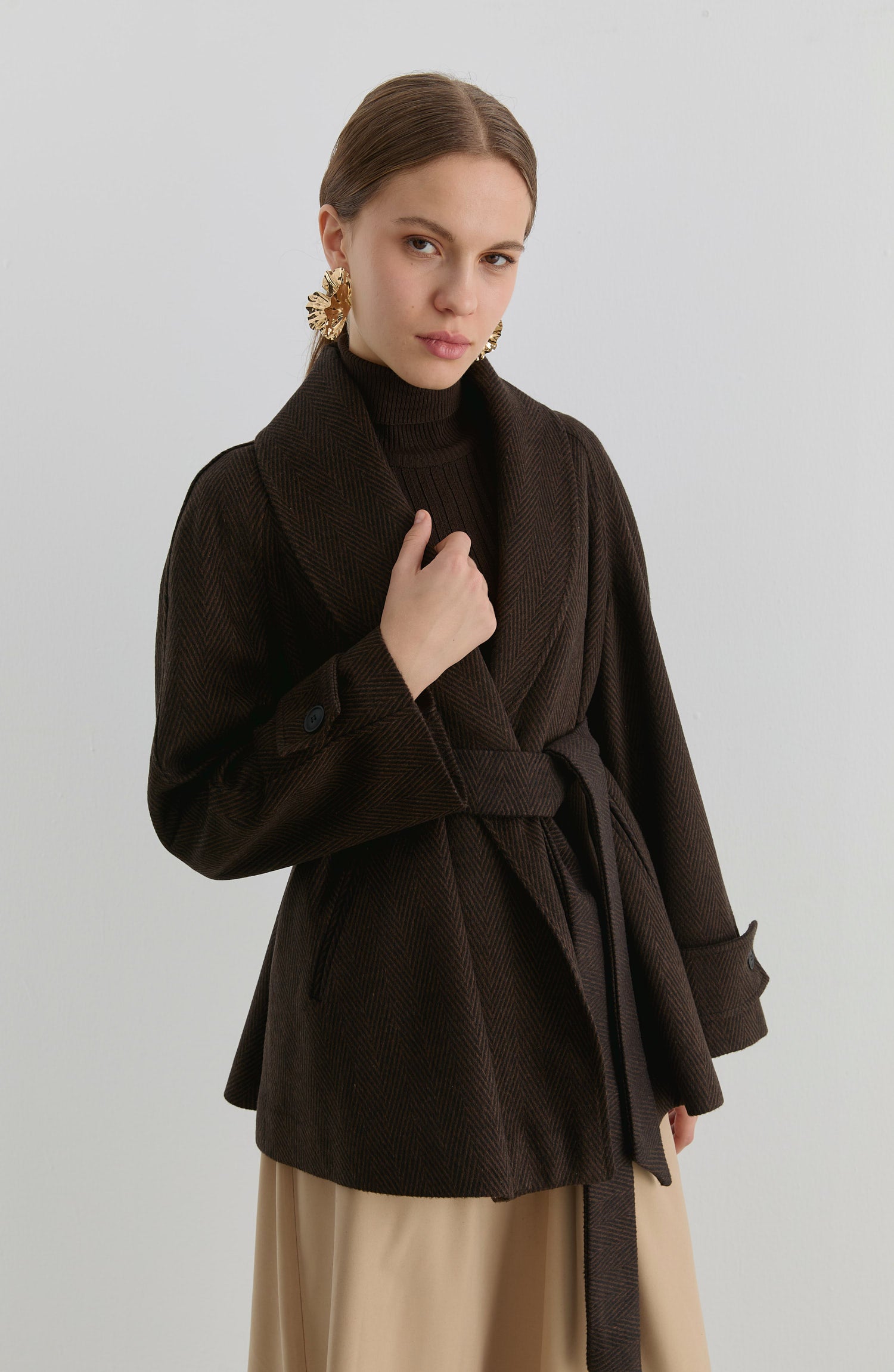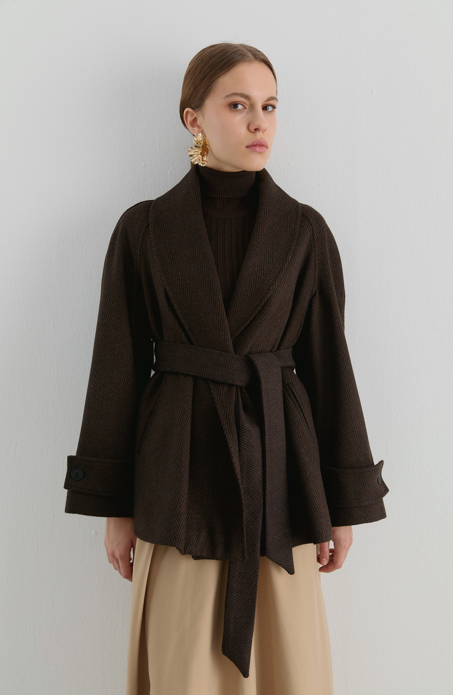 %40 Yün ve %60 Akrilik karışımından üretilen balıksırtı dokuma kumaş, klasik ve zarif bir görünüme sahiptir. Yün lifler sayesinde sıcak tutar, akrilik içeriği ise hafiflik ve dayanıklılık sağlar.