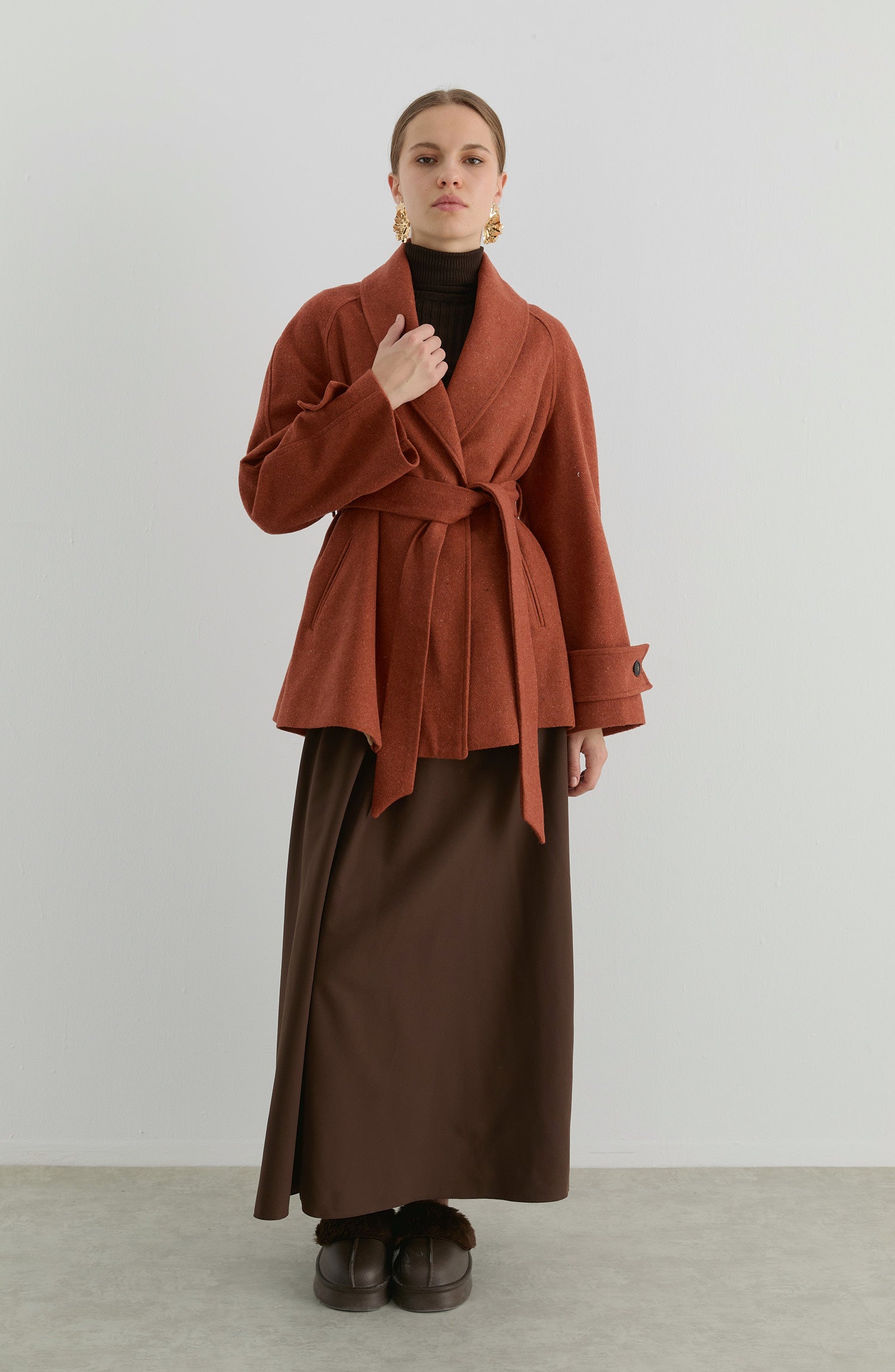 Şık ve zamansız bir tasarıma sahip Kruvaze Midi Ceket Kaban, kaşe dokusu ve rahat kalıbıyla mevsim geçişlerinin kurtarıcı parçası olmaya aday. Şal yaka ve reglan kol kesimi modern bir silüet sunarken, koldaki apolet detayı ve tek gizli düğme kapaması sofistike bir görünüm kazandırır. İki adet kullanılabilir peto cep hem şıklık hem de pratiklik sağlarken, beldeki opsiyonel kullanılabilir kuşak sayesinde farklı bağlama stilleriyle formu dilediğiniz gibi şekillendirebilirsiniz. Midi boy tasarımı, kaşe kumaşın sıcak tutan dokusuyla birleşerek hem gündelik hem de şehirli kombinlerde zarif bir duruş sergiler.