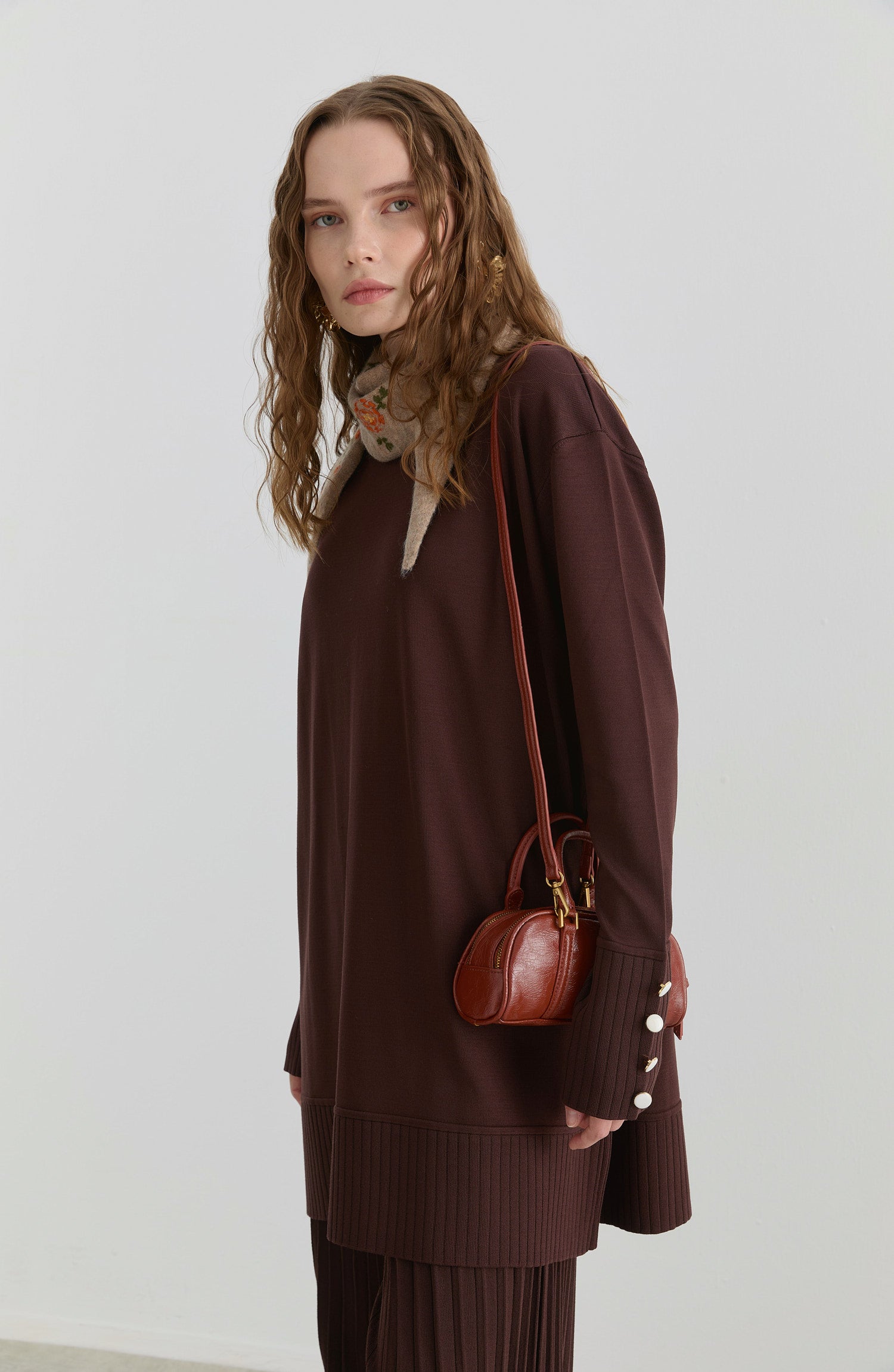 Piliseli Pantolonlu Acı Kahve Merserize Triko İkili Takım - Fatma Atasoy