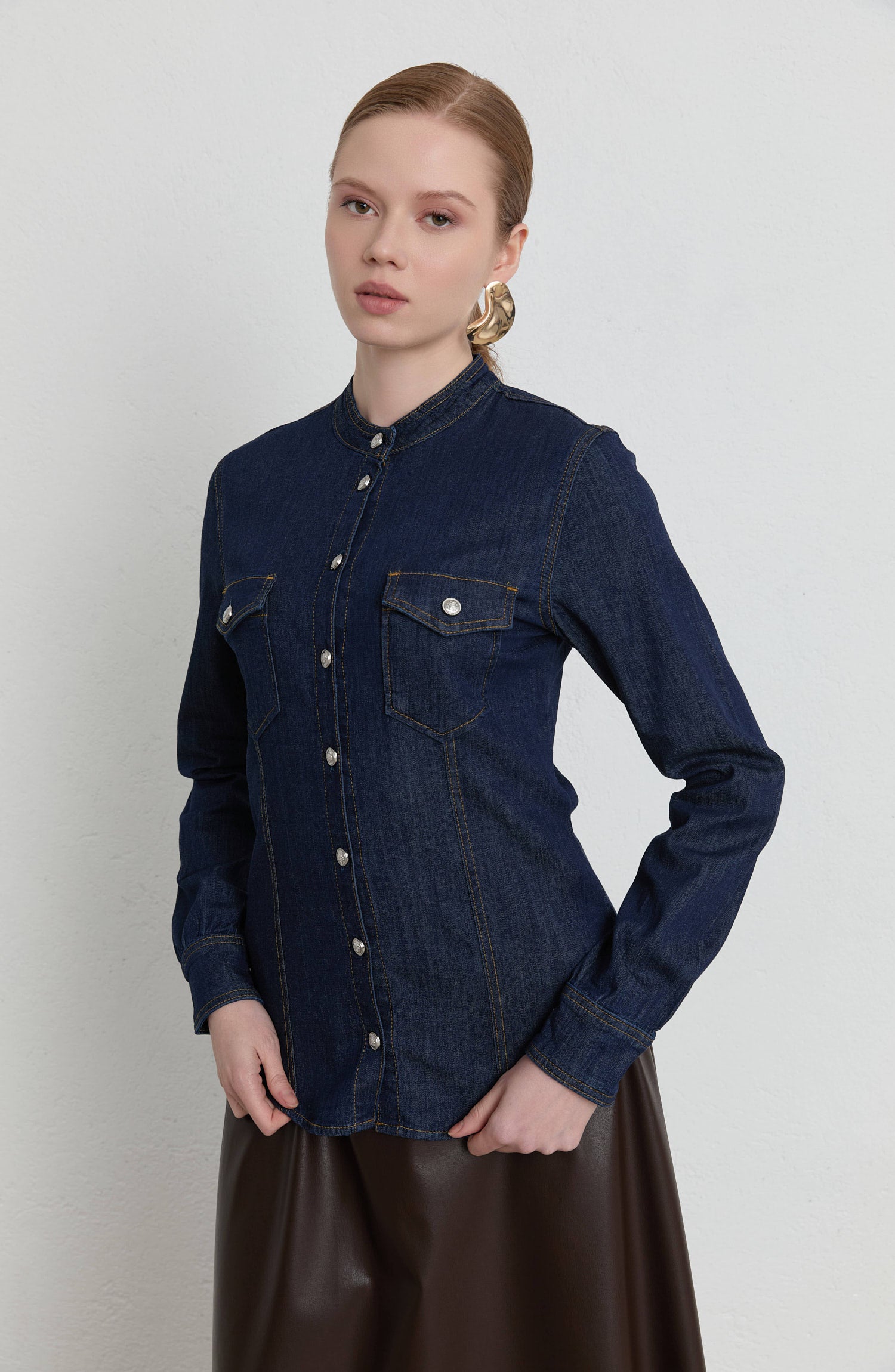 Feminen detayları modern denim yorumu ile bir araya getiren Blazer Denim Gömlek, %100 pamuk kumaşı sayesinde gün boyu konfor sunar. Hakim yaka ve tek sıra blazer düğme detayı, gömleğe güçlü ve şehirli bir duruş kazandırırken; çift iğne spor dikişleri tasarıma dinamik bir karakter katar. Fonksiyonel göğüs cepleriyle hem şık hem de kullanışlı bir parçadır.