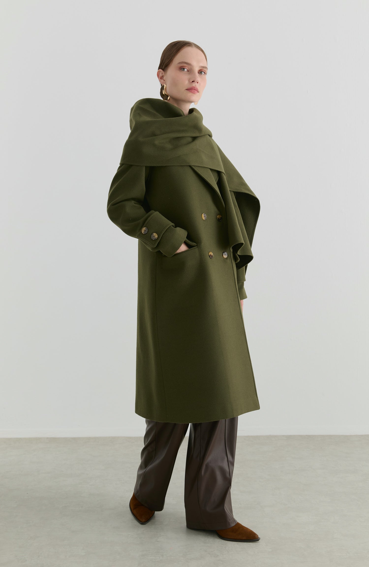 Oversize Atkılı Haki Kaşmir Kaban - Fatma Atasoy