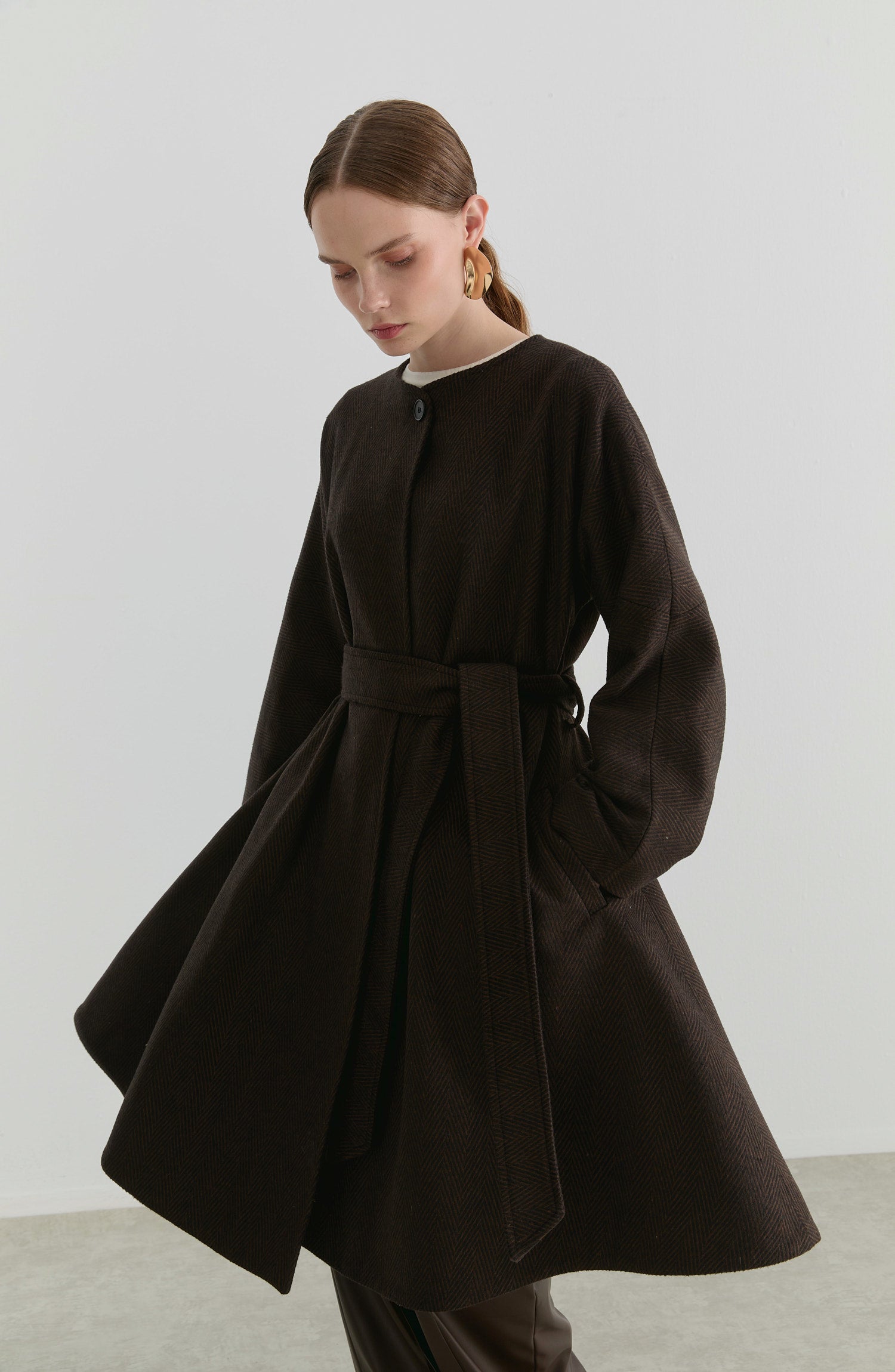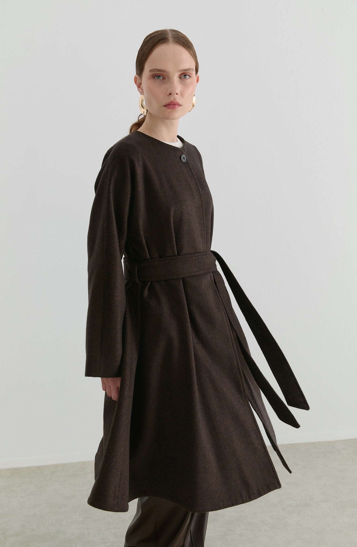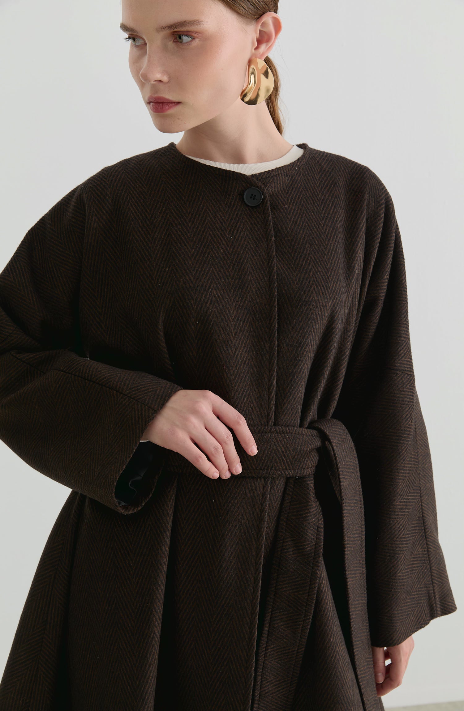 Pelerin Balıksırtı Acı Kahve Yün Kaban