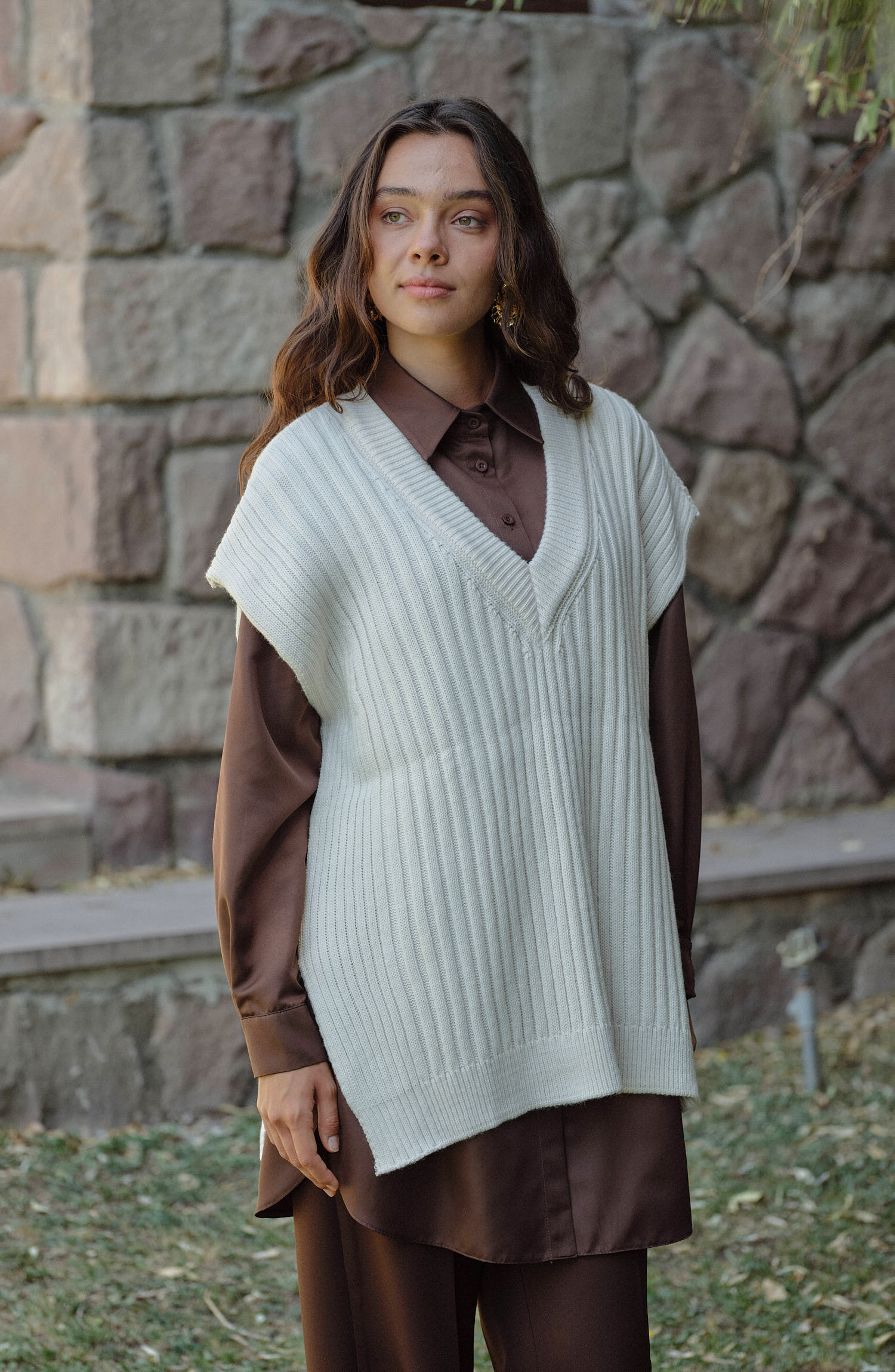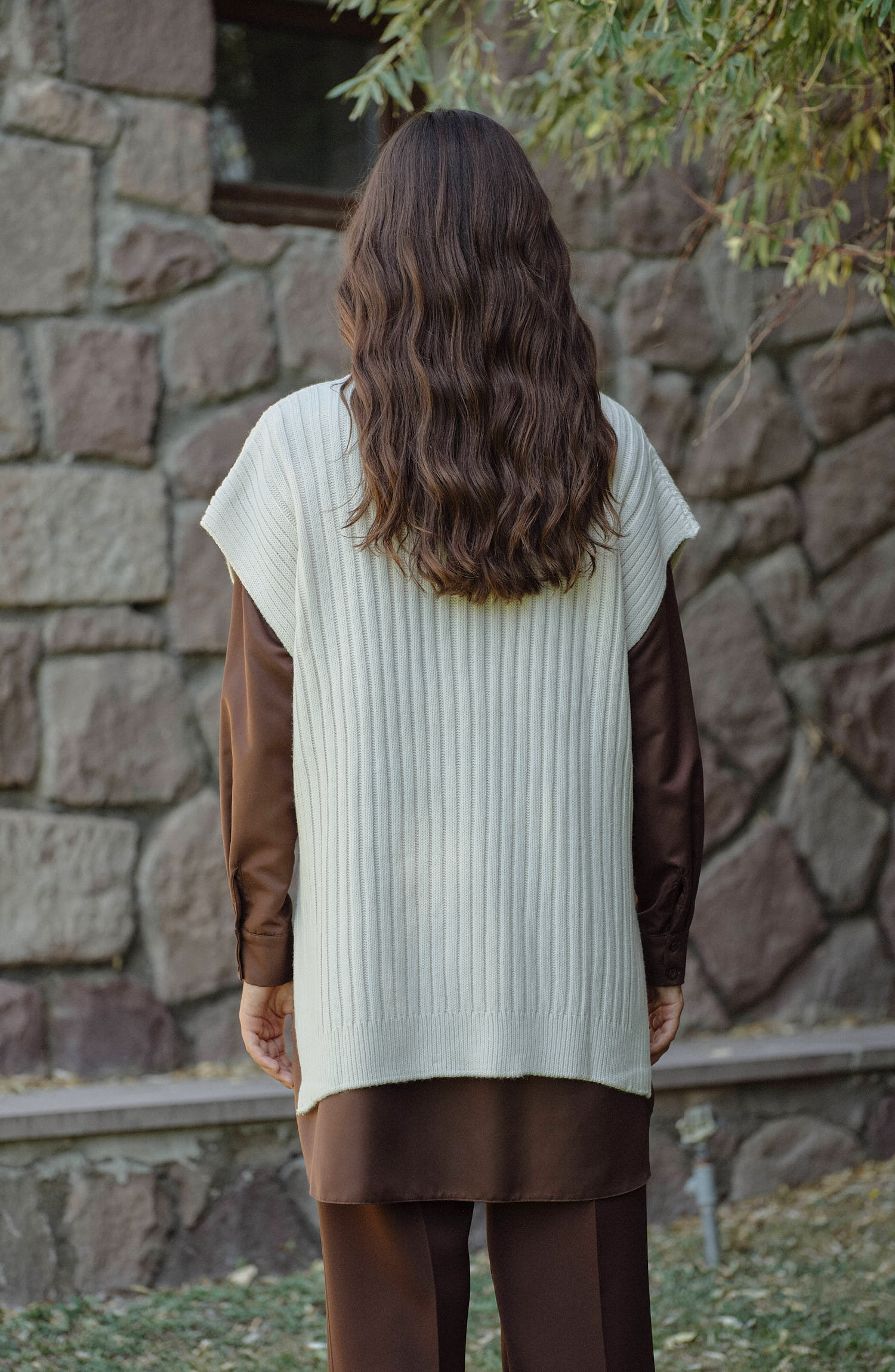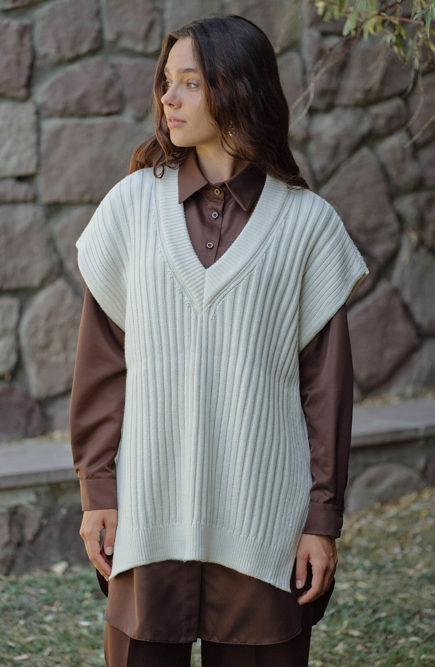 Kullanım Önerisi: Gömlekler veya boğazlı triko bodylerin üzerine katmanlayarak kullanabilir; ister ofis şıklığında ister günlük kombinlerde zahmetsizce tercih edebilirsiniz. Klasik pantolonlar veya eteklerle uyumlu şekilde stilinizi tamamlar.