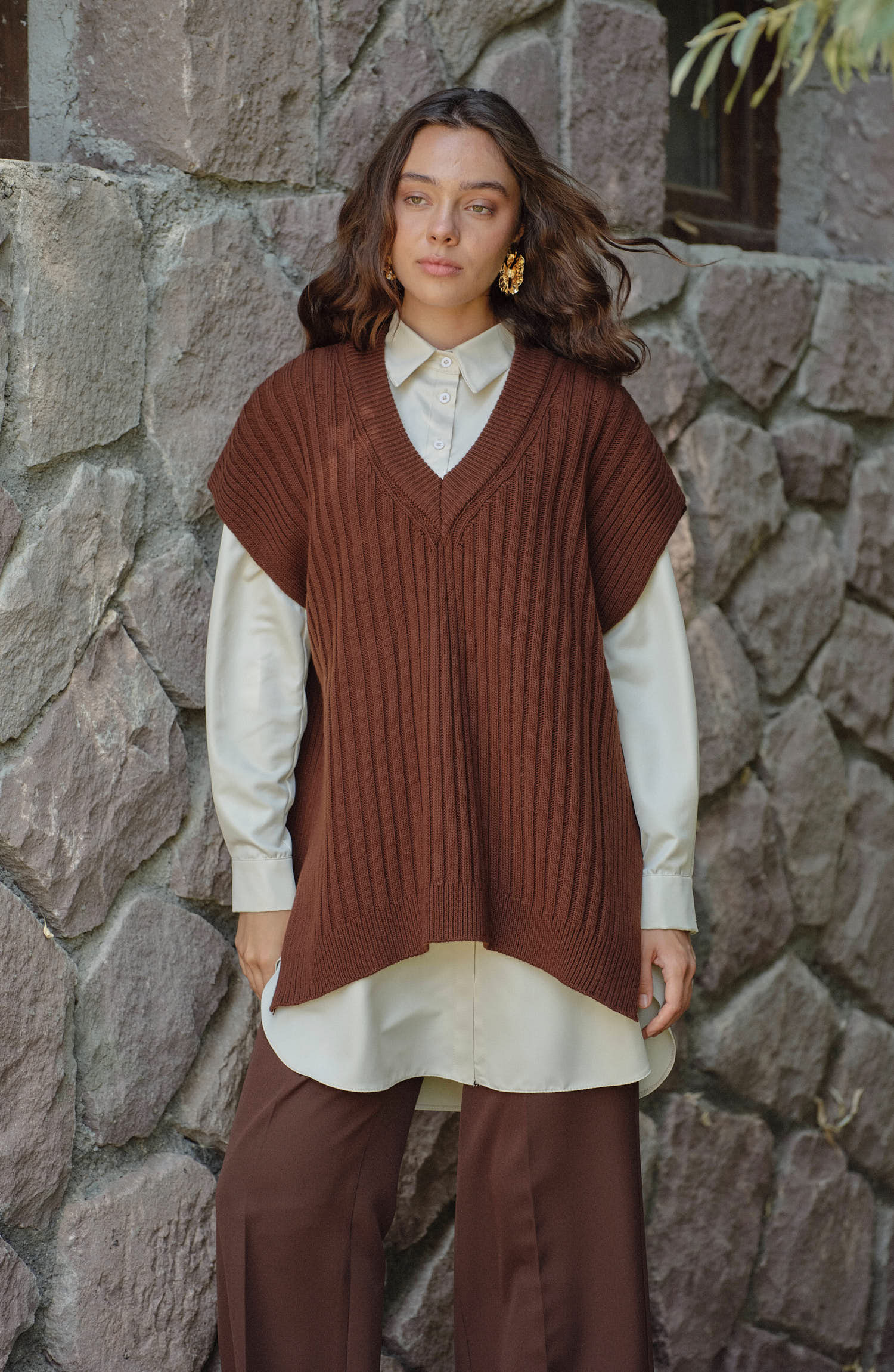 Kullanım Önerisi: Gömlekler veya boğazlı triko bodylerin üzerine katmanlayarak kullanabilir; ister ofis şıklığında ister günlük kombinlerde zahmetsizce tercih edebilirsiniz. Klasik pantolonlar veya eteklerle uyumlu şekilde stilinizi tamamlar.