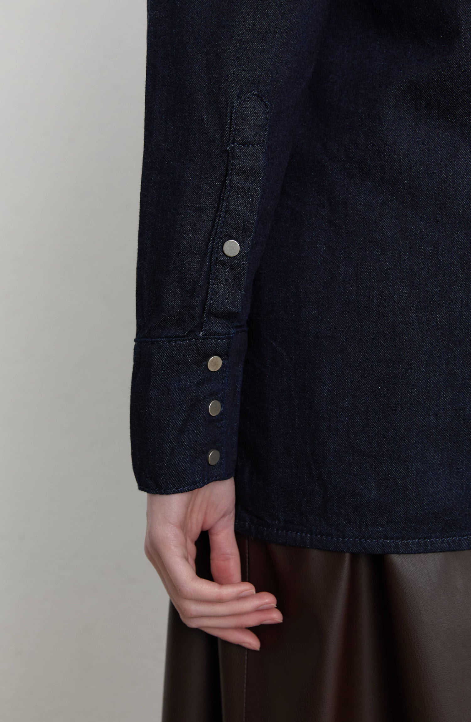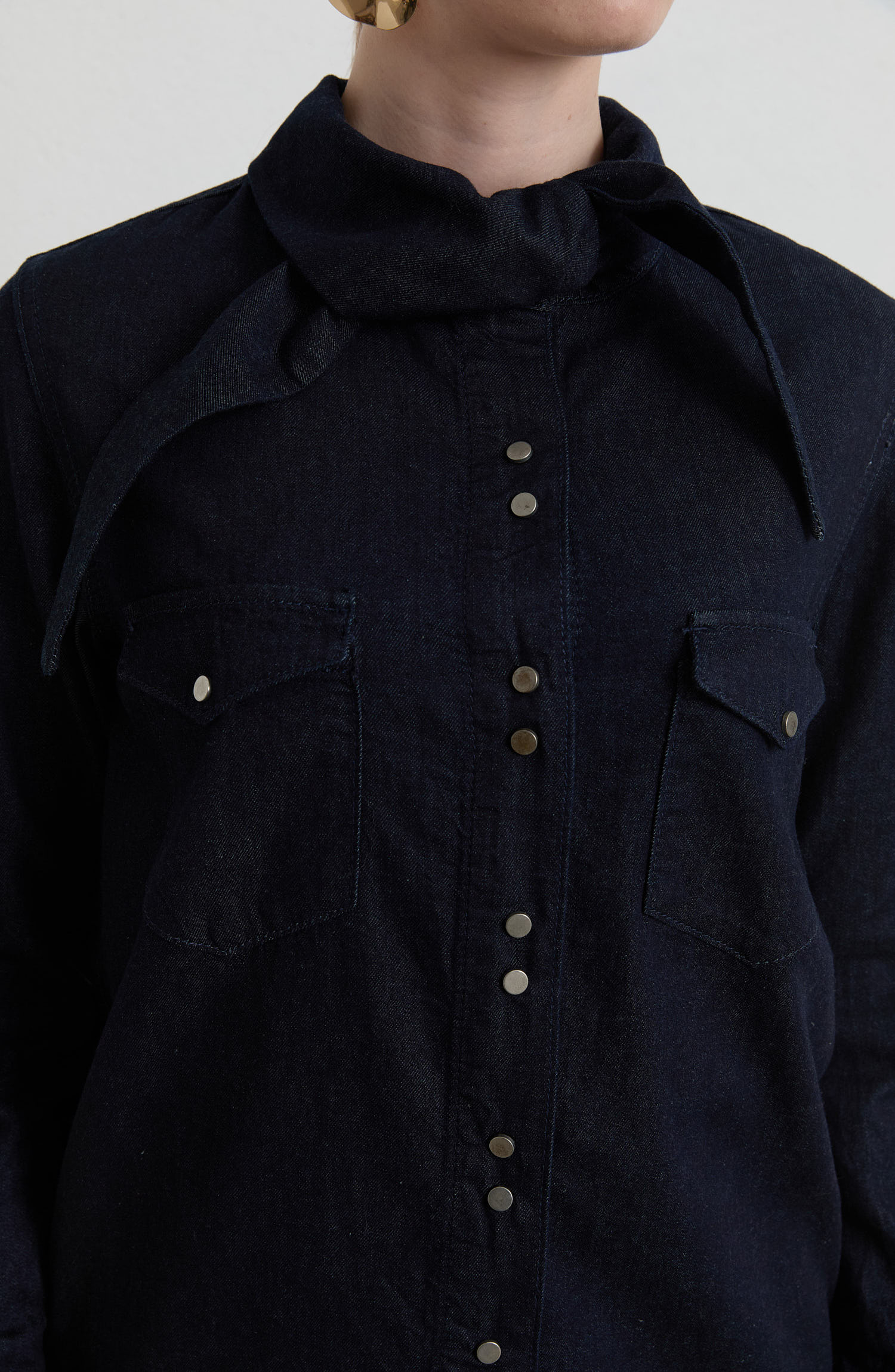 Bağlama Detaylı Lacivert Denim Gömlek