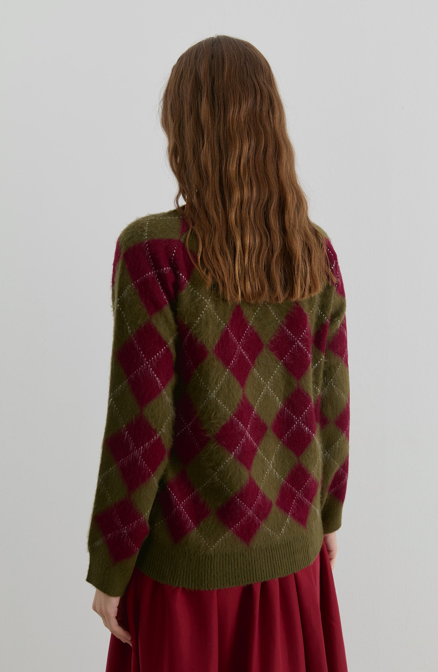 Baklava Desen Haki-Bordo Yumoş Triko Kazak