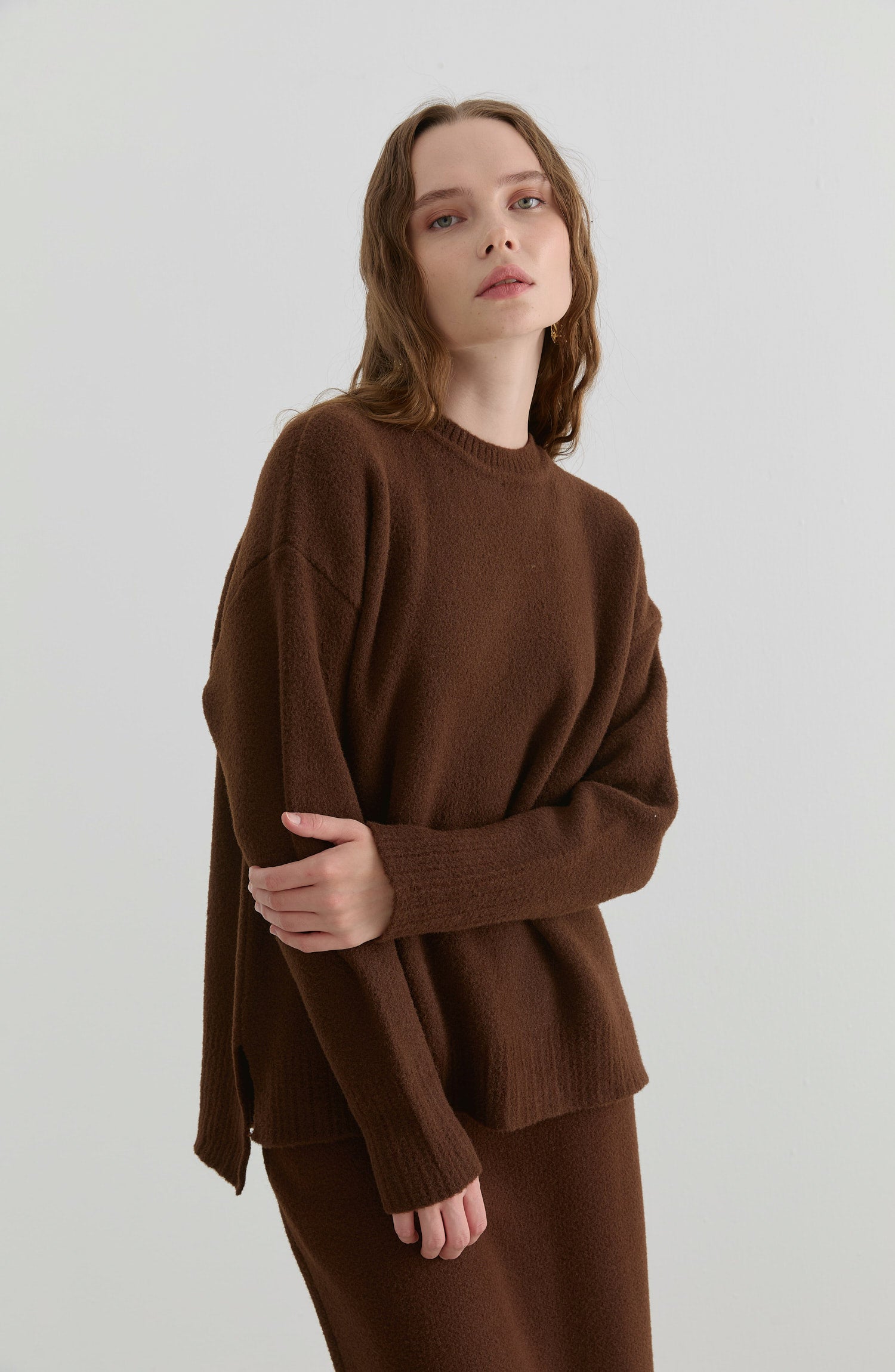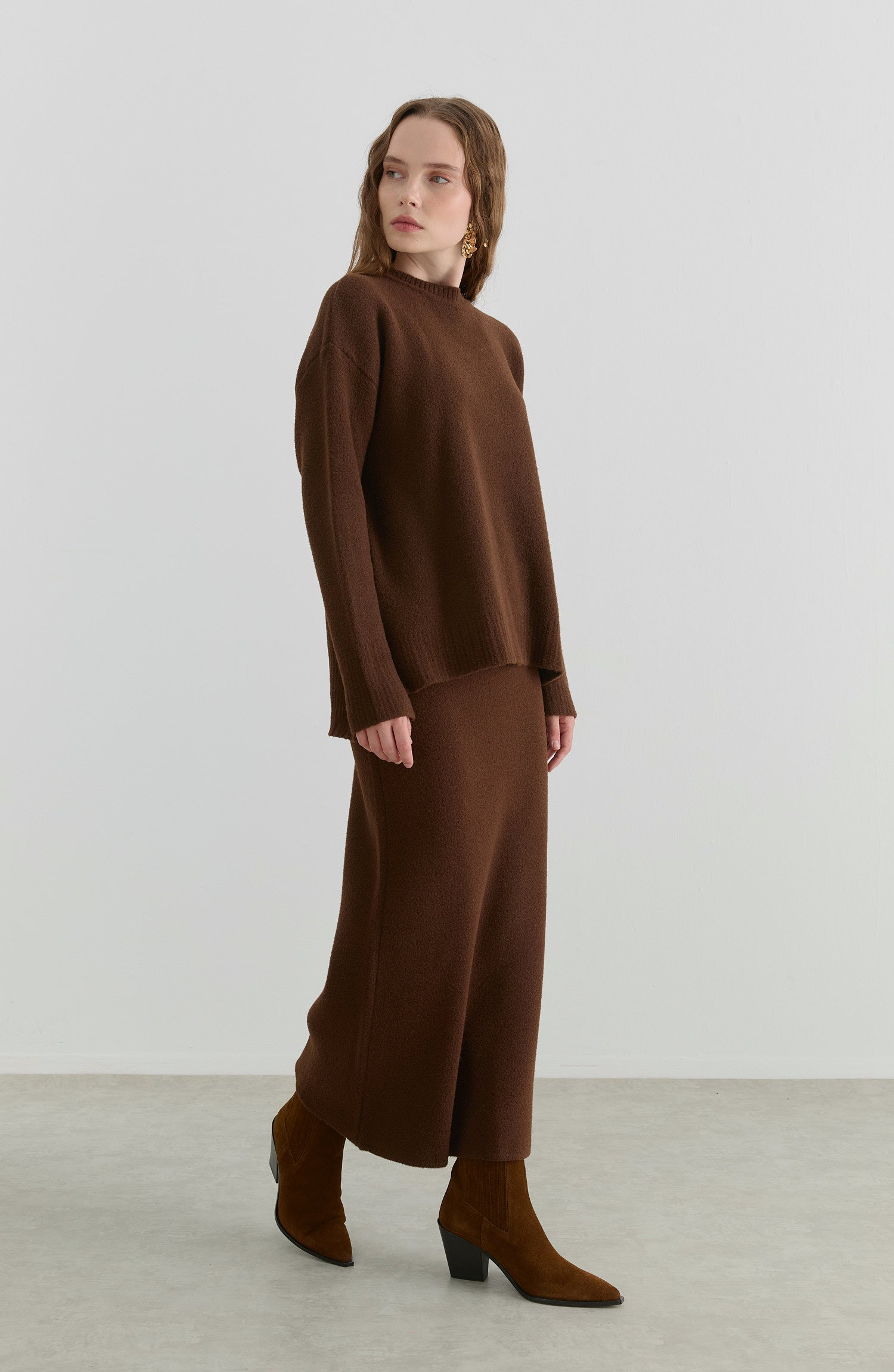 Basic Yumoş Kahverengi Triko Etekli İkili Takım - Fatma Atasoy