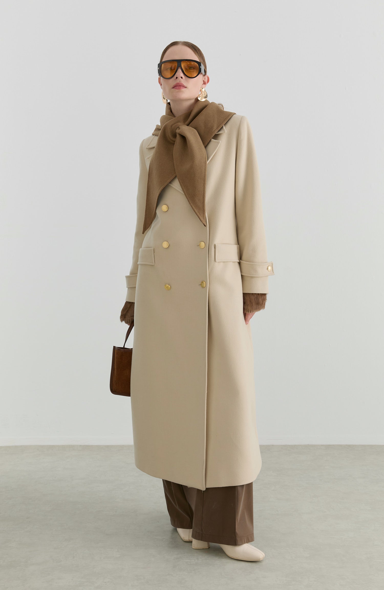 Kaşmir şardonlu yüzeyi, kumaşa yumuşak ve sıcak bir dokunuş kazandırır; bu da onu özellikle sonbahar ve kış koleksiyonları için ideal hale getirir. Dayanıklı yapısı sayesinde uzun ömürlü kullanım sağlar, aynı zamanda elastan içeriği ile esneklik ve rahat hareket imkânı sunar.Zamansız şıklığı modern detaylarla buluşturan Blazer Maksi Kaşmir Kaban, yumuşak dokulu kaşmir kumaşı ve rahat kalıbıyla stil sahibi görünümler sunar. Klasik blazer formu, arka bel ve koldaki apolet detaylarıyla tamamlanarak sofistike bir duruş kazandırır. Astarlı ve vatkalı yapısı sayesinde formunu korurken, konforlu bir kullanım sağlar.