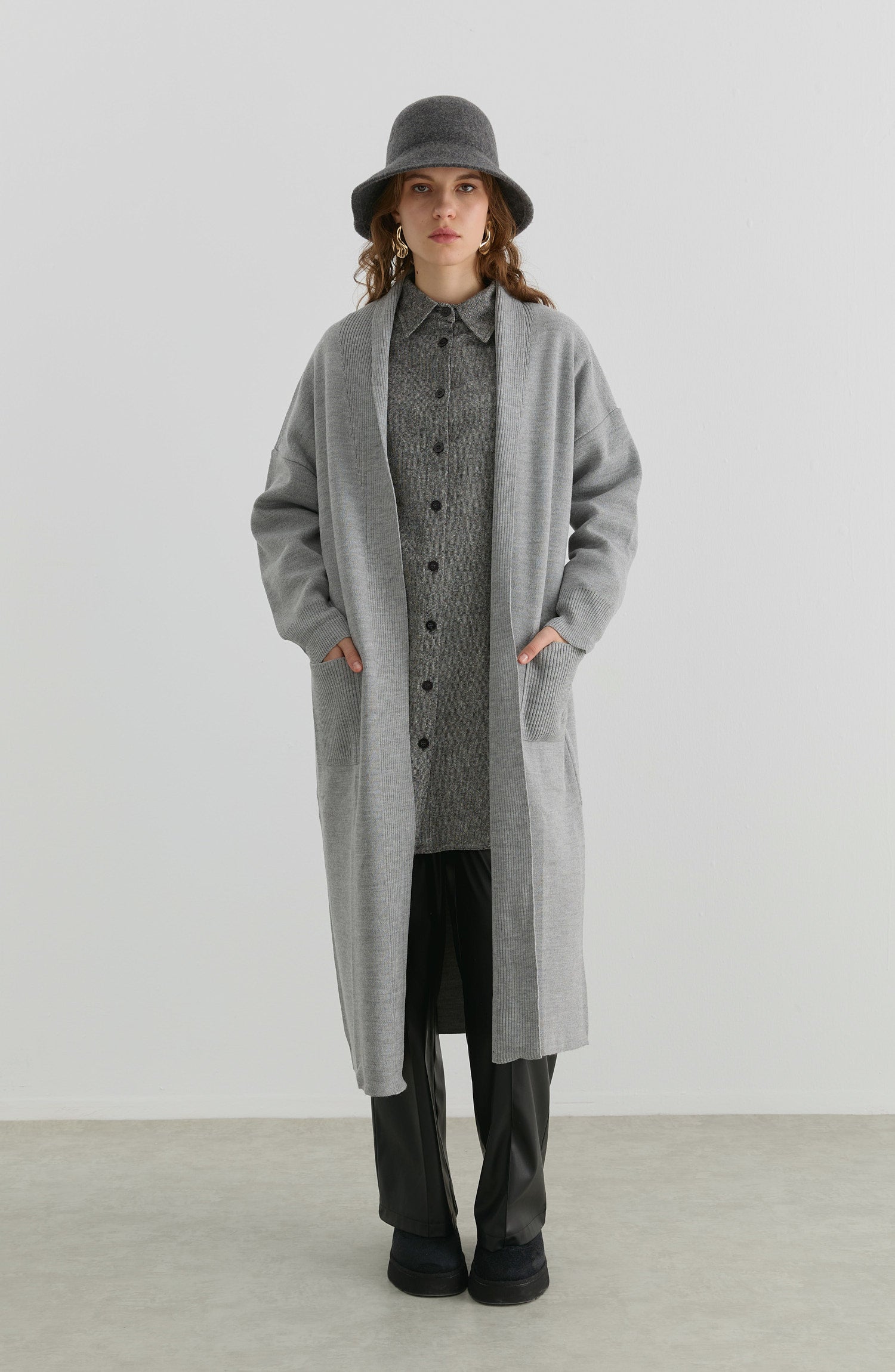 Cepli Maksi Gri Triko Hırka - Fatma Atasoy