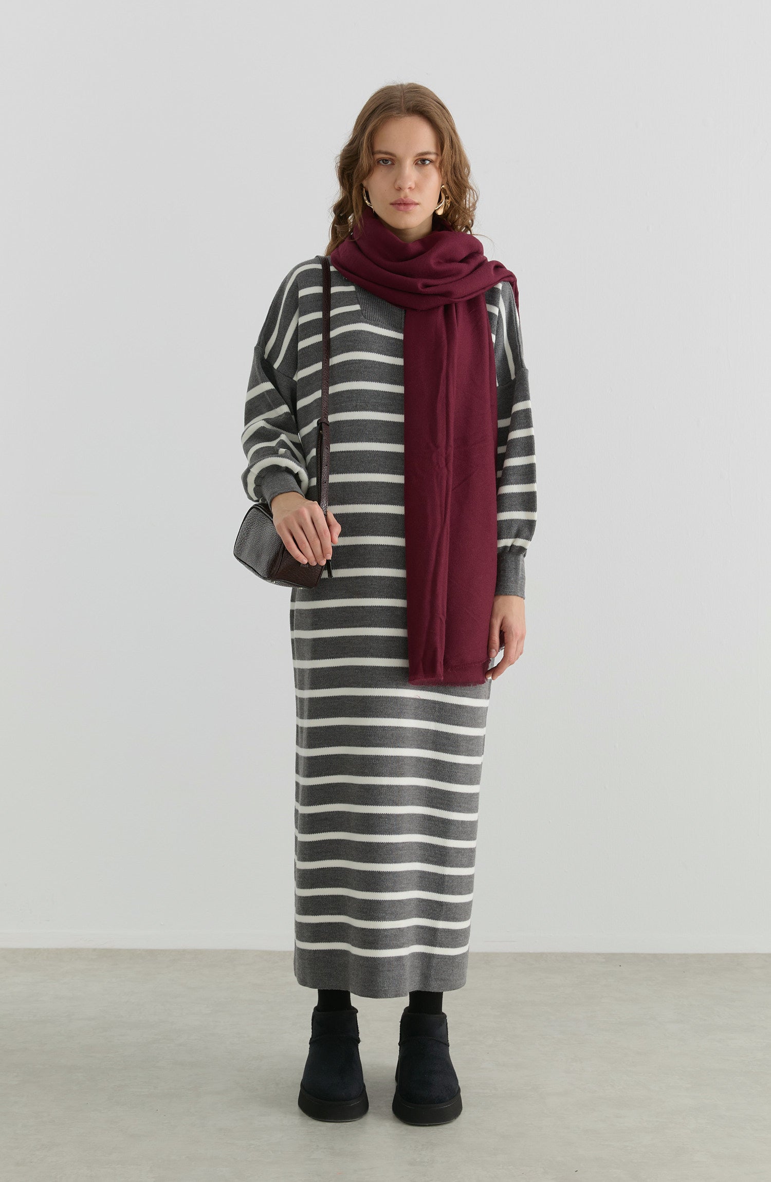 Konforu ve modern çizgiyi bir araya getiren Çizgili Triko Elbise, sezonun en trend detaylarını zarif bir şekilde buluşturuyor. Düşük omuz kesimi ve balon kollarıyla hacimli bir siluet oluştururken, dik yaka tasarımı ile sportif bir duruş kazandırıyor. Yarım patlı fermuar detayı, kullanımda kolaylık ve şıklık sunar. Yakası, kol ucu ve etek ucundaki fitilli triko detaylar ise ürüne dinamik bir görünüm kazandırır. Orta kalınlıktaki dokusu sayesinde hem mevsim geçişlerinde hem de serin günlerde rahatlıkla tercih edilebilir.