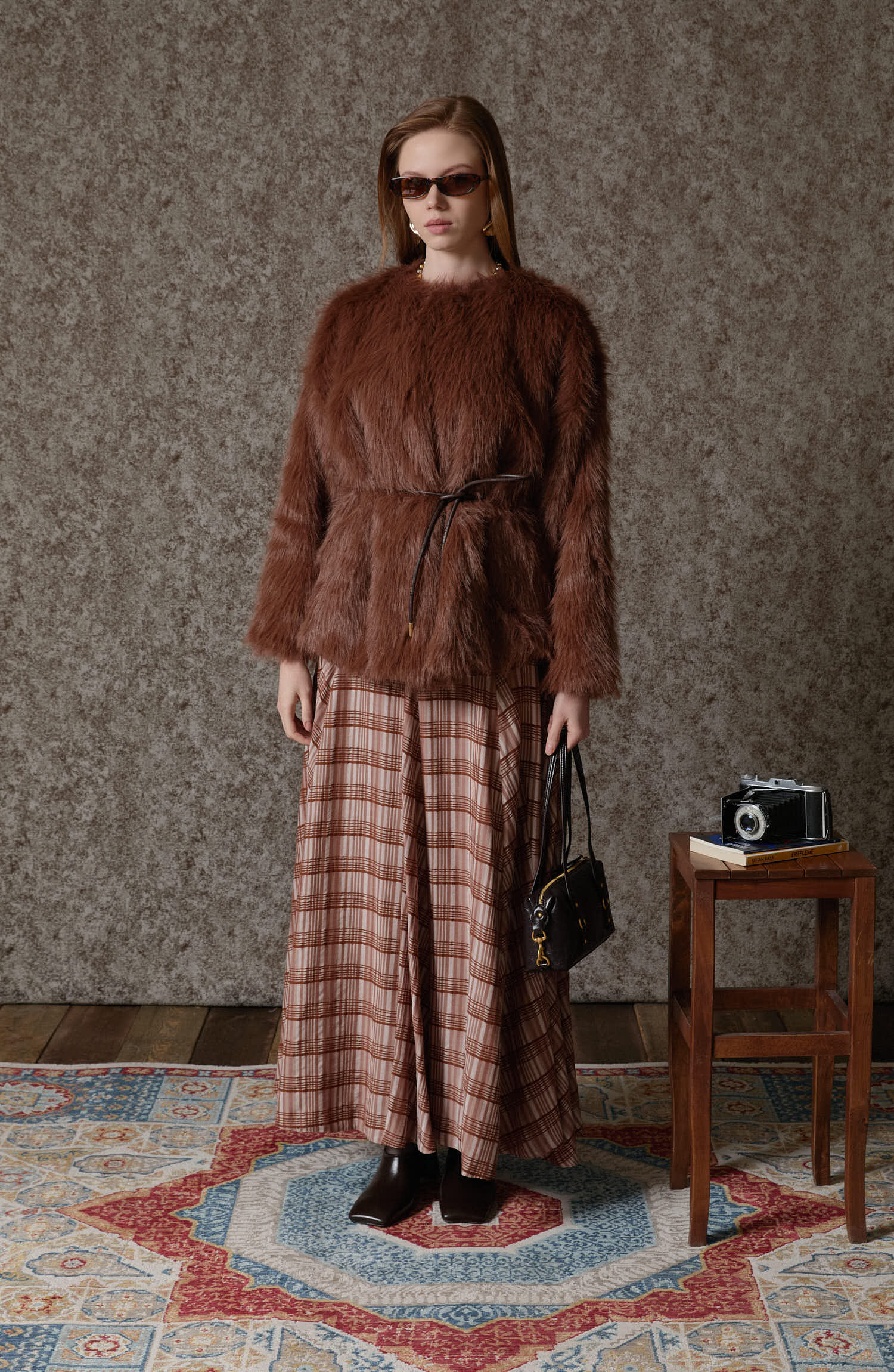 Ekose Kahverengi Parçalı Etek - Fatma Atasoy