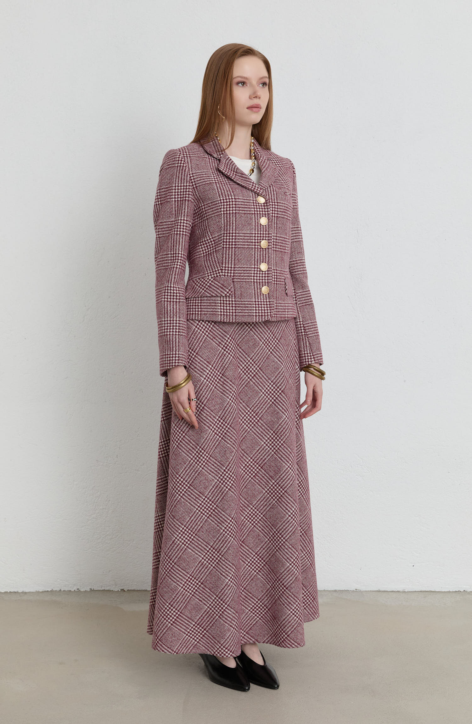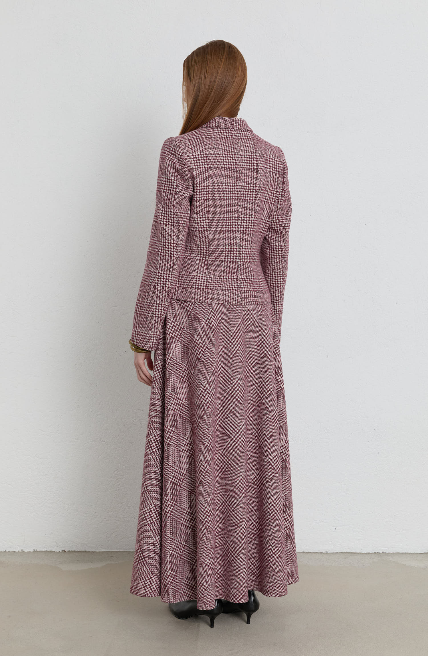 Ekose Kazayağı Bordo Blazer Ceket Etek Takım