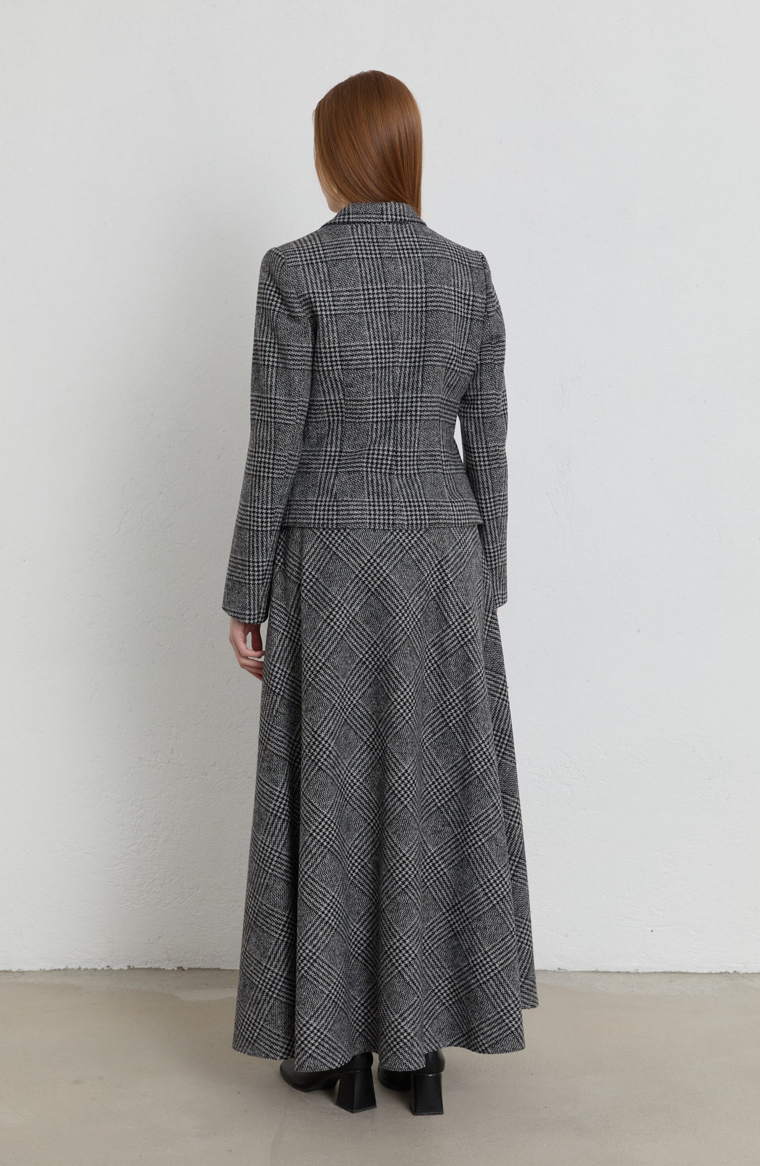 Ekose Kazayağı Siyah Blazer Ceket Etek Takım
