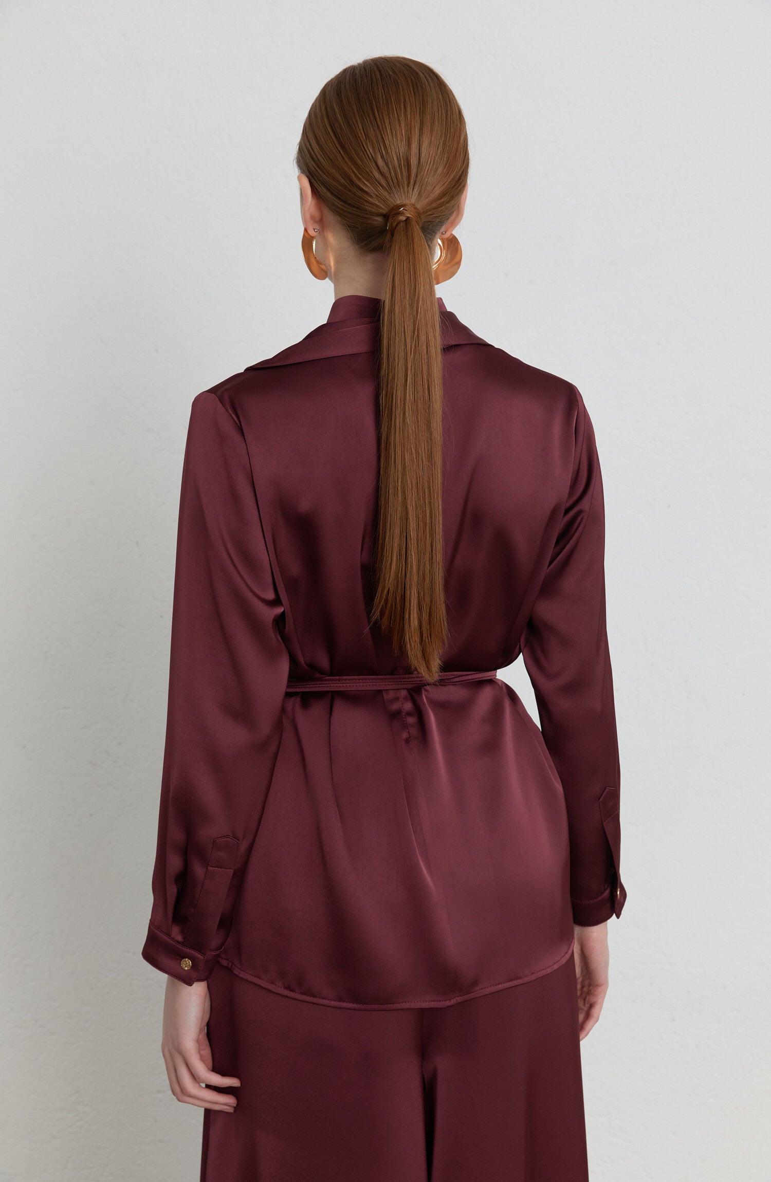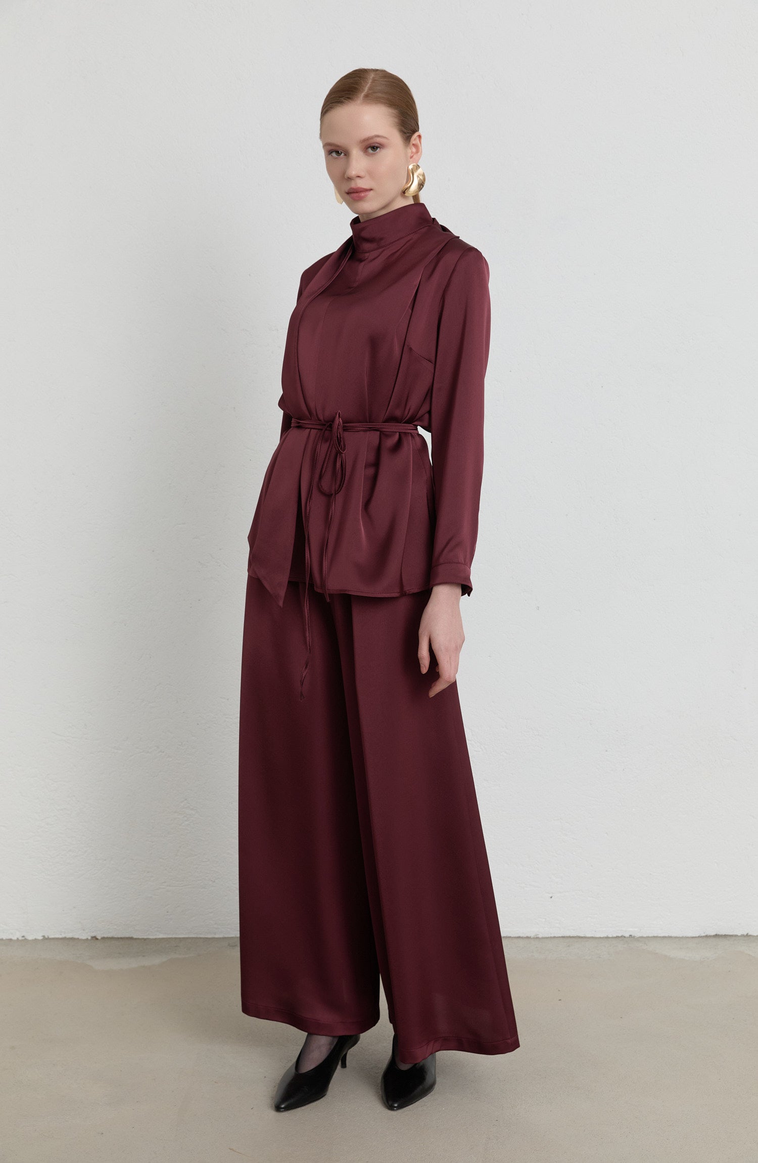 Fularlı Vişne Saten Gömlek - Fatma Atasoy