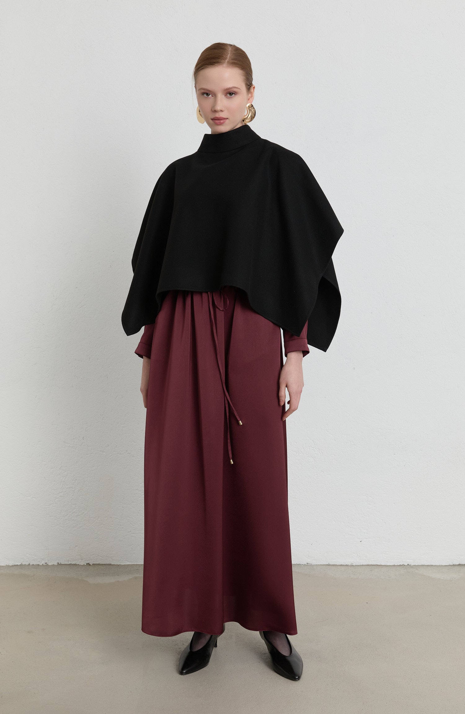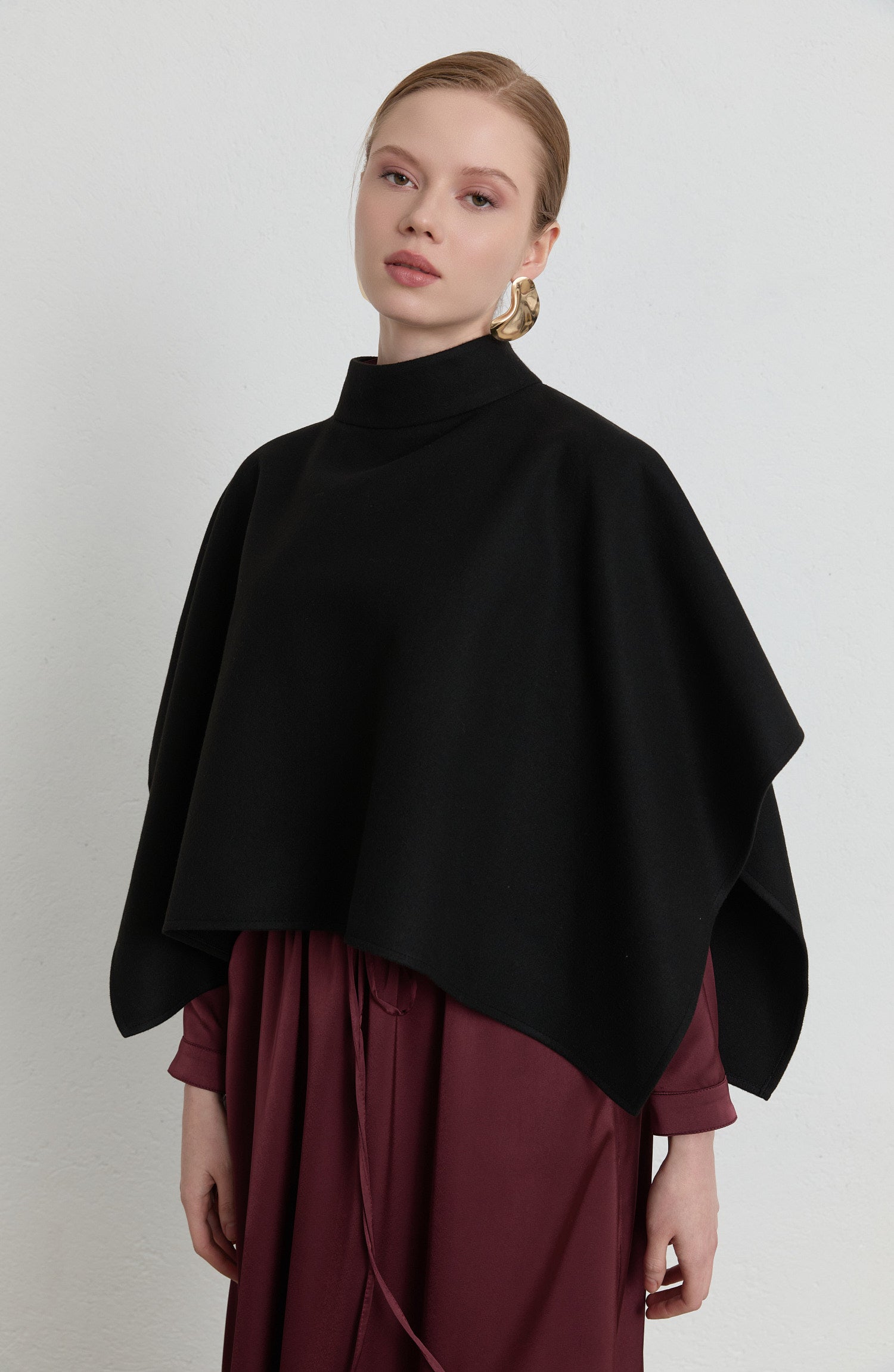 Zamansız formu ve şık duruşuyla öne çıkan Kaşe Panço, minimal tasarımı sayesinde hem günlük hem de özel kombinlerde kurtarıcı bir dış giyim parçasıdır. Dik yaka formu modern bir görünüm sunarken, arkadaki fermuar detayı kullanım kolaylığı sağlar. Kaşmir şardonlu dokusu ile yumuşak ve sıcak bir his sunan kumaşı, mevsim geçişlerinden kış aylarına kadar konforlu bir kullanım vadeder. Akıcı panço formu sayesinde katmanlı kombinler için idealdir.