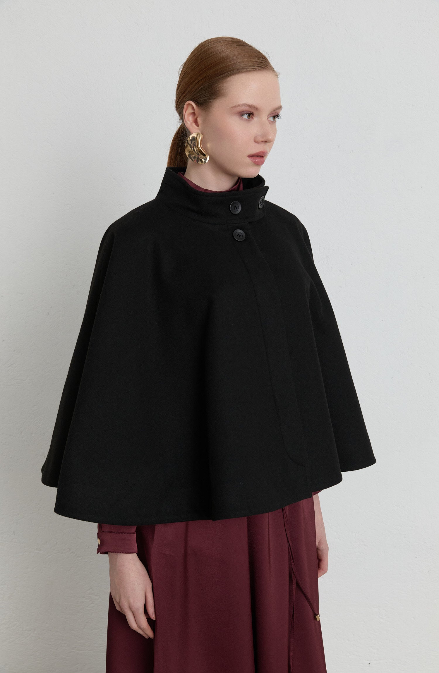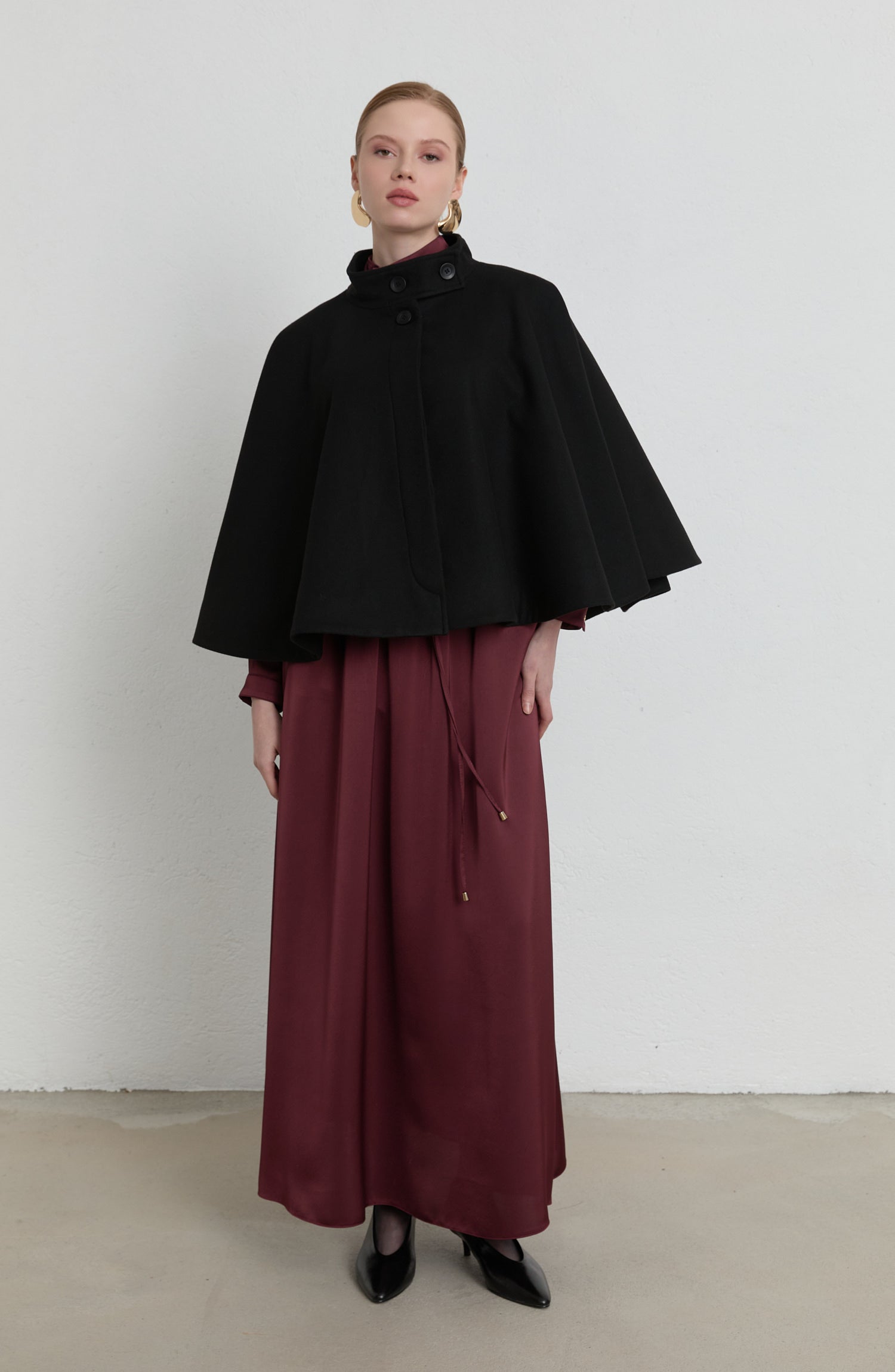 Kaşe Siyah Pelerin Panço