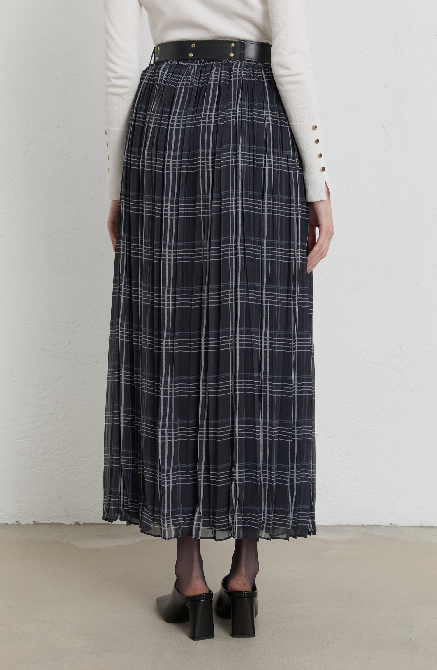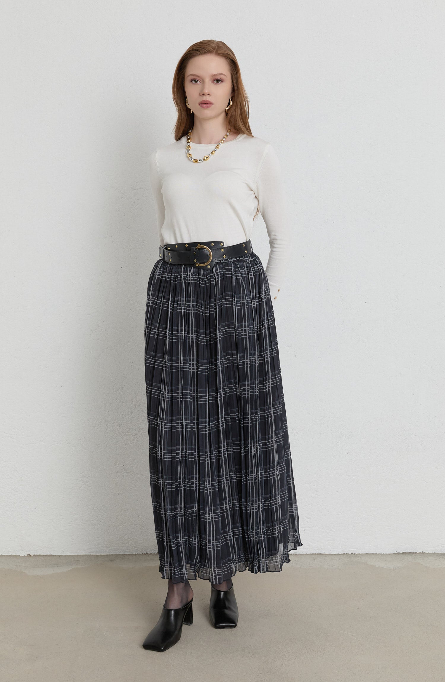 Kemerli Crash Antrasit Ekose Şifon Etek - Fatma Atasoy