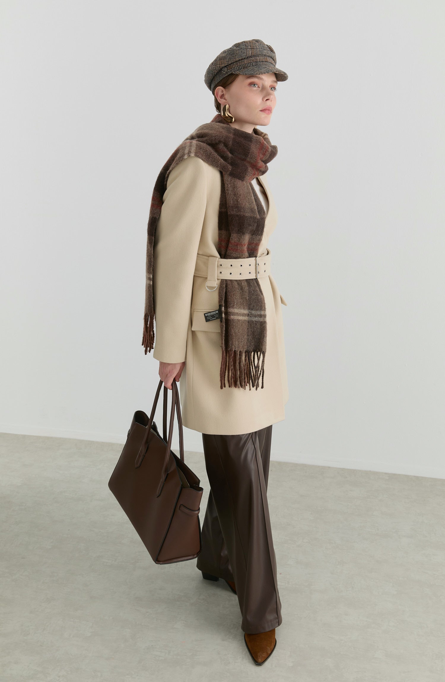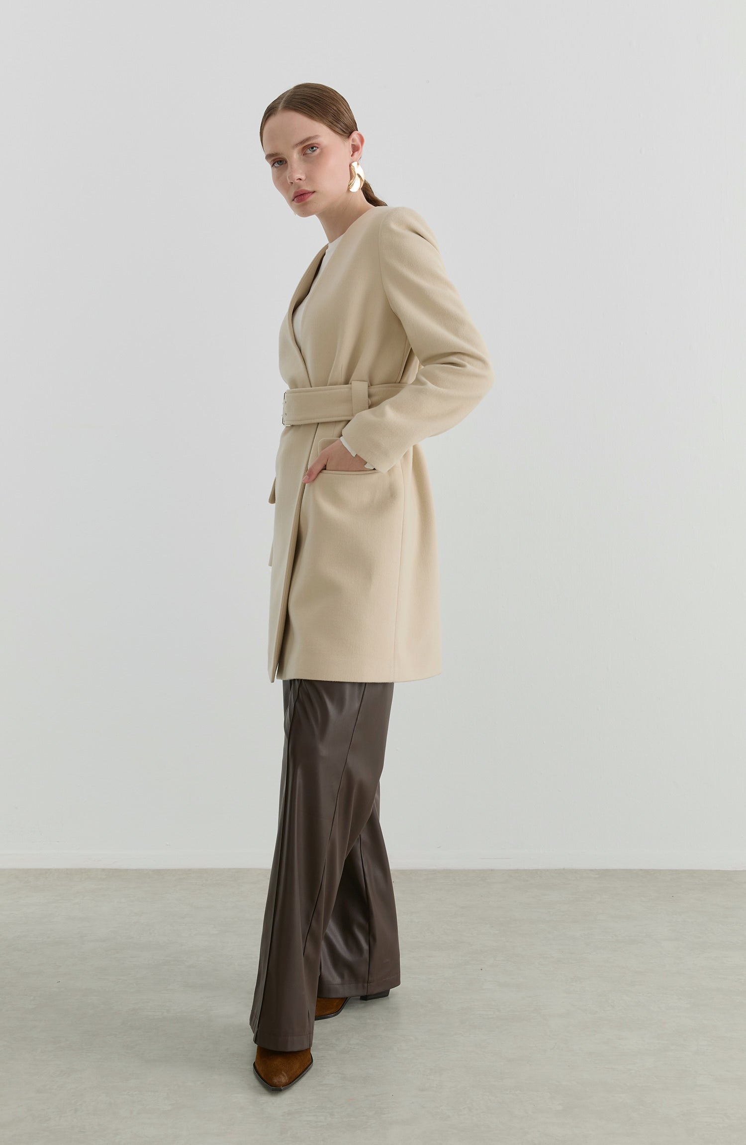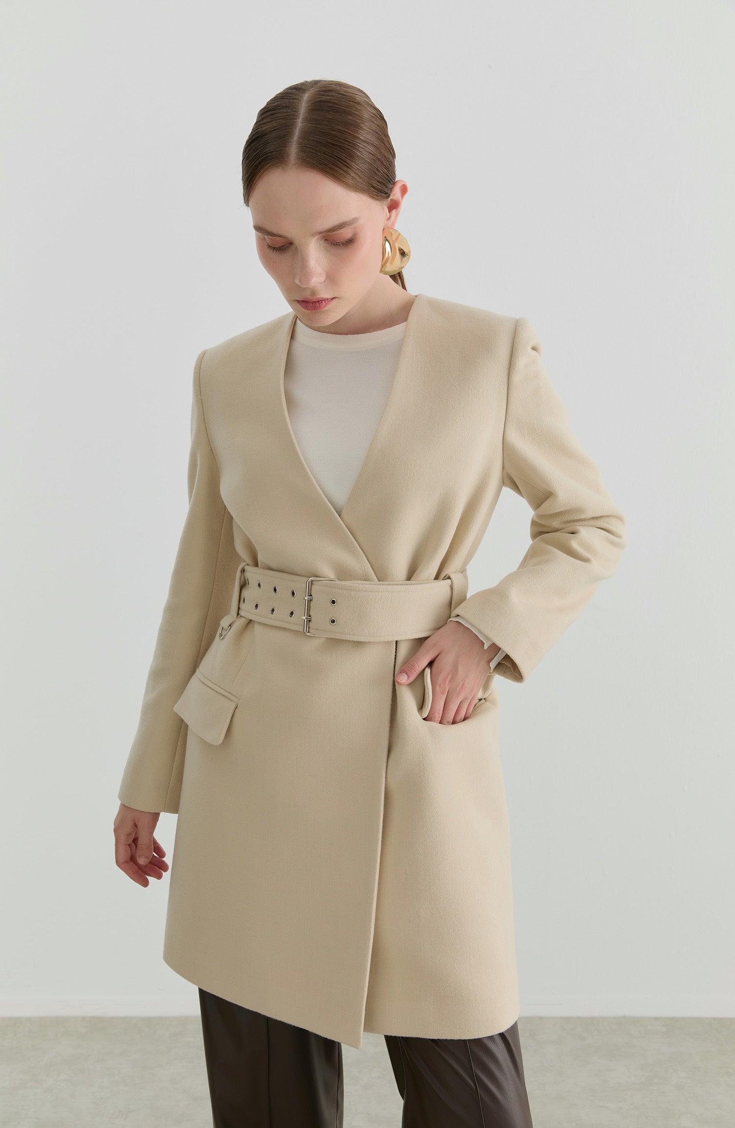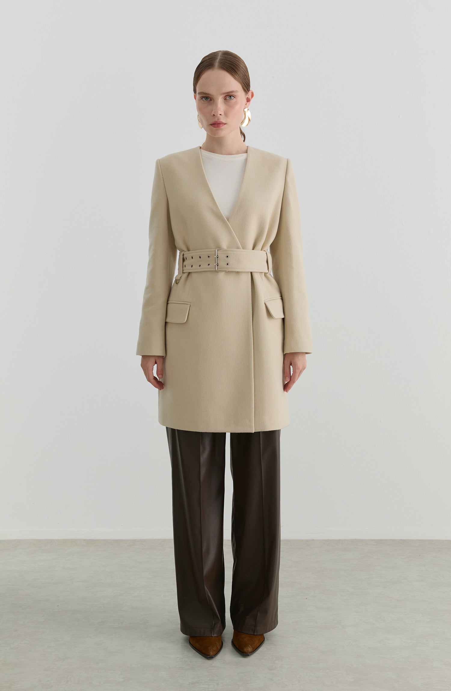 Kemerli Taş Kaşmir Ceket Kaban