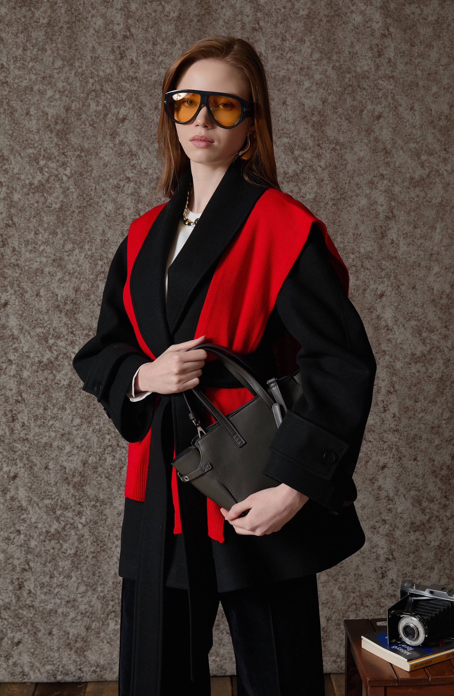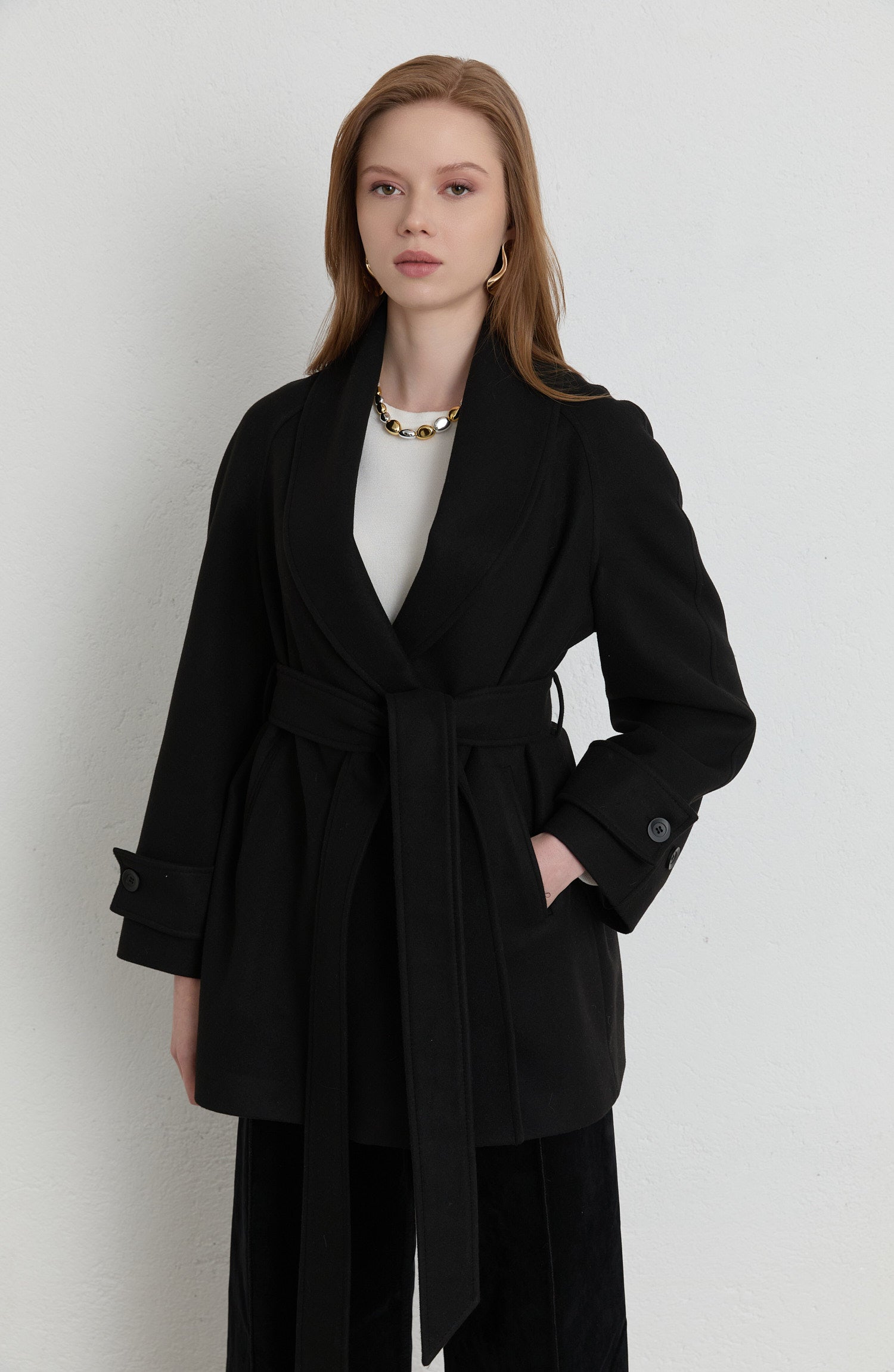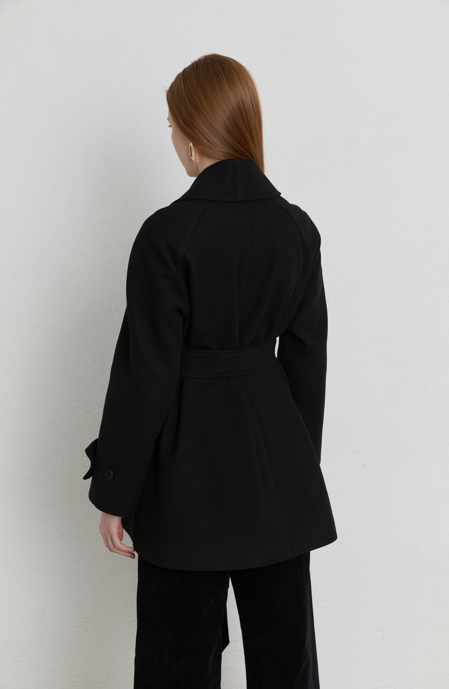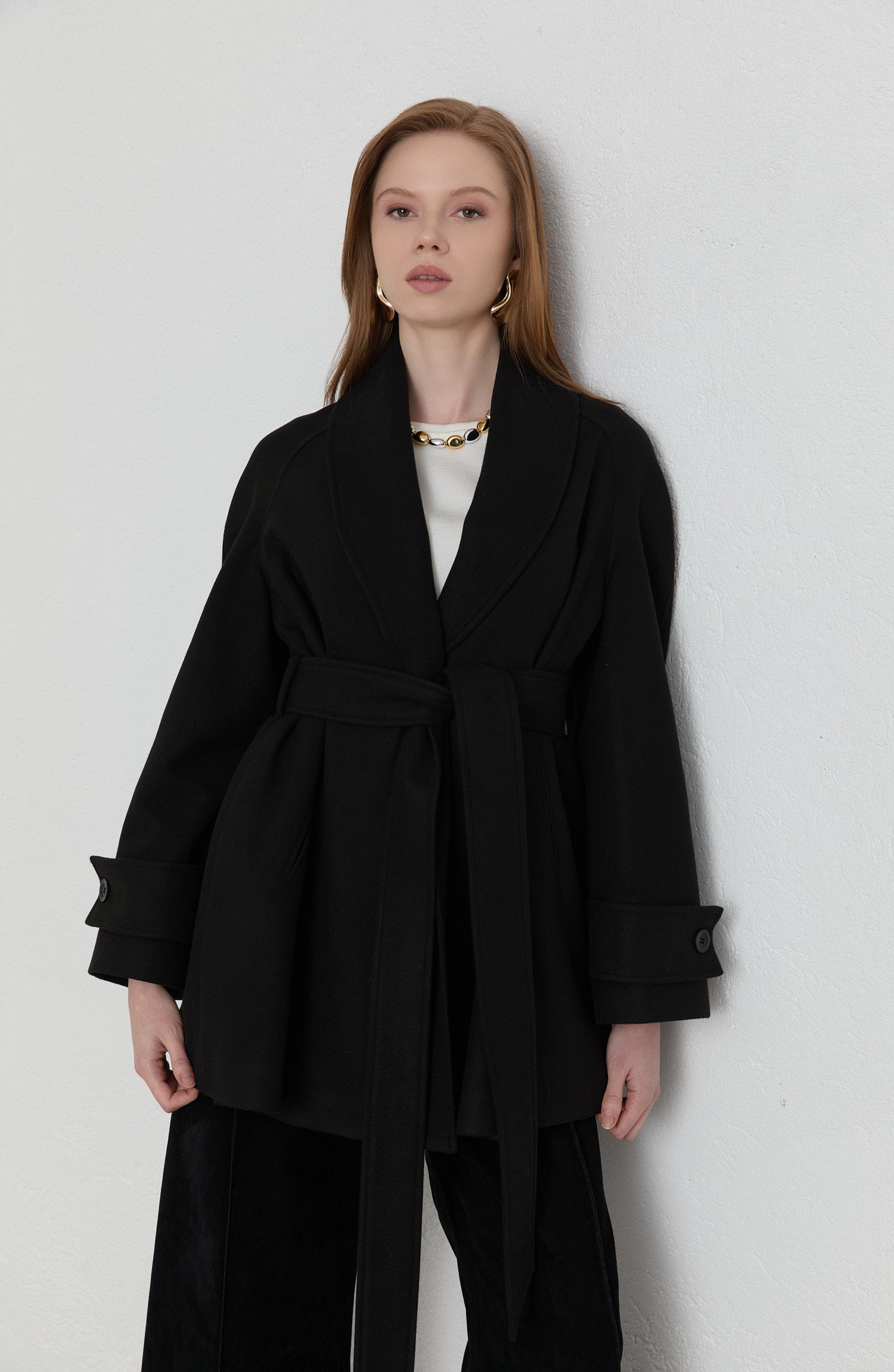 Kruvaze kaşe ceket kaban; elbise, etek ve denim pantolonlarla kolayca kombinlenebilir. Kuşaklı kullanıldığında bel vurgulu, kuşaksız kullanıldığında ise daha rahat ve modern bir siluet elde edilir. Günlük şehir stilinden ofis kombinlerine ve özel günlere kadar geniş bir kullanım alanı sunar.