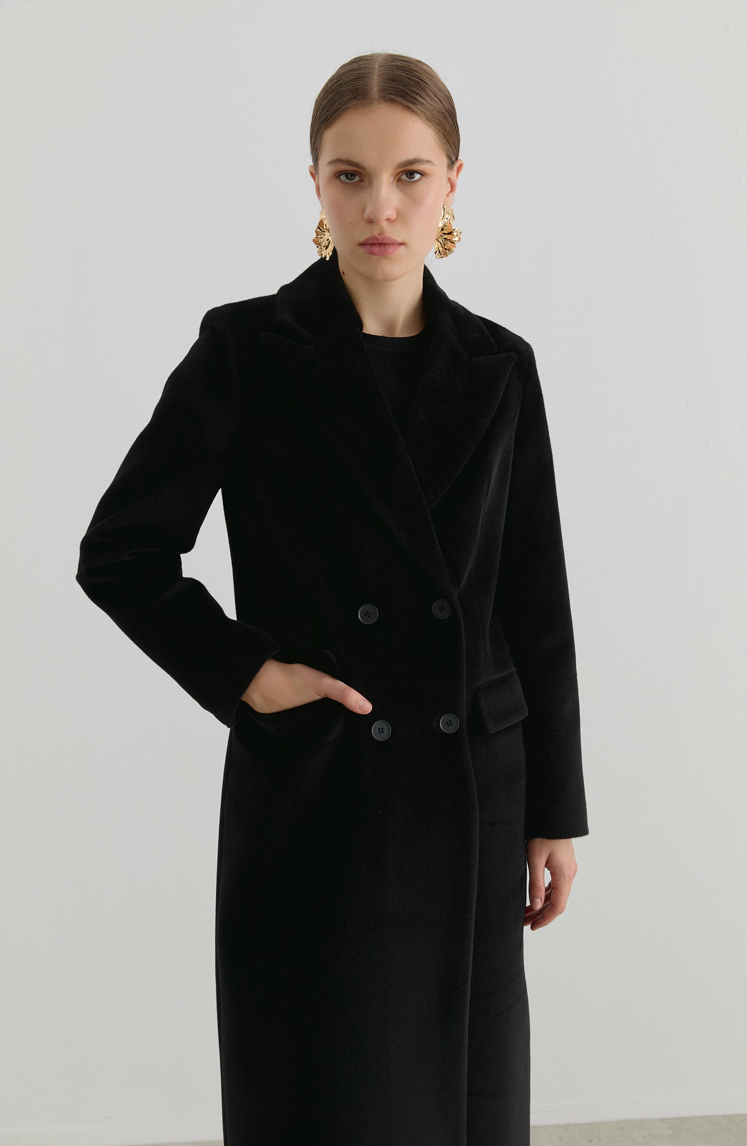 Maksi Tay Tüyü Siyah Ceket Kaban - Fatma Atasoy
