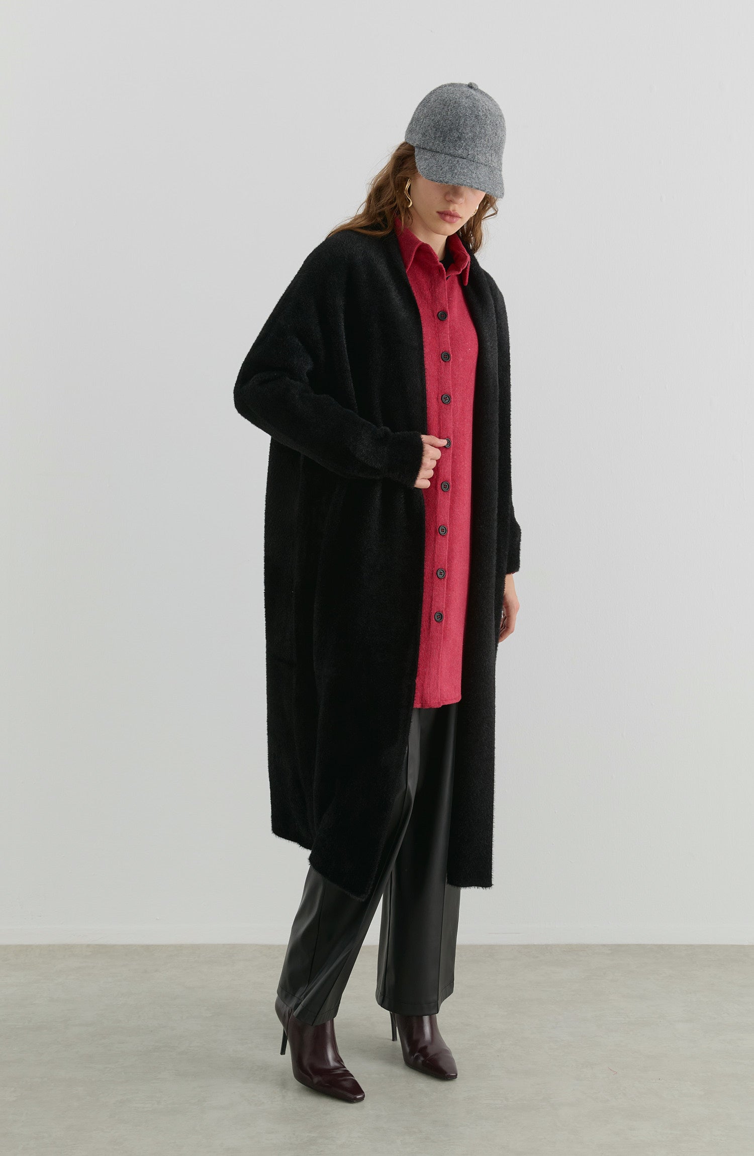 Zarif ve rahat bir kullanım sunan Maksi Yumoş Triko Hırka, kırlangıç yaka formu ve düşük omuz kesimiyle modern bir siluet oluşturur. Yumuşak dokulu triko kumaşı, konforlu bir giyim deneyimi sağlar ve her mevsim kombinlerinizi tamamlar.