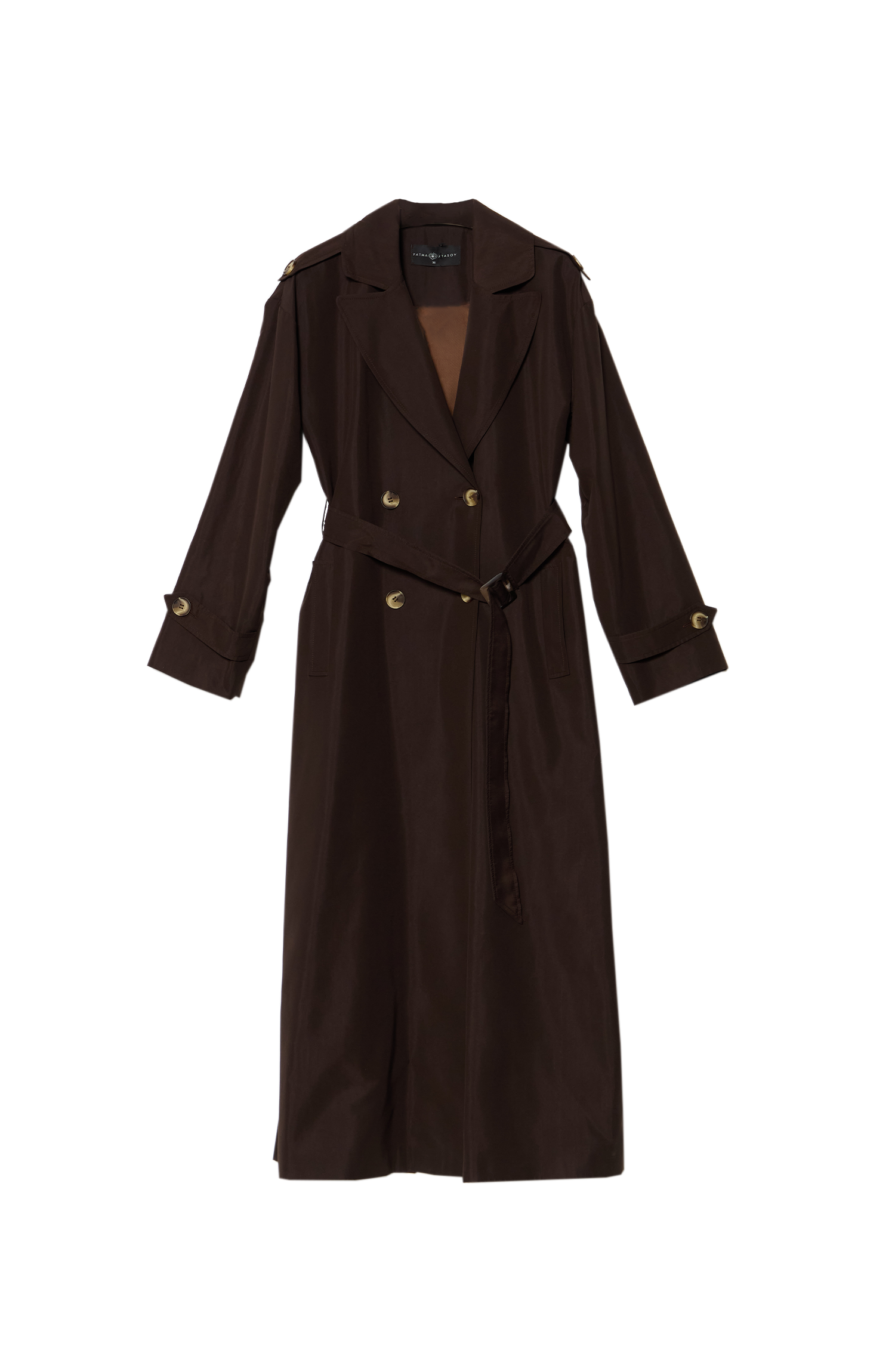 Oversize Maksi Trençkot, modern ve işlevsel detaylarıyla her gardıroba şıklık katar. Düşük omuz kesimi ve erkek yaka formu rahat ve stil sahibi bir görünüm sunarken, 4 düğmeli ve 1 gizli düğmeli kruvaze tasarımıyla zamansız bir duruş sergiler. Omuz ve koldaki apoletler, düğme detaylarıyla trençkotun klasik karakterini güçlendirir. Toka kemeri bel hattını vurgularken, iki adet kullanılabilir flato kapak cep işlevsellik sağlar. Astarlı yapısı ve %100 PES içerikli su itici trenç kumaşı sayesinde mevsim geçişlerinde konforlu ve uzun ömürlü kullanım sunar.