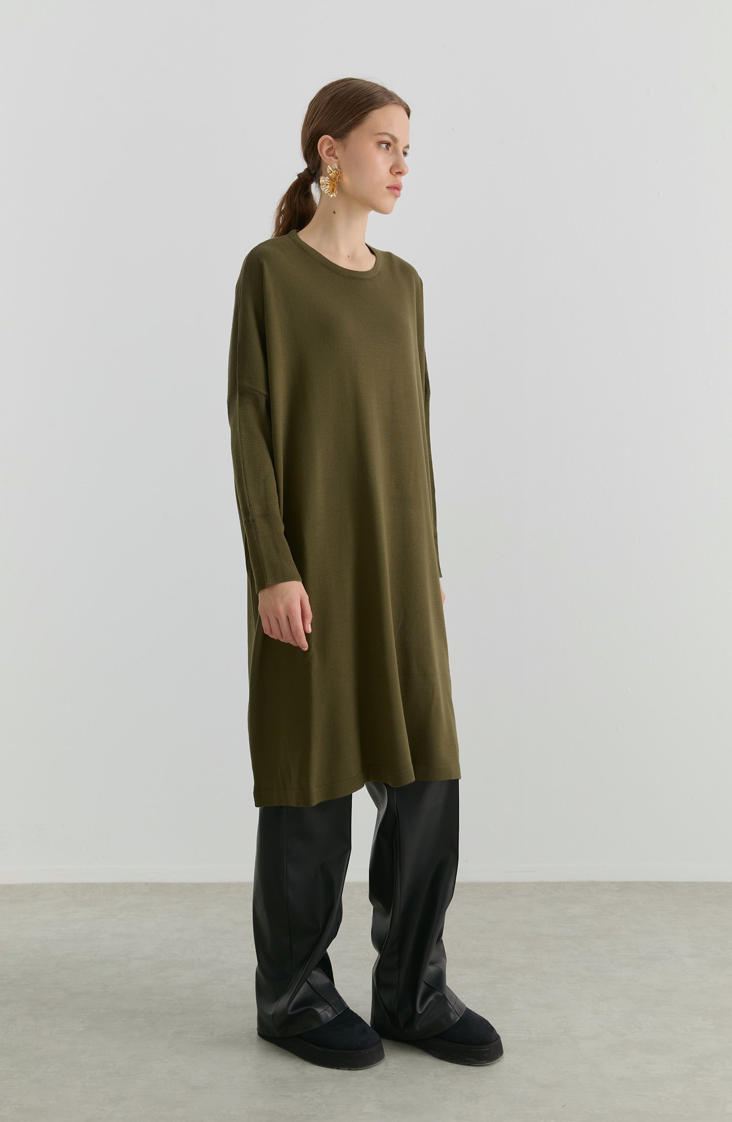 Oversize Maksi Haki Triko Tunik - Fatma Atasoy