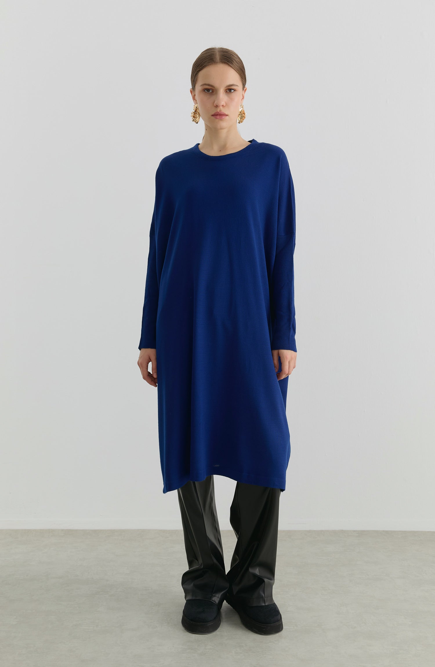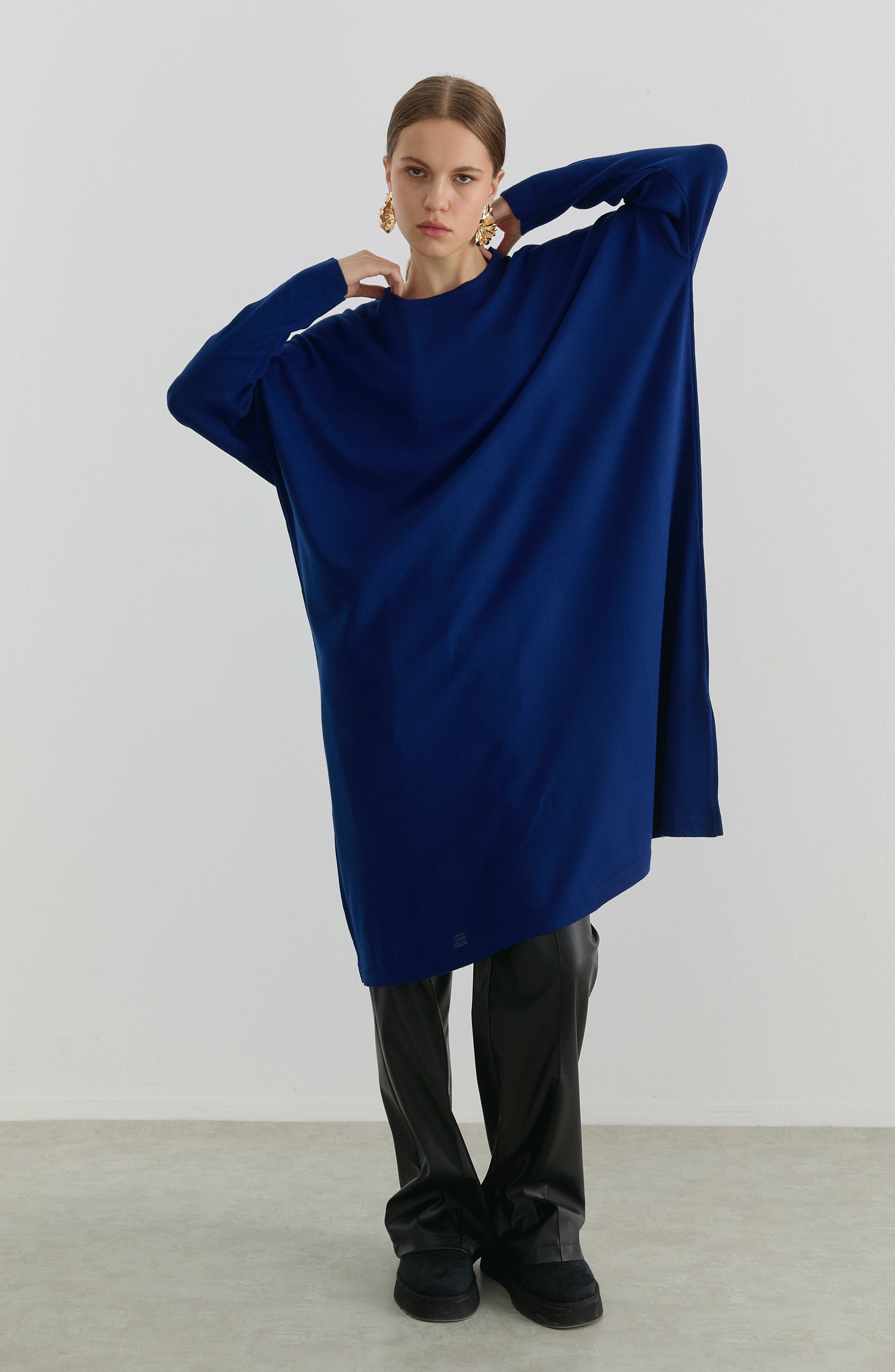 Rahatlık ve zarafeti bir araya getiren Oversize Maksi Triko Tunik, sade tasarımıyla zamansız bir şıklık sunar. Bisiklet yaka formu ve düşük omuz kesimiyle konforlu bir duruş sağlarken, oversize kalıbı vücutta dökümlü bir görünüm oluşturur. Yumuşak dokulu triko kumaşı sayesinde gün boyu rahatlık sunan bu tunik, hem günlük kombinlerde hem de şehir şıklığında kolaylıkla yer bulur. Maksi boyu sayesinde tek başına ya da pantolonlarla katmanlı şekilde kullanılabilir.