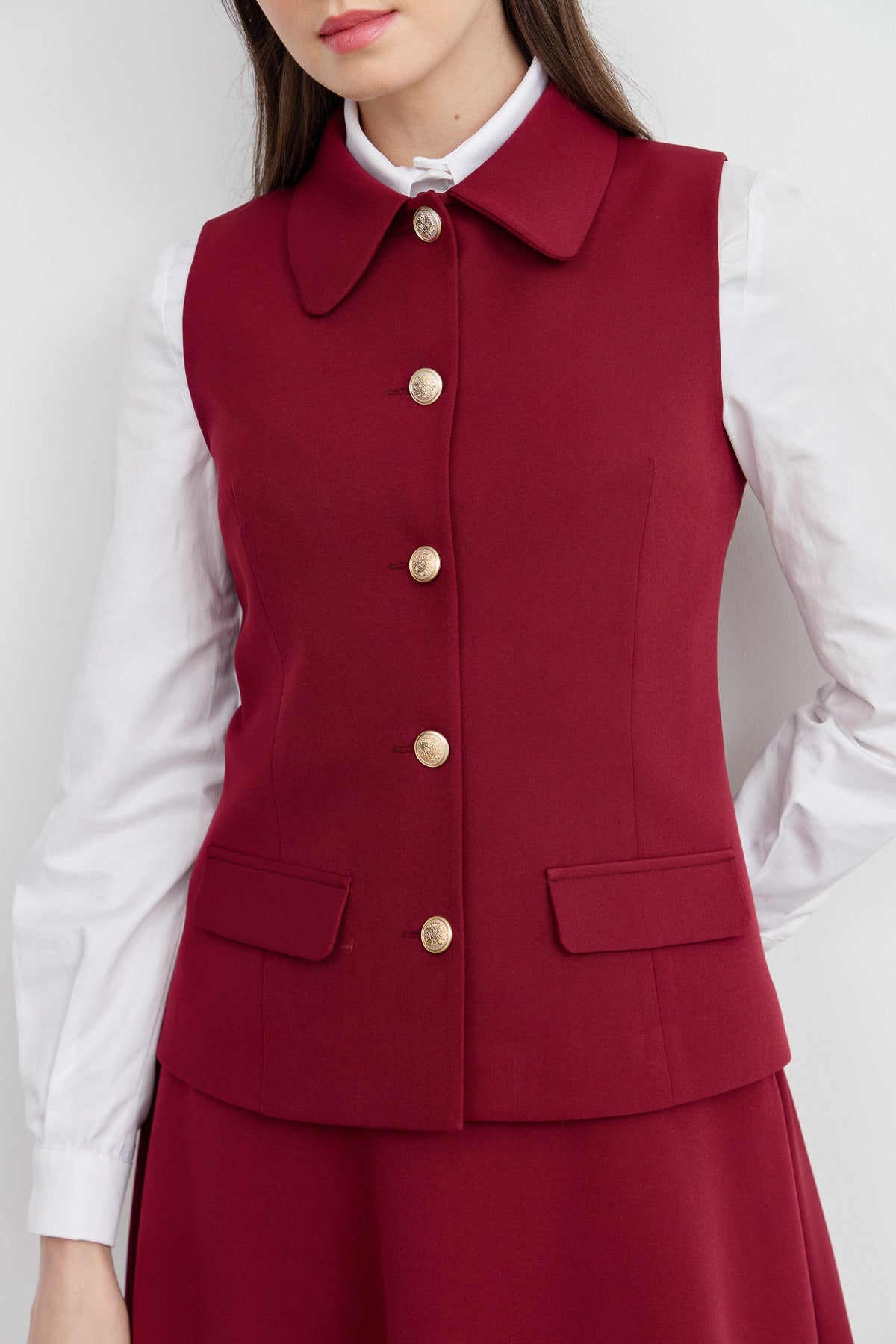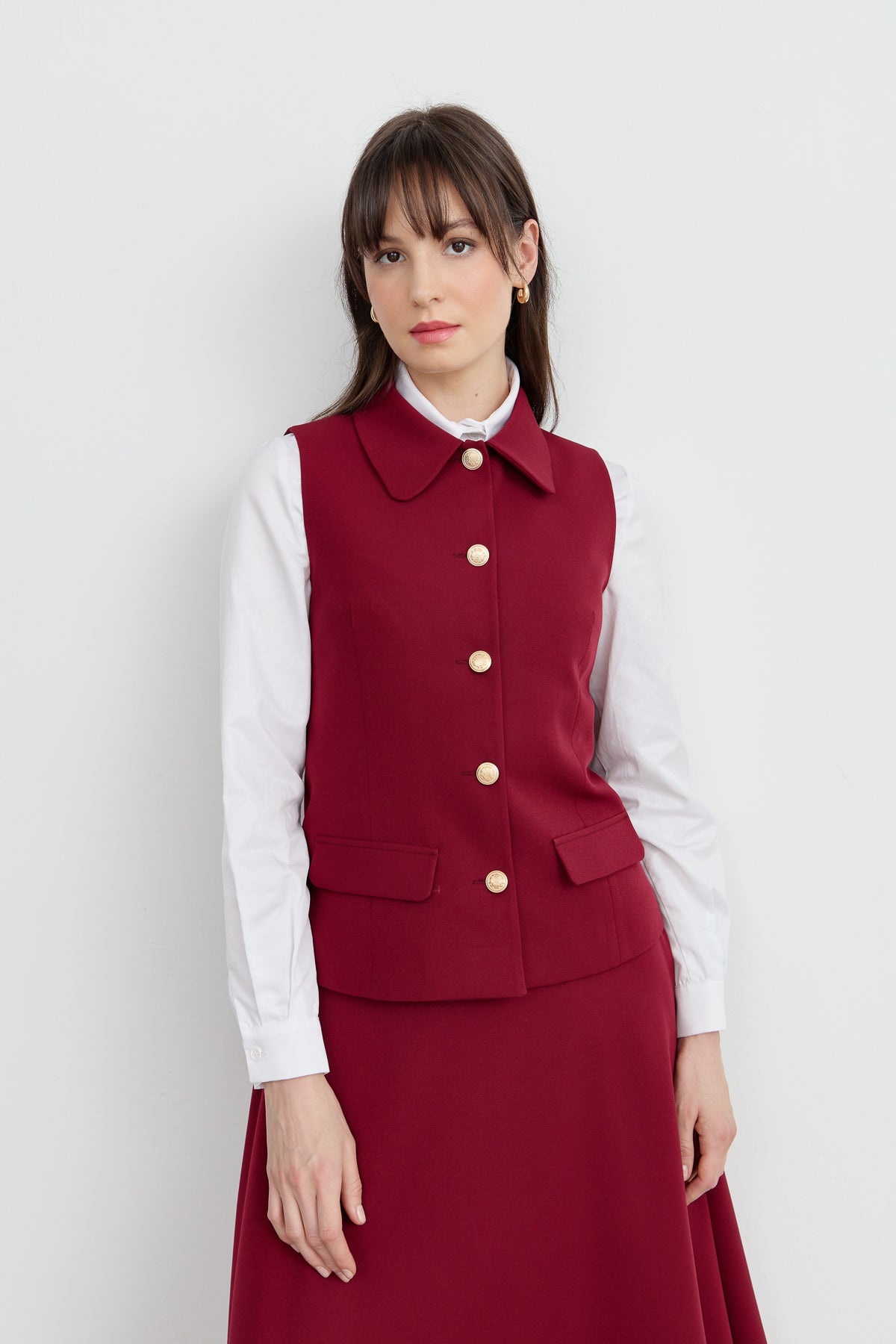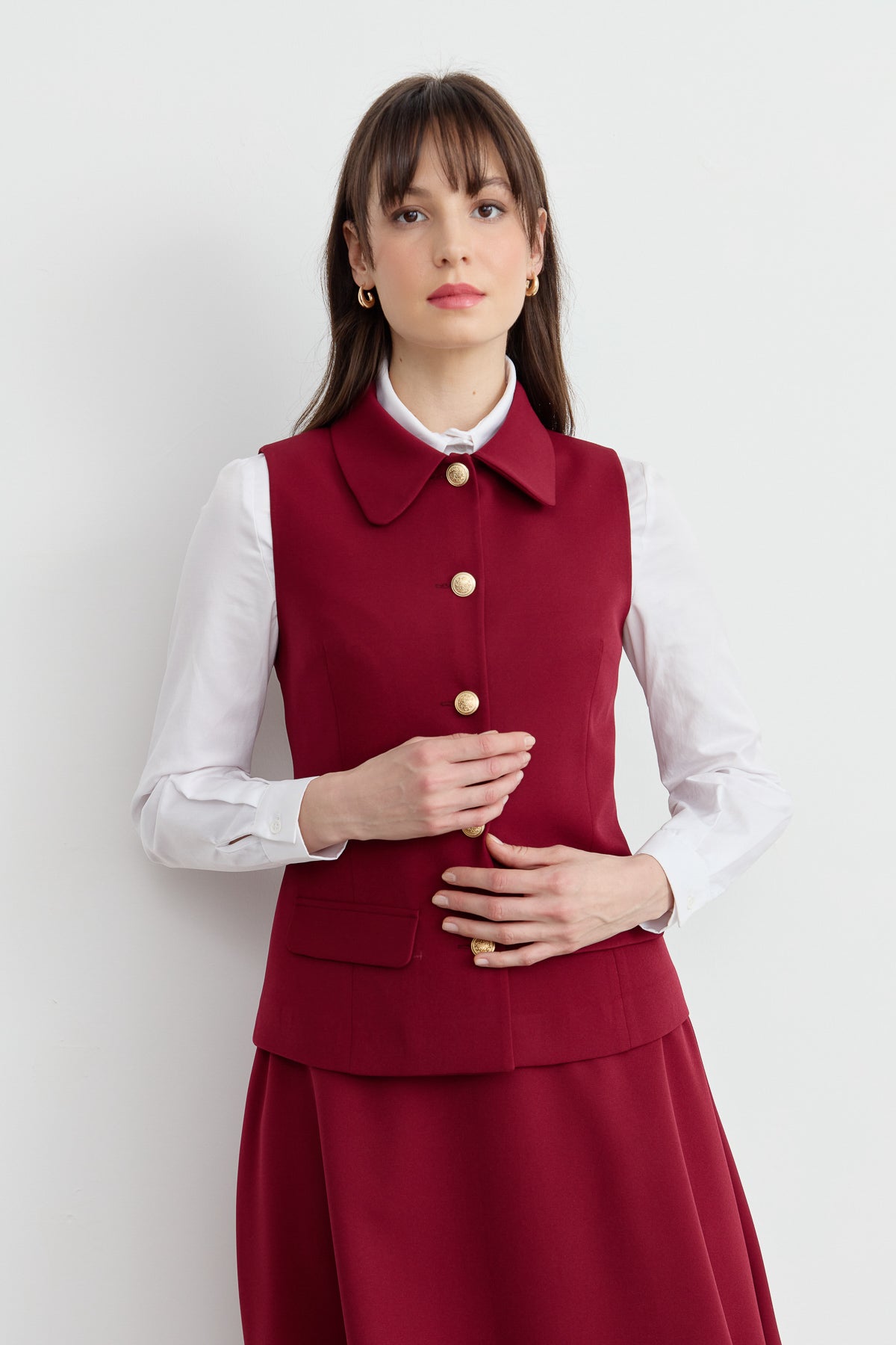 Tek Sıra Düğmeli Bordo Kısa Yelek