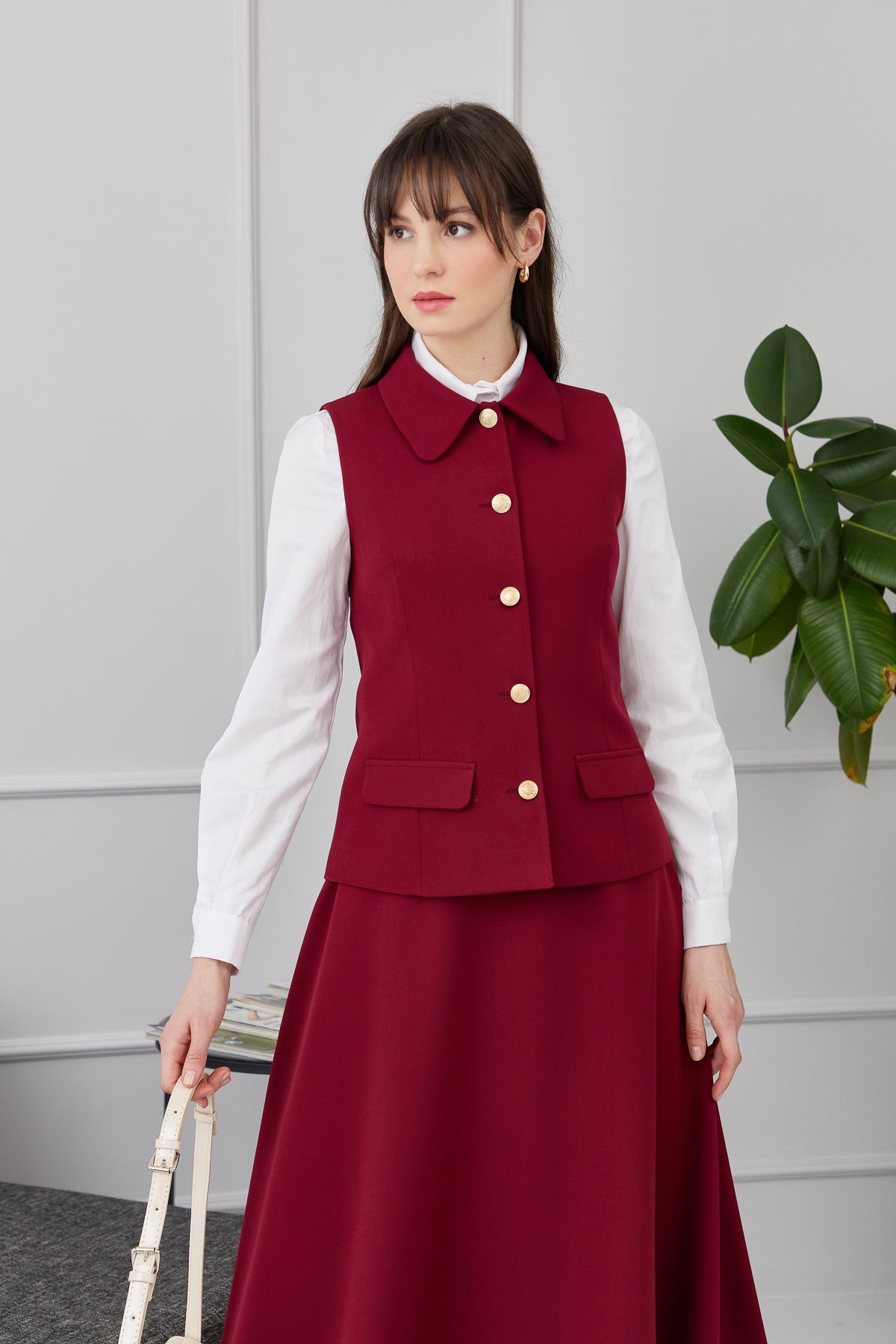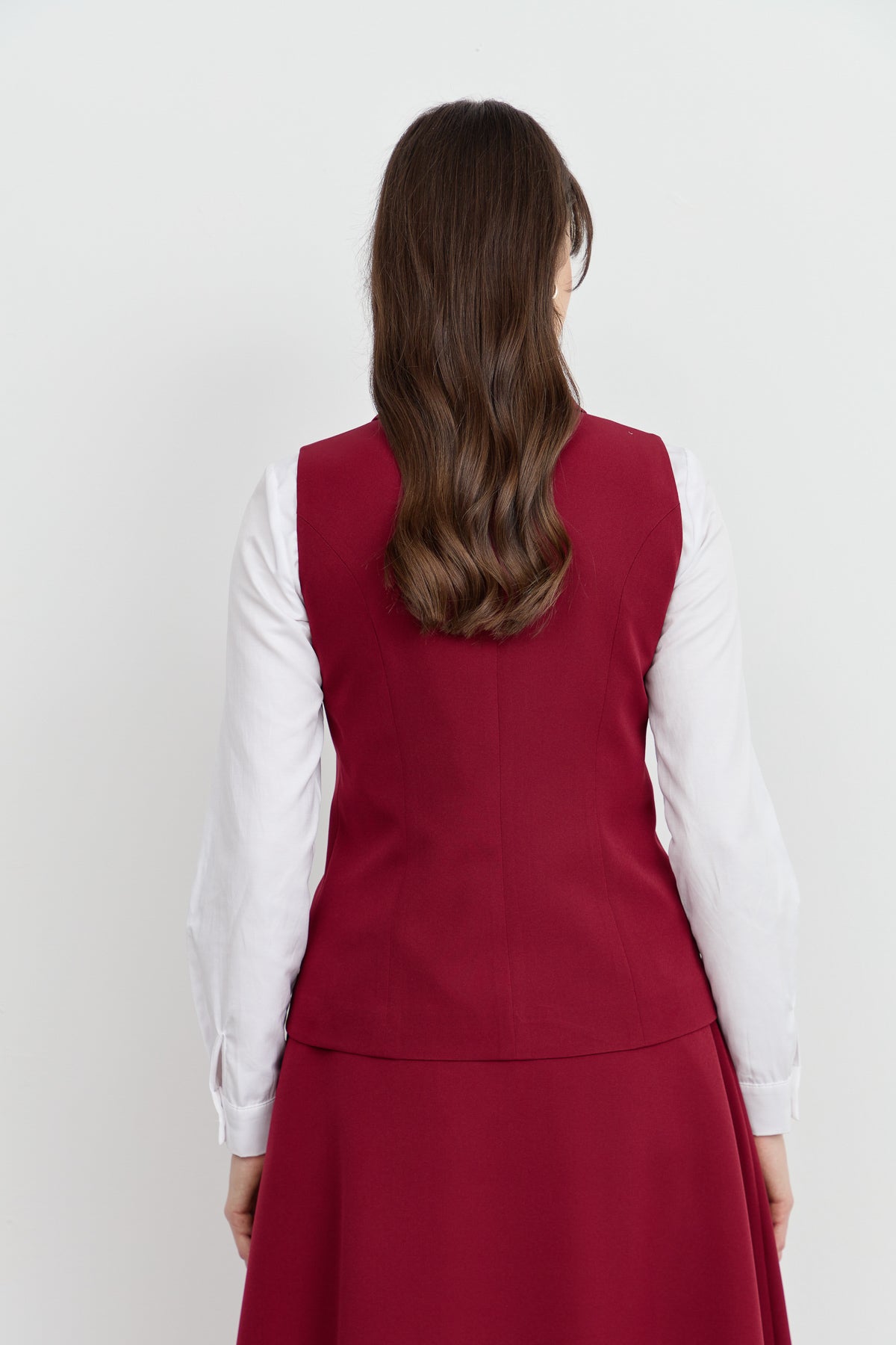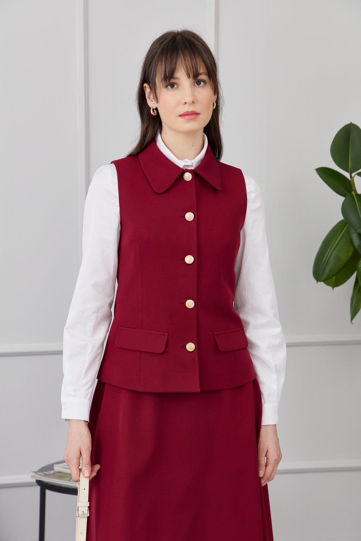 Tek Sıra Düğmeli Bordo Kısa Yelek