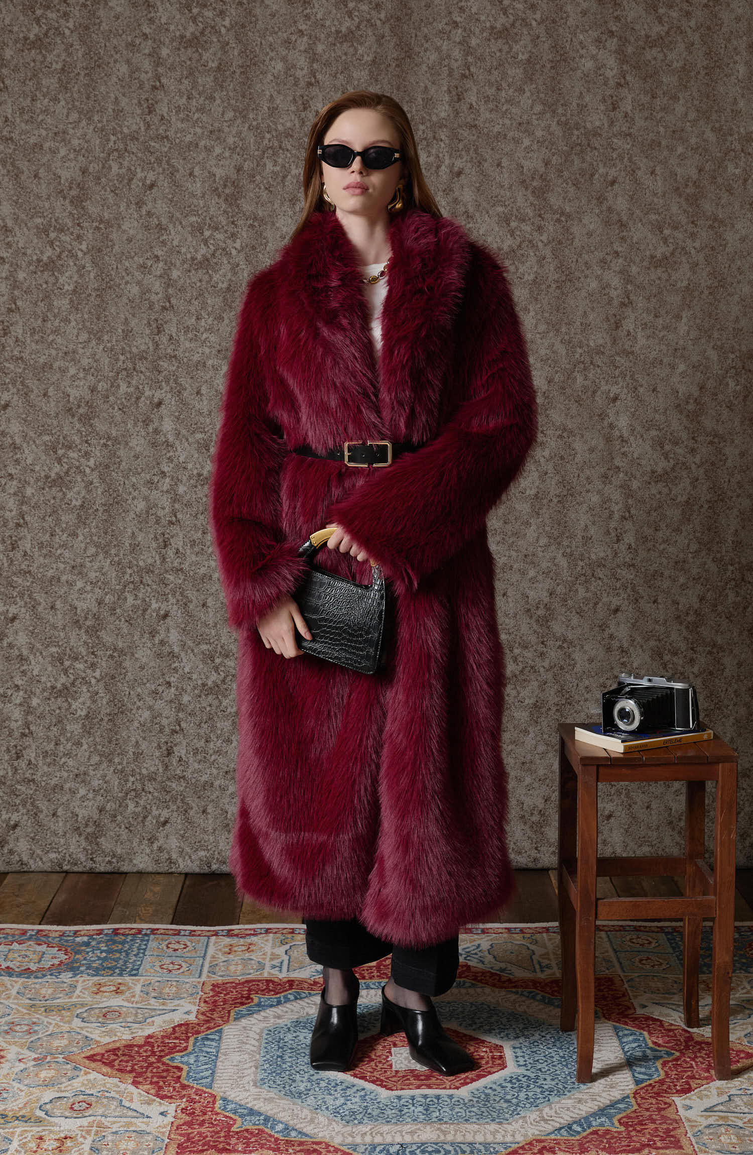 Tüylü Bordo Maksi Kürk Kaban - Fatma Atasoy