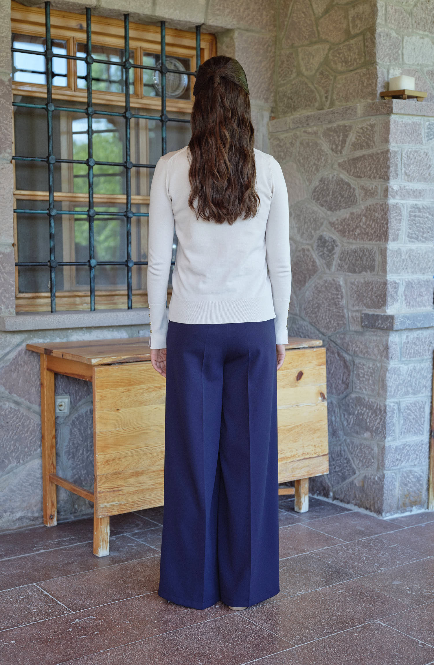 Kullanım Önerileri: Ofis kombinlerinde gömlek ve kendi kumaşından ceketlerle takım olarak klasik bir tarz yakalayabilir, günlük stilinizde basic bluz veya trikolarla rahat ve şık bir görünüm elde edebilirsiniz.